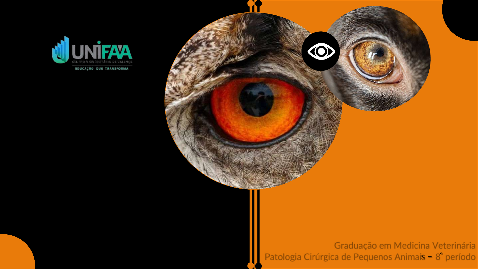 MSc. Maria Eduarda dos S. L. Fernandes Graduação em Medicina Veterinária Patologia Cirúrgica de Pequenos Animais – 8º período AFECÇÕES CLÍNICO- CIRÚRGICAS OFTÁLMICAS Objetivo • Identificar as principais afecções clínico-cirúrgicas oculares • Reconhecer os principais sinais clínicos destas afecções • Diagnosticá-las corretamente • Identificar os tratamentos cirúrgicos recomendados Introdução • Afecções e tratamento dos olhos e seus anexos • Veterinários clínicos x cirurgiões x cirurgiões especialistas x oftalmologistas • Exames diagnósticos de imagem • Exame físico completo Anatomia cirúrgica FONTE: FOSSUM (2014) Anatomia cirúrgica FONTE: KONIG (2016) • Ptose palpebral • Blefaroespasmo • Prolapso palpebral • Secreção ocular • Sangramento ocular • Exoftalmia • Massas • Descontinuidade tecidual Sinais Clínicos Sinais Clínicos • Coloração da esclera • Edema palpebral • Feridas/lesões FONTE: RIBEIRO e SCHRODER (2015) Sinais Clínicos A uveíte é a inflamação da túnica vascular ocular (íris, corpo ciliar e coroide) Pré-cirúrgico • Antibioticoterapia: microbiota normal possui patógenos em potencial • Sistêmico x Tópico • AIEs ou AINEs • Tricotomia? Material específico Trans- cirúrgico • Reflexo cardíaco oculorrespiratório – ↓FC e depressão respiratória: estímulo vagal • Anestesia geral: ↓ a produção de lágrimas • Lubrificante ocular Afecções palpebrais • Distiquíase • Cílio ectópico • Triquíase • Entrópio • Ectrópio • Neoplasias Pálpebras •Cílios • Sinais clínicos: epífora, secreção mucopurulenta, irritação, blefarospasmo e possibilidade de úlcera de córnea Distiquíase x Cílio ectópico x Triquíase Levam a sinais oftálmicos! Distiquíase x Cílio ectópico x Triquíase Apresentações Cílios anormais que emergem da abertura do ducto da glândula tarsal. Distiquíase Crioepilação Eletroepilação Tratamento Distiquíase x Cílio ectópico x Triquíase Apresentações Cílios anormais se quebram na superfície conjuntival Cílio ectópico Tratamento Distiquíase x Cílio ectópico x Triquíase Apresentações Cílios normais da pele em contato com o olho Triquíase Tratamento Triquíase Tratamento Pálpebras •Pele • Sinais clínicos Trauma Entrópio Ectrópio Alterações podem gerar exposição ou irritação corneana! Trauma palpebral CUIDADO: • Nós e extremidades da sutura • Tipo de material Trauma palpebral Entrópio Ectrópio conjuntiva epífora Inversão da margem palpebral Eversão da margem palpebral Entrópio Ectrópio conjuntiva epífora Entrópio • Desenvolvimento oConformação globo - pálpebra • Cicatricial oCicatrização e fibrose da pálpebras • Espástico oBlefarospasmos resultante de afecção ocular crônica e dolorosa • Complicações oBlefarospasmos e epíforas oUlceração da córnea e ruptura do globo ocular Causas Entrópio • ↑ correção cirúrgica • Lubrificação corneana • Escolha da técnica • Causa subjacente • Severidade Entrópio Tratamento Temporário FONTE: Cedida por Rayssa Faleiro, 2021 Pregueamento Aplicada em filhotes Entrópio espástico Fios: não absorvíveis ou absorvíveis Tipo de sutura – Lembert Entrópio Tratamento Definitivo FONTE: Cedida por Rayssa Faleiro, 2021Técnica Hotz- Celsus Fios - Nylon 4-0 a 6-0 Entrópio Tratamento Definitivo FONTE: Cedida por Rayssa Faleiro, 2021 Técnica Hotz- Celsus Entrópio Tratamento Definitivo FONTE: FOSSUM (2014) Técnica V-Y • Sinais clínicos • Congênito • Adquirido: senilidade (tônus do orbicular), cicatricial (dermatopatias) e iatrogênico Ectrópio Causas Ectrópio Tratamento Ressecção em cunha O tamanho da cunha deve ser ligeiramente menor que a extensão da pálpebra encurtada. Correção adicional de 0,5 a 1mm ocorre com a fibrose. Ectrópio Tratamento Ressecção em cunha Fio absorvível na conjuntiva 6-0 Nylon 4-0 ou 5-0 na pele Ectrópio Tratamento Técnica V-Y Ectrópio Tratamento Técnica V-Y Neoplasias • ↑ Incidência em cães • ↓ Incidência gatos Adenomas, papilomas e melanomas Carcinoma de células epidermóides Neoplasias Tratamento Excisão em até 1/3 Neoplasias Tratamento Excisão em “H” Neoplasias Tratamento Excisão em “H” Nylon 4-0 ou 5-0 na pele Vycril 6-0 conjuntiva Membrana nictitante Membrana nictitante • Produção de 2/3 da porção aquosa do filme lacrimal • Sinais clínicos FONTE: HERRERA, 2008 Protrusão da 3ª pálpebra • Etiologia? • Predisposição raças • Tratamento clínico? • Consequência da exérese: CCS -85% casos Predisposição: cães jovens, < de 1 ano Causas Protrusão da 3ª pálpebra Tratamento Técnica Pocket Órbita • Proptose do globo • Enucleação • Exenteração Proptose do globo • Etiologia • Exame oftálmico completo • Pupila dilatada, reflexos limitados • Hifema • Ruptura do globo • Prognóstico Causas Proptose do globo Tratamento Enucleação • Glaucoma intratável • Trauma • Endoftalmite • Neoplasias intra-ocular • Proptose • Defeitos congênitos • Infecções intratáveis Causas Remoção do globo ocular, membrana nictitante e as margens palpebrais Enucleação Tratamento Enucleação Tratamento Enucleação Tratamento Exenteração Causas • Neoplasia intra-orbital e ocular que se estendeu além do globo • > defeito • Esfera de silicone ou metacrilato Remoção do globo, membrana nictante, conteúdo orbital e as margens palpebrais ExenteraçãoTratamento ExenteraçãoTratamento Pós-operatório Pós-operatório Dúvidas? mariae.fernandes@faa.edu.br