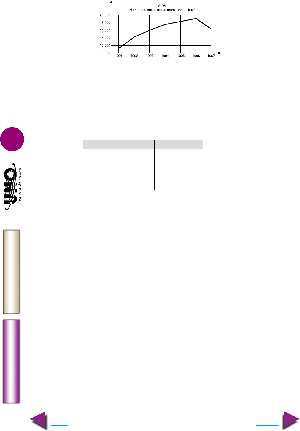 IM PR IM IR Voltar GA BA RI TO Avançar 8 BIOLOGIA - Parasitoses 19. UFMS O quadro abaixo apresenta o número de novos casos de AIDS notificados anual- mente no Brasil, no período considerado: As informações contidas no gráfico permitem concluir corretamente que, no período considerado, a) a maior taxa de variação no número de aidéticos ocorreu em 1996; b) o número aproximado de aidéticos no país, em 1997 era de 112.000; c) o número máximo de aidéticos ocorreu em 1996; d) a partir de 1997, certamente caiu o número de novos casos de aidéticos; e) a maior taxa de variação no número de aidéticos ocorreu em 1992. 20. UEMS Considere o quadro abaixo. Fonte: Almanaque Abril, 1999. Doenças Dengue malária filariose IV Chagas Vetor Aedes II Culex Phlebotomus Triatoma Agente Causador I protozoário II Protozoário V A alternativa que completa, de forma correta, os espaços indicados pelos algarismos romanos de I a V é: a) b) c) d) e) 21. UnB-DF O município de Bauru, no interior de São Paulo, registrou o primeiro caso de leishmaniose em cão. O médico veterinário que atendeu à ocorrência disse que se tratava de leishmaniose visceral, doença grave porque é transmissível para humanos e mata na maioria dos casos. O primeiro cão com a doença foi sacrificado pelo veterinário. A suspeita que está sendo investigada é de um segundo cão, que vivia no mesmo quarteirão. Se a doença for confirmada na sua forma mais grave, Bauru será a segunda região do Estado a ter o registro. O município de Araçatuba já sacrificou este ano 908 cães doentes. A cidade registrou no último mês o primeiro caso no Estado da doença em um ser humano. Bauru tem suspeita de leishmaniose visceral. In: Folha de S. Paulo. 22/5/99 (com adaptações). A partir do texto acima, julgue os itens a seguir, usando (C) certo ou (E) errado. ( ) O adjetivo “visceral” é derivado do substantivo víscera que, anatomicamente, é qualquer órgão alojado na cavidade craniana, torácica ou abdominal. ( ) No ciclo da leishmânia, existem dois hospedeiros, um deles vertebrado e o outro, invertebrado. ( ) A incidência da leishmaniose no interior do Estado de São Paulo indica que essa doença é decorrente da expansão agroindustrial. ( ) Os cães portadores de leishmaniose devem ser sacrificados, pois são vetores dessa doença. I vírus protozoário vírus bactéria protozoário II Plasmodium Phlebotomus Anopheles Culex Aedes III protozoário bactéria nematelminto protozoário bactéria IV febre amarela malária leishmaniose tifo leishmaniose V bactéria vírus protozoário nematelminto asquelminto IM PR IM IR Voltar GA BA RI TO Avançar 9 BIOLOGIA - Parasitoses 22. UFCE Considere o quadro abaixo. Doença 1 Malária Doença de Chagas Parasita Leishmania brasiliensis 2 Trypanosoma cruzi Profilaxia Combate ao inseto vetor Combate ao inseto veto 3 Assinale a alternativa que contém os itens que completam corretamente o quadro acima, substituindo, respectivamente, os números 1, 2 e 3: a) Leishmaniose tegumentar – Plasmodium vivax – combate ao inseto vetor. b) Leishmaniose visceral – Plasmodium malariae – Combate ao caramujo vetor. c) Calazar – Plasmodium vivax – Combate aos roedores. d) Leishmaniose tegumentar – Plasmodium falciparum – Combate aos roedores. e) Calazar – Plasmodium malariae – Combate ao inseto vetor. 23. UFCE A Doença de Chagas continua causando muitas mortes no Brasil e em países pobres do mundo. O texto a seguir sobre esta doença é hipotético. Leia-o com atenção. “Um paciente residente na periferia de Fortaleza procurou o posto médico, queixando-se, entre outras coisas, de febre; anemia, cansaço e hipertrofia ganglionar. Após os exames clínico e labora- torial, diagnosticou-se, corretamente, que ele estava com a Doença de Chagas. Ao tomar conhe- cimento do caso, um professor resolveu discutir o caso com seus alunos, solicitando que eles opinassem sobre que medidas deveriam ser tomadas para controlar a propagação da doença. Os alunos apresentaram cinco sugestões.” Dentre as sugestões apresentadas pelos alunos, a única inteiramente correta é: a) isolamento do paciente, para evitar o contágio com outras pessoas, pois a doença se propaga também pela inalação do ar contaminado; b) campanha, de vacinação em massa, em Fortaleza e por todo o estado do Ceará, para evitar uma epidemia na cidade; c) aplicação de inseticidas em toda a cidade, para eliminação do Aedis aegypti inseto transmissor do Trypanosoma cruzi agente causador da doença; d) vacinação de cães e eliminação de cães de rua, pois eles são reservatórios naturais de protozoários do grupo Trypanosoma; e) proteção das portas e janelas com telas, a fim de evitar a entrada do barbeiro, inseto transmissor da doença, nas residências. 24. UFF-RJ Um certo parasita que causa uma doença humana, aloja-se no estômago e de- pois na glândula salivar do hospedeiro transmissor. A seguir, no ciclo de transmissão da doença para o homem, o parasita invade a corrente sangüínea, depois o fígado, onde se multiplica, atingindo novamente a corrente sangüínea. O parasita, o hospedeiro transmissor e a doença descritos são, respectivamente: a) Trypanosoma gambiensis / Glossina palpalis / Doença do Sono b) Trypanosoma cruzi / Triatoma infestans / Doença de Chagas c) Leishmania brasiliensis / Phlebotomus intermedius / Leishmaniose d) Plasmodium vivax / Anopheles / Malária e) Wuchereria bancrofti / Culex fatigans / Filariose 25. U.E. Ponta Grossa-PR Sobre o botulismo, assinale o que for correto. 01. A intoxicação é devida à toxina presente no alimento consumido. 02. Seu agente é o bacilo Clostridium botulinum. 04. Causa danos ao sistema nervoso e pode levar à morte. 08. Seu agente vive no solo e pode contaminar alimentos manuseados e industrializados em condições precárias de higiene. 16. É provocado pela ingestão de uma bactéria que encontra no organismo humano con- di