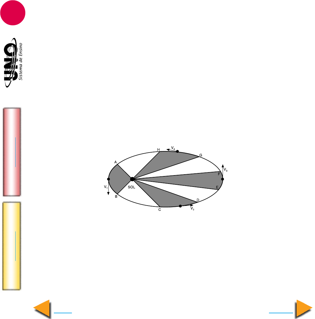 FÍSICA - Gravitação IM PR IM IR Voltar GA BA RI TO Avançar 2 4. Univali-SC Os tripulantes da Estação Espacial Mir saem dela para fazerem reparos nos captadores solares de geração de energia elétrica e mantêm-se flutuando em órbita em torno da Terra devido: a) à atração gravitacional da Terra; b) aos equipamentos especiais de que dispõem; c) ao fato de suas massas serem nulas no espaço; d) ao fato de se encontrarem no vácuo; e) ao fato de estarem a grande altitude. 5. Fuvest-SP A Estação Espacial Internacional, que está sendo construída num esforço conjunto de diversos países, deverá orbitar a uma distância do centro da Terra igual a 1,05 do raio médio da Terra. A razão R = F e /F, entre a força F e com que a Terra atrai um corpo nessa Estação e a força F com que a Terra atrai o mesmo corpo na superfície da Terra, é aproximadamente de: a) 0,02 b) 0,05 c) 0,10 d) 0,50 e) 0,90 6. Unicap-PE Assinale verdadeiro (V) ou falso (F). ( ) A lei da gravitação universal diz que a matéria atrai matéria na razão direta do produto das massas e inversa da distância entre elas. ( ) O peso de um corpo de 12 kg que se encontra a uma altura igual ao raio da Terra é de 60 N. ( ) A 1ª Lei de Kepler, conhecida como a lei das órbitas, afirma que os planetas descre- vem uma órbita circular em torno do Sol. ( ) De acordo com a 3ª Lei de Kepler, quanto mais longe do Sol estiver o planeta maior será o seu período de revolução. ( ) Se um corpo rígido está sob a ação de duas forças de mesmo módulo, mesma dire- ção e sentidos contrários, concluímos que a resultante das forças é zero, logo, ele está em equilíbrio. 7. UFMT Considere que o esboço da elipse abaixo representa a trajetória de um planeta em torno do Sol, que se encontra em um dos focos da elipse. Em cada trecho, o planeta é representado no ponto médio da trajetória naquele trecho. As áreas sombreadas são todas iguais e os vetores v 1 , v 2 , v 3 e v 4 representam as velocidades do planeta nos pontos indicados. Considerando as leis de Kepler, é correto afirmar que: 01. os tempos necessários para percorrer cada um dos trechos sombreados são iguais; 02. o módulo da velocidade v 1 é menor do que o módulo da velocidade v 2 ; 04. no trecho GH a aceleração tangencial do planeta tem o mesmo sentido de sua velo- cidade; 08. no trecho CD a aceleração tangencial do planeta tem sentido contrário ao de sua velocidade; 16. os módulos das velocidades v 1 , v 2 e v 3 seguem a relação v 1 > v 2 > v 3 . Dê, como resposta, a soma das afirmativas corretas. FÍSICA - Gravitação IM PR IM IR Voltar GA BA RI TO Avançar 3 8. UERJ Segundo a lei da gravitação universal de Newton, a força gravitacional entre dois corpos é diretamente proporcional ao produto de suas massas e inversamente proporcio- nal ao quadrado da distância entre seus centros de gravidade. Mesmo que não seja obrigatoriamente conhecido pelos artistas, é possível identificar o conceito básico dessa lei na seguinte citação: a) “Trate a natureza em termos do cilindro, da esfera e do cone, todos em perspectiva.” (Paul Cézane) b) “Hoje, a beleza (...) é o único meio que nos manifesta puramente a força universal que todas as coisas contêm.” (Piet Mondrian) c) “Na natureza jamais vemos coisa alguma isolada, mas tudo sempre em conexão com algo que lhe está diante, ao lado, abaixo ou acima.” (Goethe) d) “Ocorre na natureza alguma coisa semelhante ao que acontece na música de Wagner, que embora tocada por uma grande orquestra, é intimista.” (Van Gogh) 9. PUC-RS As telecomunicações atuais dependem progressivamente do uso de satélites geo-estacionários. A respeito desses satélites, é correto dizer que: a) seus planos orbitais podem ser quaisquer; b) todos se encontram à mesma altura em relação ao nível do mar; c) a altura em relação ao nível do mar depende da massa do satélite; d) os que servem os países do hemisfério norte estão verticalmente acima do Pólo Norte; e) se mantêm no espaço devido à energia solar. 10. UFSE Considere um satélite de massa m que orbita em torno de um planeta de massa M, a uma distância D do centro do planeta e com período de revolução T. Sendo F a intensidade da força de atração entre o planeta e o satélite, a lei da Gravitação Universal pode ser reconhecida na expressão: a) T D 3 2 = constante b) T D 2 = Mm c) Mm F = constante d) Mm FD2 = constante e) MmF D2 = constante 11. U. Alfenas-MG A força de atração gravitacional entre dois corpos é diretamente pro- porcional ao produto das massas dos corpos e inversamente proporcional ao quadrado da distância entre eles. A constante de proporcionalidade, denominada constante universal da gravitação (G), foi descoberta por Henry Cavendish, cem anos após Isaac Newton ter comprovado a existência da força de atração gravitacional. Cavendish mediu tal força em laboratório e encontrou para G, o valor 6,67 . 10–11 N.m2/kg2. Uma garota e um rapaz, de massas respectivamente iguais a 60 kg e 80 kg encontram-se a um metro de distância um do outro. A força de atração gravitacional entre eles tem valor, em N, aproximadamente igual a: a) 3,20 . 10–7 d) 5,34 . 10–9 b) 3,20 . 10–11 e) 5,34 . 10–13 c) 3,20 . 10–15 12. UESC-BA A distância média da Terra à Lua é cerca de 4.108 m, e o valor da força de interação gravitacional entre elas é F 1 . A distância média da Terra ao Sol é cerca de 1011m, e o valor da força de interação gravitacional entre eles é F 2 . Nessas condições, se a massa do Sol é 107 vezes maior que a da Lua, a razão F F 2 1 é igual a: 01) 1600 04) 1,6 02) 160 05) 0,16 03) 16
