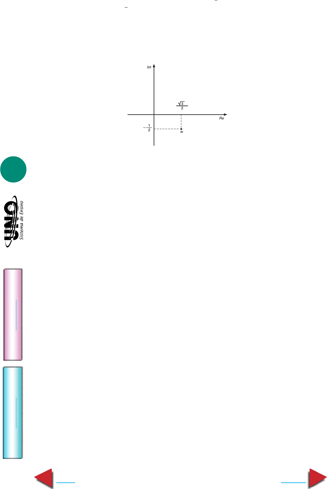 MATEMÁTICA - Números complexos IM PR IM IR Voltar GA BA RI TO Avançar 5 21. UFMS Considere a equação no campo complexo z2 = – i z , onde i é a constante imagi- nária, isto é, i2 = –1 e z é o conjugado de z. É correto afirmar que: 01. o número complexo – i é uma solução da equação dada; 02. se z ≠ 0 e z é uma solução da equação dada, então |z| = 1, onde |z| denota o módulo de z; 04. o número complexo w, representado no plano complexo abaixo, é solução da equa- ção dada; 08. o número 0 não é uma solução da equação dada; 16. a equação dada possui exatamente 4 soluções. Dê, como resposta, a soma das alternativas corretas. 22. UFSE Seja o número complexo z = 1 + i. O argumento principal de z2 é: a) 30° d) 90° b) 45° e) 120° c) 60° 23. U.F. Uberlândia-MG Seja o número complexo z = cos15º + i sen15º, onde i2 = –1. Se w é um outro número complexo tal que |w| = |z| = |z – w|, então pode-se afirmar que um valor possível para w nessas condições é: a) w = cos315º + i sen315º b) w = cos60º + i sen60º c) w = cos165º + i sen165º d) w = cos225º + i sen225º 24. PUC-PR O complexo 1 – i é raiz da equação x4 – 2x3 – 2x2 + 8x – 8 = 0. As outras raízes são: a) –2, 2 e i b) 2, 3 e 1 + i c) –2, 2 e 1 + i d) 0, 2 e 1 + i e) –i, i e 1 + i 25. FEI-SP Uma das raízes da equação x2 – 2x + c = 0, onde c é um número real, é o número complexo z 0 = 1 + 2i. É válido afirmar-se que: a) c = 0 b) c = 1 c) c = 3 d) c = 5 e) c = 7 MATEMÁTICA - Números complexos IM PR IM IR Voltar GA BA RI TO Avançar 6 26. UFMT Na figura o ponto P é o afixo de um número complexo z, no plano de Argand- Gauss. A partir das informações dadas, julgue os itens. ( ) A forma trigonométrica de z é 2 cos 5 3 5 3 π π+ i sen . ( ) Se Q é o afixo do número complexo w = z.i, sendo i a unidade imaginária, então o ângulo PÔQ é reto. ( ) Sendo z o conjugado de z, 4z z = ( z )2. 27. UESC-BA O número complexo z = 6i25 + (2i)6 + (i)–3 é igual a: a) 65 – 6i d) –64 + 7i b) 5 – 64i e) –65 + 6i c) –64 + 5i 28. U.F. Juiz de Fora-MG O número complexo z de módulo 3 está representado abaixo no plano complexo. Podemos afirmar que z é igual a: a) 3 3 2 − i b) − −3 3 2 i c) − −3 3 2 i d) 3 3 2 − i 29. PUC-PR Se as imagens geométricas dos números complexos 0, z e z no plano de Ar- gand-Gauss são os vértices de um triângulo eqüilátero, então a medida do segmento que une as imagens de z e z é: a) z 2 d) 2 Re (z) b) z 2 e) Im (z) c) z