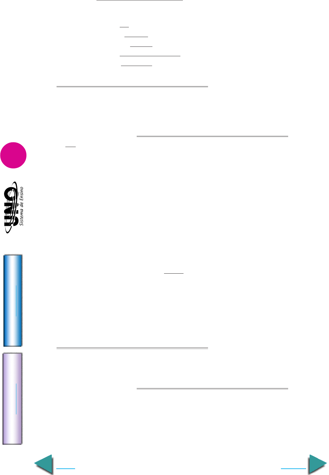 Língua Portuguesa - Períodos simples e composto IM PR IM IR Voltar GA BA RI TO Avançar 3 7. Unifor-CE “Dinheiro é a coisa mais importante do mundo.” Os termos grifados, tanto na frase acima quanto nas alternativas, exercem a mesma função sintática, EXCETO em: a) A vida deveria ser boa para toda gente. b) Esse apetite social é raríssimo. c) Um amigo meu estava ofendido. d) Homens ricos têm enormes apetites sociais. e) Toda mulher não é um romance. 8. Cefet-RJ “É com imenso prazer que entrego em suas mãos os Parâmetros1 Curriculares Nacionais de quinta a oitava séries. Um trabalho que foi cuidadosamente elaborado e discutido com educadores de todo o país para atualizar e dar um novo impulso2 à educação fundamental. Cumprimos, com este ato, a obrigação3 de oferecer aos professores4 brasileiros as informações5 necessárias para a organização do processo de ensino-aprendizagem e uma ajuda concreta para sua prática cotidiana.” MEC. Não é núcleo de objeto direto: a) “Parâmetros” (1). b) “impulso” (2). c) “obrigação” (3). d) “professores” (4). e) “informações” (5). 9. U. F. Uberlândia-MG Assinale a alternativa em que a palavra em destaque está determi- nando o sujeito. a) “Sem olhar para o Félix, sentia-o subjugado.” (M. de Assis) b) “... e foi esse livro que me meteu em brios. Achei-o seguramente medíocre...” (M. de Assis) c) “Pretas e moleques espiavam-me, curiosos, e creio que sem espanto...” (M. de Assis) d) “Aqui teve ele um gesto quase imperceptível de orgulho molestado; achou naturalmen- te esquisita a curiosidade de um estranho.” (M. de Assis) 10. U. Alfenas-MG Em “... só respira fora da água.”, a expressão sublinhada é: a) adjunto adnominal. b) complemento nominal. c) adjunto adverbial. d) objeto indireto. e) aposto. 11. U. Santa Úrsula-RJ Observe o seguinte trecho do poema “Homem comum”, de Ferreira Gullar: “Ando a pé, de ônibus, de táxi, de avião e a vida sopra dentro de mim pânica feito a chama de um maçarico.” No trecho lido, o termo “pânica” tem o seguinte valor sintático e semântico: a) predicativo do sujeito — sentido de assustada. b) predicativo do sujeito — sentido de estática. c) adjunto adnominal — sentido de amedrontada. d) adjunto adverbial de modo — sentido de apavorada. e) predicativo do sujeito — sentido de esquecida. Língua Portuguesa - Períodos simples e composto IM PR IM IR Voltar GA BA RI TO Avançar 4 12. U. F. Juiz de Fora-MG Indique o item em que ocorre o mesmo tipo sintático de comple- mentação nominal que em “estudioso das relações de trabalho”: a) apaixonada pela música popular brasileira. b) sinais de mudanças. c) teorias de administração. d) fórmulas de organização. 13. U. E. Ponta Grossa-PR Considerando os aspectos morfossintáticos na seqüência “Para comer coquinhos, seu prato preferido, usam uma ferramenta: ajeitam o fruto cuidadosa- mente numa pedra e jogam uma outra em cima, com força. Se não houver frutas nem insetos à mão, eles mudam a dieta e podem atacar plantações ou mesmo assaltar casas”, é correto afirmar que: 01) “cuidadosamente” é adjunto modificador do nome “fruto”. 02) “se” é um pronome reflexivo. 04) “seu prato preferido” é um aposto explicativo para “coquinhos”. 08) a locução “com força” é modificadora de “jogam”. 16) “frutas” e “insetos” são complementos de “houver”. 14. U. E. Ponta Grossa-PR O sujeito oracional foi analisado corretamente em: 01) “As formas estranhas dos aeroplanos experimentais invadiam as páginas dos jornais”— sujeito simples anteposto ao verbo. 02) “Nos dez primeiros anos deste século havia uma mania pop em Paris” – sujeito sim- ples posposto ao verbo. 04) “Em conseqüência, proliferaram os fotógrafos profissionais e amadores” – sujeito indeterminado. 08) “Os pilotos e os inventores eram reconhecidos nas ruas” – sujeito composto anteposto ao verbo. 16) “Surgiram câmeras modernas, mais sensíveis à luz” – sujeito simples posposto ao verbo. 15. U.F. Santa Maria-RS O padrão frasal de “A reportagem esclarece um problema a seus leitores” é o seguinte: sujeito + verbo + objeto direto + objeto indireto. Assinale a alternativa em que ocorre o mesmo padrão oracional, sendo um dos termos enriquecidos por um aposto. a) Exame, uma conceituada revista, informa os leitores de questões nacionais relevantes. b) Leitores, a revista está dedicada à discussão dos problemas brasileiros. c) Exame, em uma reportagem extensa, discute problemas de interesse nacional. d) Exame, uma revista para executivos, parece confiável a todos. e) Os leitores, interessados, leram a reportagem de capa em primeiro lugar. 16. U.F. Santa Maria-RS “Da reunião em Londres participaram produtores de moda, jorna- listas, representantes de agências de modelos e um seleto grupinho de adolescentes nor- mais.” Assinale verdadeira (V) ou falsa (F) em cada uma das afirmações relacionadas ao período em destaque. ( ) O verbo empregado na terceira pessoa do plural sinaliza a indeterminação do sujeito. ( ) Houve antecipação do objeto indireto do período como forma de realçá-lo. ( ) As vírgulas foram usadas para separar termos deslocados. A seqüência correta é: a) F – V – V. b) V – V – F. c) F – F – V. d) F – V – F. e) V – F – F.