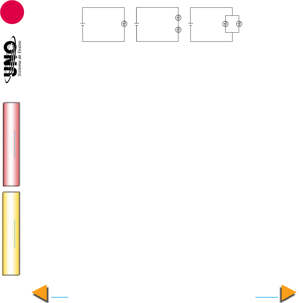FÍSICA - Eletrodinâmica IM PR IM IR Voltar Avançar 14 GA BA RI TO 53. Cefet-PR Considere as seguintes afirmações a respeito do fato de a lâmpada brilhar quase no mesmo instante em que seu interruptor é acionado. I. Embora os elétrons sejam bastante lentos, o campo elétrico no condutor atua muito rapidamente. II. Os elétrons, por serem minúsculos, movem-se muito rapidamente dentro dos condu- tores. III. Os interruptores não podem ficar muito distante das lâmpadas que deverão acionar, pois, do contrário, a quase instantaneidade entre o acionamento do interruptor e o brilho da lâmpada não poderia ser observada. Está(ão) correta(s) a(s) afirmativa(s): a) apenas I. b) apenas II. c) apenas II e III. d) apenas III. e) I, II e III. 54. UFRS Nos circuitos representados na figura abaixo, as lâmpadas 1, 2, 3, 4 e 5 são idênti- cas. As fontes que alimentam os circuitos são idênticas e ideais. Considere as seguintes afirmações sobre o brilho das lâmpadas. I. As lâmpadas 1, 4 e 5 brilham com mesma intensidade. II. As lâmpadas 2 e 3 brilham com mesma intensidade. III. O brilho da lâmpada 4 é maior do que o da lâmpada 2. Quais estão corretas? a) Apenas I. b) Apenas II. c) Apenas III. d) Apenas I e II. e) I, II e III. 55. PUC-PR Um determinado circuito elétrico de uma residência, cuja tensão elétrica é de 120 V, é constituída por cinco tomadas de corrente onde eventualmente são ligados alguns tipos de aparelhos abaixo relacionados. O circuito é protegido por um disjuntor (fusível) de 15,0 A. 1. Máquina de lavar - potência de 480 W. 2. Aquecedor elétrico - potência de 1200 W. 3. Enceradeira - potência de 360 W. 4. Aspirador de pó - potência de 720 W. 5. Televisão - potência de 240 W. O circuito será interrompido pelo disjuntor (fusível), ao se ligarem simultaneamente: a) máquina de lavar roupa e aquecedor. b) máquina de lavar roupa, enceradeira e televisão. c) enceradeira, aspirador de pó e televisão. d) aquecedor e aspirador de pó. e) em nenhum dos casos apresentados o circuito será interrompido. ε ε ε1 2 3 4 5 FÍSICA - Eletrodinâmica IM PR IM IR Voltar Avançar 15 GA BA RI TO 56. Fatec-SP Dois resistores ôhmicos de reistências R 1 = 3Ω e R 2 = 6Ω podem ser associados em série e em paralelo. Quando a associação em série é ligada a uma tomada, dissipa uma potência de 16W. Quando a associação em paralelo for ligada à mesma tomada, dissipará uma potência, em watts, de: a) 72 b) 30 c) 15 d) 9,0 e) 3,0 57. Mackenzie-SP A intensidade de corrente elétrica no trecho AC é 2 A. Para que a potência dissipada pelo resistor de 4 Ω seja 9 W, o valor de R deve ser: a) 1 Ω b) 2 Ω c) 3 Ω d) 4 Ω e) 5 Ω 58. ITA-SP Um circuito elétrico é constituído por um número infinito de resistores idênticos, conforme a figura. A resistência de cada elemento é igual a R. A resistência equivalente entre os pontos A e B é 3 a) infinita b) R ( 3 – 1) c) R 3 d) R (1 – 3 ) e) R (1 + 3) 59. UFMS Para iluminar melhor o quarto de uma casa, o proprietário mandou instalar mais uma lâmpada no teto. O eletricista ligou as duas lâmpadas incandescentes, de potências iguais, em paralelo. É correto afirmar que (01) a potência elétrica dissipada pelas lâmpadas é o dobro da potência dissipada por uma única lâmpada, pois a corrente elétrica, que passa pelo fio que liga as duas lâmpadas na rede elétrica, ficou duas vezes menor. (02) a potência elétrica dissipada pelas lâmpadas aumentou, pois a d.d.p. sobre as lâmpa- das aumentou. (04) a corrente elétrica, que passa pelo fio que liga as duas lâmpadas na rede elétrica, dobrou. (08) a corrente elétrica, que passa pelo fio que liga as duas lâmpadas na rede elétrica, ficou duas vezes menor. (16) a potência elétrica dissipada pelas lâmpadas aumentou, pois a resistência equivalente às duas lâmpadas ficou menor que a da lâmpada original. Dê, como resposta, a soma das alternativas corretas.