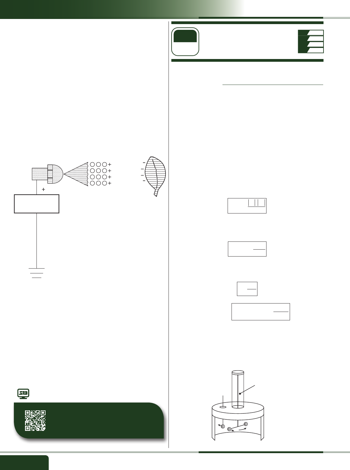 30 ciÊncias da naturEza E suas tEcnologias Física II Anual – Volume 1 10. (PUC-PR) Atualmente é grande o interesse na redução dos impactos ambientais provocados pela agricultura através de pesquisas, métodos e equipamentos. Entretanto, a aplicação de agrotóxicos praticada continua extremamente desperdiçadora de energia e de produto químico. O crescente aumento dos custos dos insumos, mão de obra, energia e a preocupação cada vez maior em relação à contaminação ambiental têm realçado a necessidade de uma tecnologia mais adequada na colocação dos agrotóxicos nos alvos, bem como de procedimentos e equipamentos que levem à maior proteção do trabalhador. Nesse contexto, o uso de gotas com cargas elétricas, eletrizadas com o uso de bicos eletrostáticos, tem-se mostrado promissor, uma vez que, quando uma nuvem dessas partículas se aproxima de uma planta, ocorre o fenômeno de indução, e a superfície do vegetal adquire cargas elétricas de sinal oposto ao das gotas. Como consequência, a planta atrai fortemente as gotas, promovendo uma melhoria na deposição, inclusive na parte inferior das folhas. Gotas eletrizadas Bico eletrostático Alta tensão 30kV a 120kV A partir da análise das informações, é correto afi rmar: A) As gotas podem estar neutras que o processo acontecerá da mesma forma. B) O fenômeno da indução descrito no texto se caracteriza pela polarização das folhas das plantas, induzindo sinal igual ao da carga da gota. C) Quanto mais próximas estiverem gotas e folha menor será a força de atração. D) Outro fenômeno importante surge com a repulsão mútua entre as gotas após saírem do bico: por estarem com carga de mesmo sinal, elas se repelem, o que contribui para uma melhoria na distribuição do defensivo nas folhas. E) Existe um campo elétrico no sentido da folha para as gotas. Potencial elétrico Seção Videoaula Aula 03: Força Elétrica Lei de Coulomb Charles Augustin de Coulomb foi o nome do físico francês que publicou pela primeira vez uma expressão formulada para calcular a interação elétrica entre corpos (cargas puntiformes) carregados eletricamente. A Lei de Coulomb foi de fundamental importância para o avanço da eletricidade na Física. Chamamos de carga elétrica puntiforme o corpo eletrizado cujas dimensões são desprezíveis em relação às distâncias que o separam de outros corpos. Caso consideremos duas cargas elétricas Q 1 e Q 2 , separadas por uma distância d e situadas no vácuo, dependendo do sinal das cargas, elas podem se atrair ou se repelir. Supondo ainda que estão isoladas de qualquer outra distribuição de cargas e campos eletromagnético ou gravitacional. A Lei de Coulomb foi enunciada como segue: “A força de atração ou de repulsão entre duas cargas é diretamente proporcional ao produto do módulo das cargas elétricas e é inversamente proporcional ao quadrado da distância entre elas”. F K Q Q d e = ⋅ 0 1 2 2 · A constante de proporcionalidade depende do meio onde estão as cargas e do sistema de unidades adotado. No caso do vácuo e para o Sistema Internacional de Unidades (SI), temos: K N m C 0 9 2 2 9 10= · · Em certos casos, é interessante escrever a constante eletrostática em função da permissividade elétrica do meio (ε), da seguinte forma: K = 1 4πε No vácuo, temos: ε0 12 2 2 8 85 10= ⋅ ⋅ −, C N m A fi m de medir as forças, Coulomb aperfeiçoou um método para detectar a força elétrica entre duas cargas puntiformes através da torção de um fi o. A partir desse experimento inventou um medidor de força extremamente sensível, batizado por ele de balança de torção. q 1 Fio de torção q 2 C-6 H-21 Aula 03 31 ciÊncias da naturEza E suas tEcnologiasFísica II Anual – Volume 1 Observando o gráfi co força por distância para duas cargas puntiformes, se a distância entre elas aumenta, verifi camos a formação de uma hipérbole. Força Distância F n d Fn 4 2d Fn 9 3d Fn 16 4d Fn 25 5d F e F e F e /4 F e /9 F e /16 0 d 2d 4d3d d3dd 4d4d Exercícios de Fixação 01. (Mackenzie-SP) No vácuo (K 0 = 9 ⋅ 109 Nm2/C2), são colocadas duas cargas elétricas puntiformes de 2 ⋅ 10–6 C e 5 ⋅ 10–6 C, distantes 50 cm uma da outra. A força de repulsão entre essas duas cargas tem intensidade: A) 63 ⋅ 10–3 N B) 126 ⋅ 10–3 N C) 45 ⋅ 10–2 N D) 36 ⋅ 10–2 N E) 18 ⋅ 10–2 N 02. (PUCRJ-2018) Uma carga q 0 é colocada em uma posição fi xa. Ao colocar uma carga q 1 = 2q 0 a uma distância d de q 0 , q 1 sofre uma força repulsiva de módulo F. Substituindo q 1 por uma carga q 2 na mesma posição, q 2 sofre uma força atrativa de módulo 2F. Se as cargas q 1 e q 2 são colocadas a uma distância 2d entre si, a força entre elas é A) repulsiva, de módulo F B) repulsiva, de módulo 2F C) atrativa, de módulo F D) atrativa, de módulo 2F E) atrativa, de módulo 4F 03. (UFJF-PISM-3/2016) Em 1785, Charles Augustin de Coulomb, com um auxílio de uma balança de torção, investigou a interação entre cargas elétricas. A balança é composta por uma haste isolante, com duas esferas em suas extremidades, sendo uma isolante (contrapeso) e outra condutora, como mostram as fi guras a seguir. Todo o conjunto é suspenso por um fi o de torção. Quando o sistema entra em equilíbrio, a esfera condutora é carregada com uma carga q 1 e outra esfera, com carga q 2 é aproximada da esfera metálica. O sistema sofre uma torção, que depende do sinal e intensidade das cargas. Com isso, é possível determinar a força de interação entre as esferas carregadas em função do ângulo de rotação. Assim, assinale a alternativa que descreve a Lei de Coulomb. Re pr od uç ão /U FJ F- PI SM -3 2 01 6 A balança de torção de Coulomb, Mémoires de I’Acadpemiedes Sciences, 1784. Contrapeso Fio de torção q 2 q 1 Esquema simplifi cado da balança de torção de Coulomb. A) A força elétrica é proporcional ao produto das cargas e inversamente propo