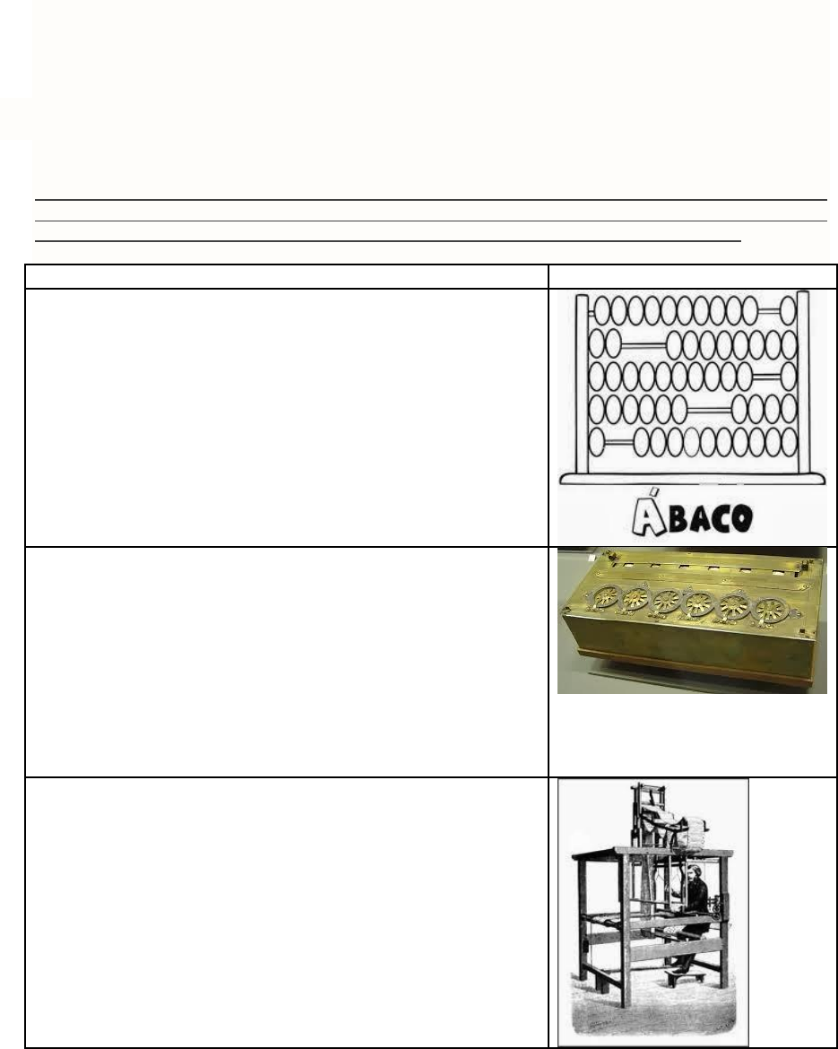 Historia del Computador GUIA 2 Desempeño(s): Conoce cada una de las generaciones evolutivas que intervinieron en el desarrollo tecnológico. HISTORIA Y EVOLUCION DE LOS COMPUTADORES La computadora no es un invento de alguien en particular, sino que es el resultado evolutivo de ideas y realizaciones de muchas personas relacionadas con áreas tales como: la electrónica, la mecánica, los materiales semiconductores, la lógica, las matemáticas y la programación. EVOLUCION DE LAS COMPUTADORAS IMAGEN El ábaco: Es considerada la herramienta de cálculo más antigua inventada en Babilonia 500 años antes de Cristo. Quien no lo conoce, pienso que la mayoría de nosotros ya hemos jugado con uno, llevando a cabo sumas y restas con las bolitas. La primera Calculadora mecánica: En 1642 después de Cristo un joven de 19 años de origen francés llamado Blaise Pascal al ver que su padre batallaba en llevar a cabo las operaciones de recaudación de impuestos trabaja con una nueva herramienta de cálculo concentrada en resolver sumas y restas, y no es hasta 1646 que crea una calculadora que trabaja por medio de engranajes (los engranajes son ruedas con dientes como las de los relojes de cuerda), Pascal nombra esta calculadora la Pascalina y distribuye 50 en toda Europa. Pascal no sólo creó esta herramienta, sino que trabajó con las leyes de las Matemáticas y la Física, siendo un genio destacado en esos tiempos. El telar de Jacquard: En 1801 el Francés Joseph Marie Jacquard decide trabajar en una maquina de telar o sea una máquina para hacer diferentes tipos de telas. Una de las ventajas es que por medio de tarjetas perforadas la maquina era capaz de crear diferentes patrones en las telas. Las tarjetas perforadas contenían orificios estratégicamente colocados, los cuales la máquina era capaz de leer y así efectuar el tipo de patrón que se le había indicado. Esto quiere decir que se había inventado el almacenamiento por medio de las tarjetas perforadas, claro está que estos eran medios de almacenamiento que ahora conocemos como discos. Las tarjetas perforadas fueron el inicio de poder almacenar información por medio de los orificios. http://3.bp.blogspot.com/-QTqyeQ5F2-M/UwqItI-v3MI/AAAAAAAAAII/rElMO4xpZqI/s1600/el+abaco.jpg http://4.bp.blogspot.com/-SQY8reJfBOE/UwqI7md5FjI/AAAAAAAAAIQ/5ODu4XLQJRw/s1600/la+pascalina.jpg http://2.bp.blogspot.com/-mTepDTyAWPk/UwqKiFmydwI/AAAAAAAAAIc/_og_CQOyWFQ/s1600/telar3.jpg Charles Babbage el Padre de la Computación: Babbage trabajó por años en una maquina de propósito general. En 1821 construye una máquina llamada Maquina Diferencial con capacidad para resolver polinomios de segundo grado, convenció al gobierno británico para concederle una subvención. Varias dificultades en la fabricación de las piezas impidieron culminar con éxito el proyecto. Después del fracaso de la Máquina Diferencial, Babbage empezó a trabajar en la Máquina Analítica, en cuya concepción colaboró directamente Ada Augusta Byron, Condesa de Lovelace. El objetivo perseguido era obtener una máquina calculadora de propósito general, controlada por una secuencia de instrucciones, con una unidad de proceso, una memoria central, facilidades de entrada y salida de datos, y posibilidades de control paso a paso, es decir, lo que hoy conocemos como programa. Sin embargo, este proyecto tampoco pudo realizarse por razones económicas y tecnológicas. Las Generaciones de Computadoras: GENERACIONES DE COMPUTADORAS IMAGEN 1era Generación (1946-1959).- Se caracterizó por el aspecto más prominente de la ENIAC, tubos de vacío durante la década de 1950, se construyeron varias otras notables computadoras, contribuyendo cada una con avances significativos al perfeccionamiento de las computadoras. Estos avances incluyeron aritmética binaria, acceso aleatorio y el concepto de programas almacenados. 2da Generación (1960- 1963).- Para la mayoría de las personas la invención del transistor significó la existencia de pequeños radios portátiles. Para lo relacionado con los negocios del procesamiento de datos, marcó el inicio de la 2da generación de computadoras. Gracias al transistor, hubo computadoras más poderosas, más confiables y menos costosas que ocupaban menos espacio. 3era Generación (1964-1967).- Los circuitos integrados hicieron por la 3era generación los que los transistores por la 2da. Los problemas de compatibilidad de las computadoras de la 2da generación, quedaron casi eliminados en las de la 3era. Una importante característica de las computadoras de la tercera generación fue la compatibilidad con equipo mayor, lo cual significaba que una compañía podía adquirir una computadora a un vendedor y mejorar después cambiando una computadora más http://4.bp.blogspot.com/-NW5byz2AWbw/UwqLyxVN0-I/AAAAAAAAAIo/MlsRjev0BqA/s1600/diferencial1.jpg http://2.bp.blogspot.com/-M8wPPHlw7UE/UwqMMD6VrZI/AAAAAAAAAIs/t1nWtwgaLNM/s1600/1a+generaciones+de+computadoras.jpg http://1.bp.blogspot.com/-tUEcXGS9xJI/UwqMU4UXyeI/AAAAAAAAAI0/lA6x1Ip0yYg/s1600/2a+generacion+de+computadoras+3.jpg https://1.bp.blogspot.com/-Hnhdyw_3EC4/Vr-9tAYFMrI/AAAAAAAACaI/_6Fn4FSIH5k/s1600/pc+tercera+generacion.jpg poderosa sin tener que volver a diseñar ni programar los sistemas de información. Las computadoras de la 3era., trabajan tan rápido que permiten corre más de un programa al mismo tiempo (multiprogramación). 4ta Generación (1970-1989).- Es mas evolucionaria que revolucionaria, iniciando hacia el último cuarto de la década de 1970, la lógica de ésta computadoras, así como sus memorias, fueron construidas casi por completo a partir de circuitos integrados que contienen cantidades muy grandes de componentes electrónicos. Esta generación se integra al usuario en el medio ambiente de la computadora, mediante lenguajes informales como los lenguajes de consulta, los generadores de reportes y los programas denominados amables con el usuario y la aparición del microprocesador. 5t