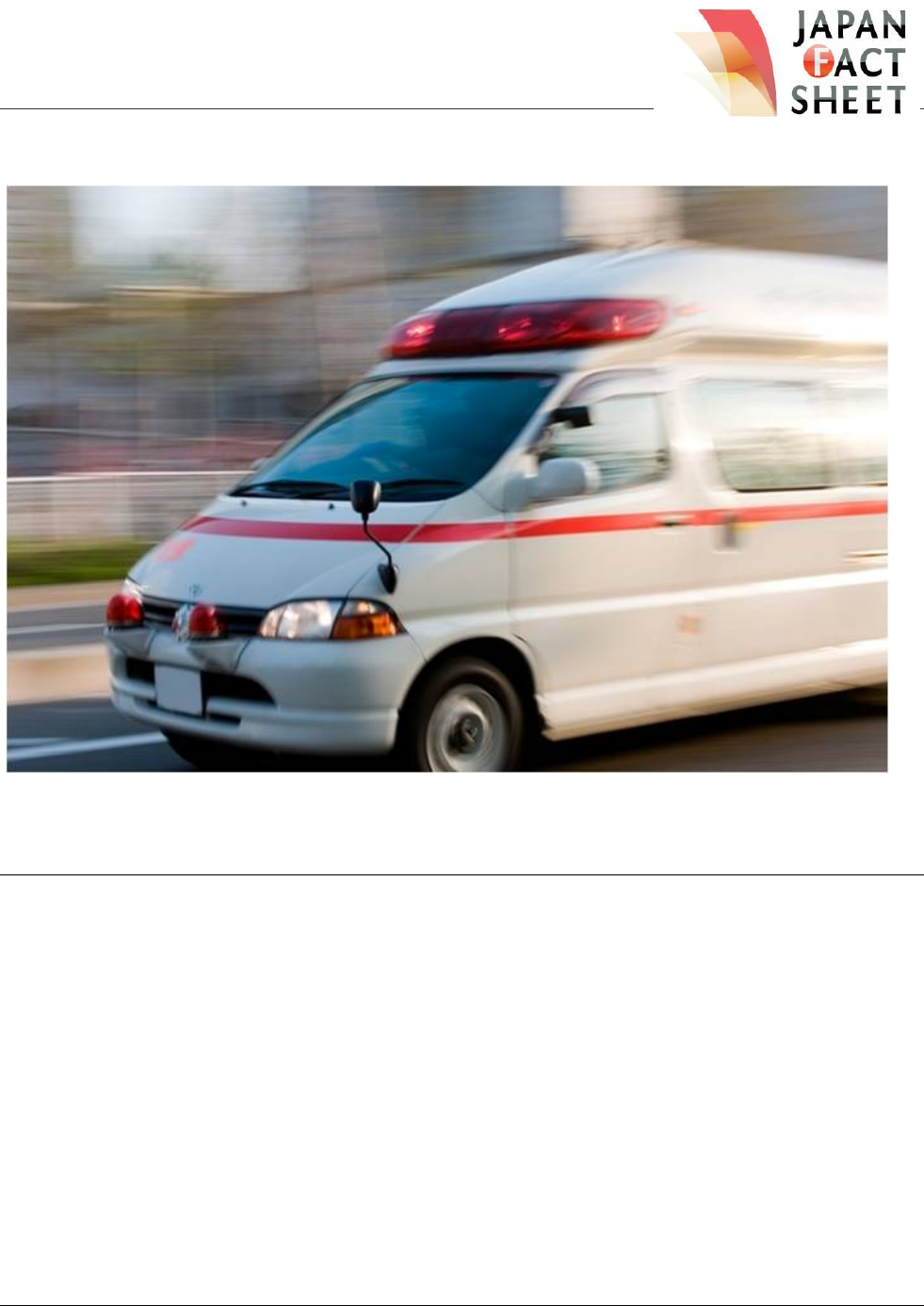 1 Sistema de Saúde Visando a Alta Qualidade e a Preservação da Saúde e dos Serviços Médicos Uma ambulância (Foto cortesia da AFLO) Introdução A assistência médica sistematizada no Japão se iniciou com a introdução da medicina chinesa no século VI. Essa tradição médica gerou muitos especialistas notáveis até o período da restauração Meiji em 1868. Naquele tempo a medicina ocidental era promovida como uma política nacional, o que levou ao desenvolvimento do sistema médico moderno japonês. O rápido crescimento econômico do pós- guerra possibilitou uma notória melhoria do padrão de vida e, ao mesmo tempo, promoveu o progresso em todos os aspectos do sistema público de saúde. Hoje o sistema de saúde no Japão está entre os mais avançados no mundo em vários aspectos, como observados na elevada expectativa de vida e na taxa de mortalidade de recém-nascidos e de crianças. Ao mesmo tempo, o sistema está enfrentando vários desafios, incluindo o pequeno número de profissionais da medicina (médicos, enfermeiros, etc.) por leito e a longa espera em média por atendimento. No século XXI, o sistema de saúde deverá lidar com as mudanças na estrutura das doenças, mudanças que incluem a ocorrência crescente das desordens psiquiátricas como a depressão, o surgimento de novas doenças infecciosas como a SARS e, sobretudo, o grande número de casos geriátricos em decorrência da elevação da idade média da população. Serviços Médicos Vários fatores, como o desenvolvimento do ambiente social, os avanços na tecnologia médica e a elevação da qualidade das instalações médicas durante os últimos 40-50 anos, são responsáveis por 2 mudanças drásticas na natureza das enfermidades da população. A tuberculose, que era a maior responsável pelas mortes no ano 1950, com taxa de mortalidade de 146.2 para cada grupo de 100.000 pessoas, agora possui taxa de menos de duas mortes para cada grupo de 100.000 pessoas. Doenças cerebrovasculares (derrames), que eram as maiores responsáveis pelas mortes entre os anos 1960-1970, tiveram suas taxas reduzidas a partir da segunda metade dos anos 1970. Desde 1980, a doença responsável pela maioria das mortes tem sido o câncer, e aparentemente o número de ocorrências tem aumentado a cada ano. Pesquisas realizadas pelo Ministério da Saúde, Trabalho e Bem-Estar em 2011, revelam que o câncer foi a causa de 28,5% de todas as mortes, seguido por doenças do coração com 15,6%, e pneumonia com 10%. As despesas com saúde no país chegaram a 36,6 trilhões de ienes no ano fiscal de 2010, ou 282400 ienes per capita, o que representou o equivalente a 10,61% de toda a renda nacional. Os pilares dos serviços médicos no Japão, conhecido como “sistema público e universal de saúde”, estão no fato de que todos os cidadãos japoneses estão inscritos no sistema e, ainda, todos têm direito ao “sistema de acesso livre”, que permite aos pacientes escolher os locais de atendimento de sua preferência. O sistema que provê assistência médica foi elaborado com essas duas chaves para que todos, independentemente de onde vivam, possam ter assegurado o direito de receber os serviços médicos. Esforços têm sido feitos para introduzir, de maneira experimental, novos serviços médicos para aqueles que vivem em locais remotos, como em regiões montanhosas, para que todos possam receber serviços médicos via internet ou por meio de outras tecnologias de comunicação. O Sistema do Seguro de Saúde Japonês Uma emenda sobre Lei de Seguro de Saúde que passou a valer em 1961 garante a todos os cidadãos japoneses e estrangeiros residentes o direito de cobertura de um dos seis planos de seguro de saúde. O principal deles é o seguro de saúde para os empregados, que cobre a maior parte dos trabalhadores do setor privado, e o Seguro Nacional de Saúde, que cobre os trabalhadores autônomos, os desempregados, aposentados, além de pessoas inelegíveis para o seguro de saúde dos empregados. Outros planos asseguram marinheiros, empregados do serviço público nacional, empregados do serviço público local e funcionários e professores de escolas privadas. Dentro dos planos de seguro de saúde do Japão, 20% das despesas médicas são destinadas aos recém-nascidos e crianças menores; 30% vãos para crianças maiores até idosos de 69 anos; 20% para a faixa entre 70-74 anos (entretanto, esse porcentual tem sido reduzido sucessivamente a 10% até o ano de 2010). O grupo de pessoas com mais de 75 anos está inscrito em um sistema separado do sistema de saúde geral, e se chama Sistema de Saúde Vida Longa. O portador do seguro então paga pelo médico, hospital, clínica, ou outros mecanismos de saúde um residual pelo serviço utilizado conforme previsto pelo Ministério da Saúde, Trabalho e Bem-Estar. Esse sistema de seguro de saúde possibilita a todos os cidadãos o acesso a um tratamento médico adequado e, conseguintemente, contribui grandemente para a tranquilidade mental e para a saúde da sociedade em geral. Serviços de Saúde e Médico para os Idosos A porcentagem da população japonesa com mais de 65 anos era maior que 7% em 1970. Apenas 41 anos depois, em 2011, já era mais de 23,2%. Em abril de 2011, o Japão tinha 29,76 milhões de idosos. Hoje, uma em cada cinco pessoas tem 65 anos ou mais e, em 2050, a proporção será de um em cada três. Em 2008 as despesas médicas com esse grupo totalizavam 20,71 trilhões de ienes, ou 55,4% do total e, per capita, o gasto era de 702.000 ienes, em comparação com os 169.000 ienes gastos com o grupo com menos de 65 anos. Com os avanços da tecnologia no tratamento médico, os melhores tratamentos de saúde estão acessíveis e, ao mesmo tempo, isso pode prolongar o período da assistência. Além disso, com a tendência crescente em direção da família nuclear e com a entrada das mulheres no mercado de 3 trabalho, o cuidado com os idosos nos lares tem se tor