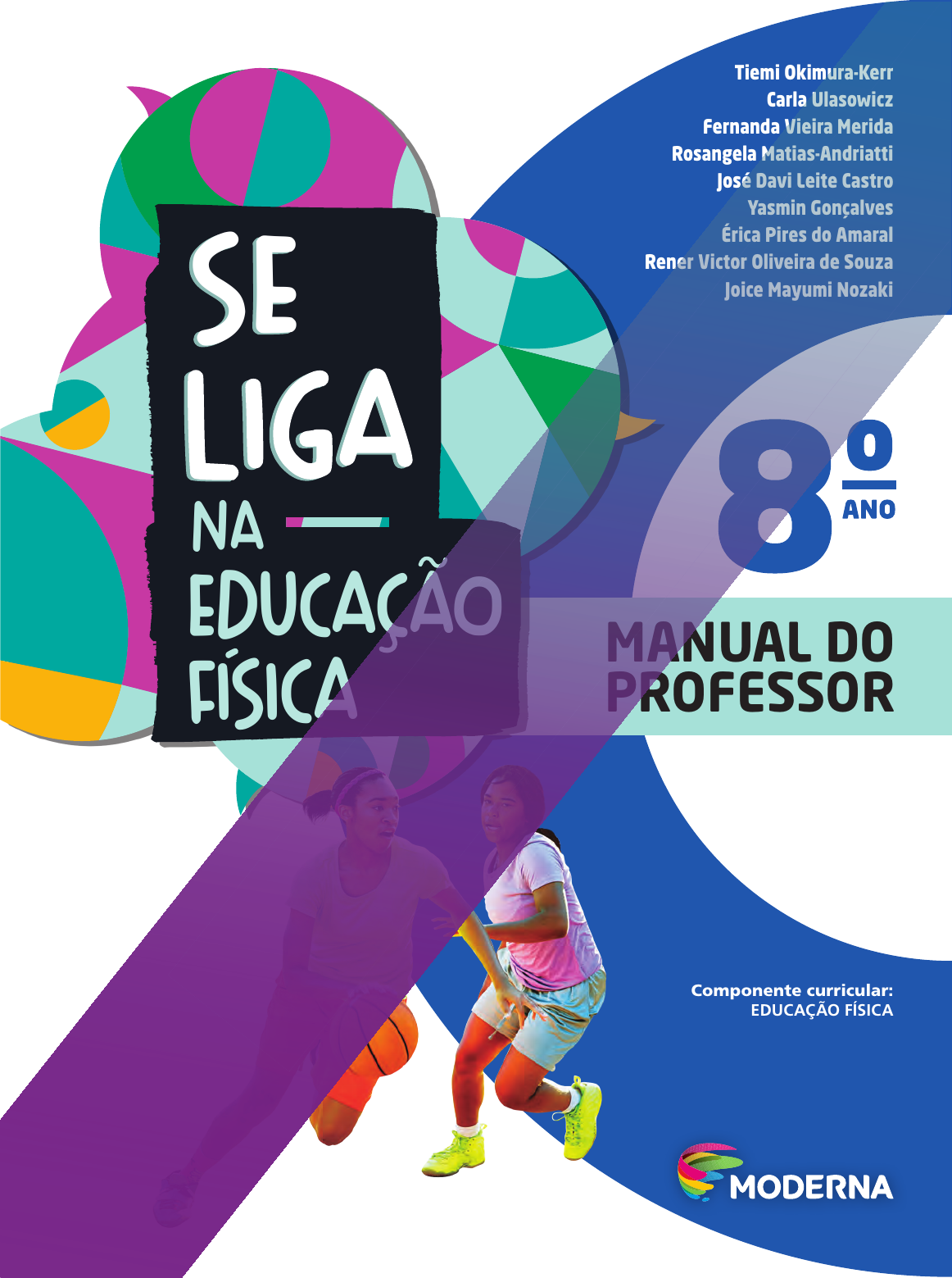 Tiemi Okimura-Kerr Carla Ulasowicz Fernanda Vieira Merida Rosangela Matias-Andriatti José Davi Leite Castro Yasmin Gonçalves Érica Pires do Amaral Rener Victor Oliveira de Souza Joice Mayumi Nozaki MANUAL DO PROFESSOR Componente curricular: EDUCAÇÃO FÍSICA ISBN 978-85-16-13750-2 9 7 8 8 5 1 6 1 3 7 5 0 2 NA EDUCACAO FISICA SE G MP PDF FINAL 01/08 Formato papel capa papel miolo # Págs LOMBADA EXTR A S laminação 205 x 275 cartão 250 g off-set 75 g 96 Grampo BRILHO Moderna PNLD 2024 - Capas Se Liga LE.indd 53-54 01/08/2022 15:01 MA TE RIA L D E D IV UL GA Çà O. V ER Sà O SU BM ET ID A À AV AL IA Çà O. Có dig o d a c ol eç ão : 00 15 P2 4 0 1 0 0 2 00 16 0 PN LD 20 24 - O bje to 1 MA TE RIA L D E D IV UL GA Çà O. V ER Sà O SU BM ET ID A À AV AL IA Çà O. Có dig o d a c ol eç ão : 00 15 P2 4 0 1 0 0 2 00 16 0 PN LD 20 24 - O bje to 1 1a edição São Paulo, 2022 Tiemi Okimura-Kerr Mestra em Educação Física, na área de concentração: Pedagogia do Movimento Humano, pela Universidade de São Paulo. Professora universitária em instituição particular e da Educação Básica na rede pública. Organizadora e autora de livros na área de Educação Física Escolar. Carla Ulasowicz Doutora em Ciências, no programa: Psicologia Escolar e do Desenvolvimento Humano, pela Universidade de São Paulo. Licenciada em Educação Física pela Universidade do Grande ABC (SP). Professora da Educação Básica na rede pública. Autora de livros na área de Educação Física Escolar. Fernanda Vieira Merida Mestra em Educação Física pela Universidade São Judas Tadeu (SP). Professora da Educação Básica na rede pública. Autora de livros na área de Educação Física Escolar e Ginástica. Rosangela Matias-Andriatti Mestra em Educação Física, na área de Educação Física Escolar, pela Universidade Estadual Paulista “Júlio de Mesquita Filho” (Rio Claro-SP). Professora da Educação Básica na rede pública. Integrante de grupo autônomo de Professores-Pesquisadores em Educação Física. José Davi Leite Castro Licenciado em Educação Física pela Universidade Federal do Ceará. Integrante do Grupo de Pesquisa sobre Estudos e Pesquisas em Educação Física Escolar e Relações com os Saberes da Universidade Federal do Ceará. Yasmin Gonçalves Licenciada em Educação Física pela Universidade Federal do Ceará. Integrante dos Grupos de Pesquisa sobre Educação Física Escolar e Processos Formativos Colaborativos e Estudos e Pesquisas em Educação Física Escolar e Relações com os Saberes da Universidade Federal do Ceará. Érica Pires do Amaral Licenciada em Educação Física pela Universidade de São Paulo. Professora da Educação Básica na rede pública. Educadora Griô e Contramestra de Capoeira. Rener Victor Oliveira de Souza Especialista em Gestão Educacional pela Universidade Cesumar (PR). Licenciado em Educação Física pelo Centro Universitário Católica de Quixadá (CE). Professor da Educação Básica na rede pública. Joice Mayumi Nozaki Mestra em Ciências da Motricidade, Especialidade Pedagogia da Motricidade Humana, pela Universidade Estadual Paulista “Júlio de Mesquita Filho” (Rio Claro-SP). Professora da Educação Básica na rede pública. Autora de livros nas áreas de Educação Física Escolar, formação profissional e extensão universitária. Componente curricular: EDUCAÇÃO FÍSICA NA EDUCACAO FISICA SE MANUAL DO PROFESSOR Coordenação editorial: Ofício do Texto Projetos Editoriais, Alice Kobayashi Edição e preparação de texto: Ofício do Texto Projetos Editoriais Assistência editorial: Ofício do Texto Projetos Editoriais Gerência de design e produção grá�ca: Patricia Costa Coordenação de produção: Denis Torquato Gerência de planejamento editorial: Maria de Lourdes Rodrigues Coordenação de design e projetos visuais: Marta Cerqueira Leite Projeto grá�co: Bruno Tonel, Noctua Art, Vinícius Rossignol Felipe Capa: Marta Cerqueira Leite, Bruno Tonel, Daniela Cunha Foto: Garotas jogando basquete em quadra ao ar livre. Thomas Barwick/Digital Vision/Getty Images Coordenação de arte: Wilson Gazzoni Agostinho Edição de arte: Izabel Donaire, Leticia Ruggiero C. N. Constantino Editoração eletrônica: Casa de Ideias Coordenação de revisão: Elaine C. del Nero Revisão: Ana Cortazzo, Nancy H. Dias, Palavra Certa, Renato da Rocha, Tatiana Malheiro Coordenação de pesquisa iconográ�ca: Flávia Aline de Morais Pesquisa iconográ�ca: Jade Defacio Coordenação de bureau: Rubens M. Rodrigues Tratamento de imagens: Ademir Francisco Baptista, Ana Isabela Pithan Maraschin, Denise Feitoza Maciel, Marina M. Buzzinaro, Vânia Maia Pré-impressão: Alexandre Petreca, Fabio Roldan, José Wagner Lima Braga, Marcio H. Kamoto, Selma Brisolla de Campos Coordenação de produção industrial: Wendell Monteiro Impressão e acabamento: 1 3 5 7 9 10 8 6 4 2 Reprodução proibida. Art. 184 do Código Penal e Lei 9.610 de 19 de fevereiro de 1998. Todos os direitos reservados EDITORA MODERNA LTDA. Rua Padre Adelino, 758 - Belenzinho São Paulo - SP - Brasil - CEP 03303-904 Atendimento: Tel. (11) 3240-6966 www.moderna.com.br 2022 Impresso no Brasil APRESENTAÇÃO Caros colegas professores, Este livro é o terceiro volume desta coleção, em que o primeiro e o segundo volumes são direcionados ao ensino da Educação Física para o 6o e 7o anos, enquanto o último relaciona-se ao 9o ano. Os volumes foram estruturados com base nas unidades temáticas (Brincadeiras e Jogos, Esportes, Ginásti- cas, Danças, Lutas e Práticas Corporais de Aventura) e orientações normatizadas pela BNCC (BRASIL, 2018). Em 2019, foram descritos os Temas Contemporâneos Transversais na BNCC, que são abordados por meio de propostas intradisciplinares, interdisciplinares e transdisciplinares. Esses temas se articulam com os blocos de conteúdos temáticos da perspectiva de convergência de abordagens da Educação Física escolar adotada nesta obra 