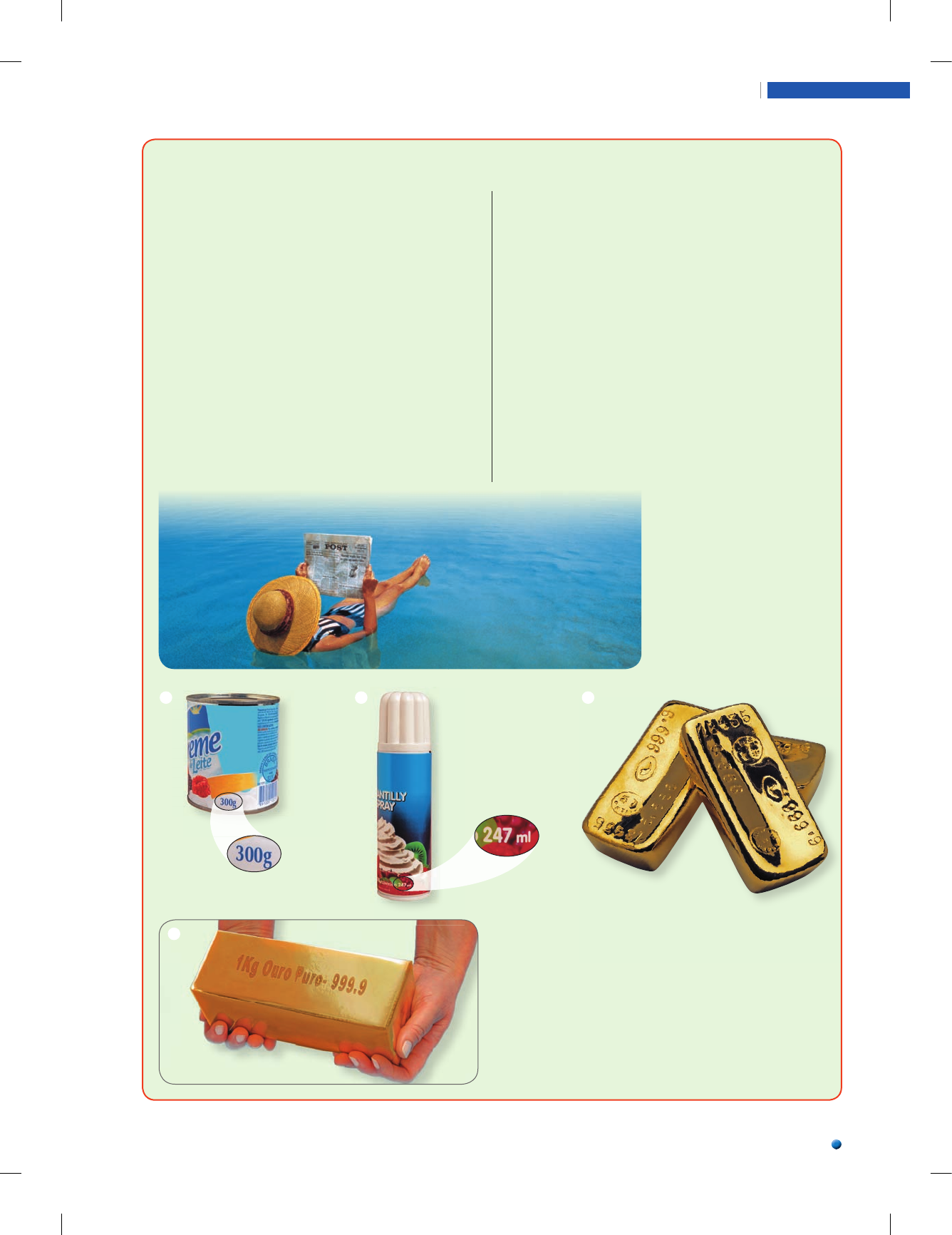 Capítulo 2 Substâncias químicas 27 R ep ro d uç ão p ro ib id a. A rt . 1 84 d o C ód ig o P en al e L ei 9 .6 10 d e 19 d e fe ve re iro d e 19 98 . CASOS INTERESSANTES ENVOLVENDO DENSIDADE O clorofórmio (d 1,4 g/cm3) é vendido, em lojas de produtos químicos, por massa; já o éter comum (d 0,8 g/cm3) é vendido por volume. Se ambos são líquidos, por que um é vendido por massa e o outro por volume? Sendo a densidade da água igual a 1,0 g/cm3, isso significa que cada 1,0 g de água ocupa um volume de 1,0 cm3, ou cada 1,0 kg de água ocupa um volume de 1,0 litro. Utilizando esse raciocínio, cada 1,0 litro de clorofórmio possui uma massa de 1,4 kg; já 1,0 litro de éter possui uma massa de 0,8 kg. Líquidos mais densos que a água costu- mam ser vendidos por massa; os menos densos costumam ser vendidos por volume. Agora reflita sobre o caso dos sorvetes de massa industrializados e vendidos em potes de plástico. Uma pessoa fl utua sem esforço nas águas do Mar Morto. Lá, para cada litro de água do mar, existem cerca de 360 g de sais dissolvidos, enquanto no litoral do Brasil, por exemplo, para cada litro de água do mar, existem cerca de 37 g de sais dissolvidos. H U G H S IT TO N /S TO N E -G E T T Y I M A G E S Creme de leite é vendido por massa. Chantilly é vendido por volume. Au (d 19,3 g /cm3); 1 L de Au tem massa 19,3 kg. Qual seria o grande erro dessa foto? SG M /A G E- KE YS TO CK E D U A R D O S A N TA L IE S T R A /C ID E D U A R D O S A N TA L IE S T R A /C ID São comer cializados por massa ou por volume? Por quê? Outro caso interessante relacionado ao conceito de densidade é o da facilidade com que uma pes- soa flutua no Mar Morto. Veja a foto e a legenda abaixo. Ao bater creme de leite em uma batedeira este se transforma em chantilly. Nesse processo, ar é incorporado ao creme de leite, causando um au- mento de volume. A massa antes (creme de leite) e depois (chantilly) é praticamente a mesma, pois somente ar foi acrescentado. Assim, o creme de leite, por ter mais massa em um certo volume (mais denso), é vendido por massa; já o chantilly, com menos massa em um certo volume (menos denso), é vendido por volume. E D U A R D O S A N TA L IE S T R A /C ID 28 Exercícios adicionais Seu (sua) professor(a) indicará o melhor momento para realizar os exercícios deste bloco. Resolva em seu caderno R ep ro d uç ão p ro ib id a. A rt . 1 84 d o C ód ig o P en al e L ei 9 .6 10 d e 19 d e fe ve re iro d e 19 98 . Antes mL 100 90 80 70 60 50 40 30 20 10 mL 100 90 80 70 60 50 40 30 20 10 Depois A escala está em mililitros (mL) Exercício Resolvido 21. Um bloco de metal tem volume de 200 mL e massa de 1.792 g. a) Qual a densidade desse metal, expressa em g/cm3 ? b) Qual o volume de uma amostra de 1 kg desse metal? Resolução a) Podemos determinar a densidade dividindo a massa (1.792 g) pelo volume (200 mL, ou seja, 200 cm3): d 5 m __ V V d 5 1.792 g ________ 200 cm3 V d 5 8,96 g/cm3 b) Conhecida a densidade, que expressa a relação de proporcionalidade entre massa e volume para certo material numa dada temperatura, podemos utilizá-la para determinar o volume de uma amos- tra de 1 kg (1.000 g): d 5 m __ V V d 5 8,96 g/cm 3 5 1.000 g _______ V V V V 5 1.000 g ________ 8,96 g ____ cm3 V V 5 111,6 cm3 22. Um caminhão transporta 5 t de uma variedade de madeira cuja densidade é 0,7 g/cm3. Qual o volume da madeira que está sendo transportada, expresso em: a) litros? b) metros cúbicos? 23. Um estudante desejava medir o volume de um para- fuso grande. Para isso, colocou água numa proveta (cilindro com graduação de volume) e determinou o volume da água colocada. A seguir, jogou o parafuso dentro da proveta e determinou novamente o volume. Os desenhos abaixo ilustram o que ele observou. Exercícios essenciais A critério do(a) professor(a) esta lista de exercícios poderá ser realizada em classe ou em casa.Resolva em seu caderno a) Qual é o volume do parafuso? b) Sabendo que a massa do parafuso é 157,4 g, de- termine a densidade do material de que ele é feito, em g/cm3. 1 2 3 24. (UFPE) Para identificar três líquidos — de densidades 0,8, 1,0 e 1,2 — o analista dispõe de uma pequena bola de densidade 1,0. Conforme a posição das bolas apre- sentadas no desenho abaixo, podemos afirmar que: a) os líquidos contidos nas provetas 1, 2 e 3 apresen- tam densidades 0,8, 1,0 e 1,2. b) os líquidos contidos nas provetas 1, 2 e 3 apresen- tam densidades 1,2, 0,8 e 1,0. c) os líquidos contidos nas provetas 1, 2 e 3 apresen- tam densidades 1,0, 0,8 e 1,2. d) os líquidos contidos nas provetas 1, 2 e 3 apresen- tam densidades 1,2, 1,0 e 0,8. e) os líquidos contidos nas provetas 1, 2 e 3 apresen- tam densidades 1,0, 1,2 e 0,8. 25. (FMTM-MG) Considere as substâncias e suas respec- tivas densidades à temperatura ambiente: Substância Densidade (g/mL) Ácido sulfúrico 1,8410 Tolueno 0,8669 Acetona 0,7899 Há maior massa em um litro de: a) ácido sulfúrico que em dois litros de tolueno. b) tolueno que em dois litros de acetona. c) acetona que em dois litros de tolueno. d) ácido sulfúrico que em três litros de acetona. e) tolueno que em dois litros de ácido sulfúrico. a D il S O n S E C C O il u S T r a ç õ E S : a D il S O n S E C C O