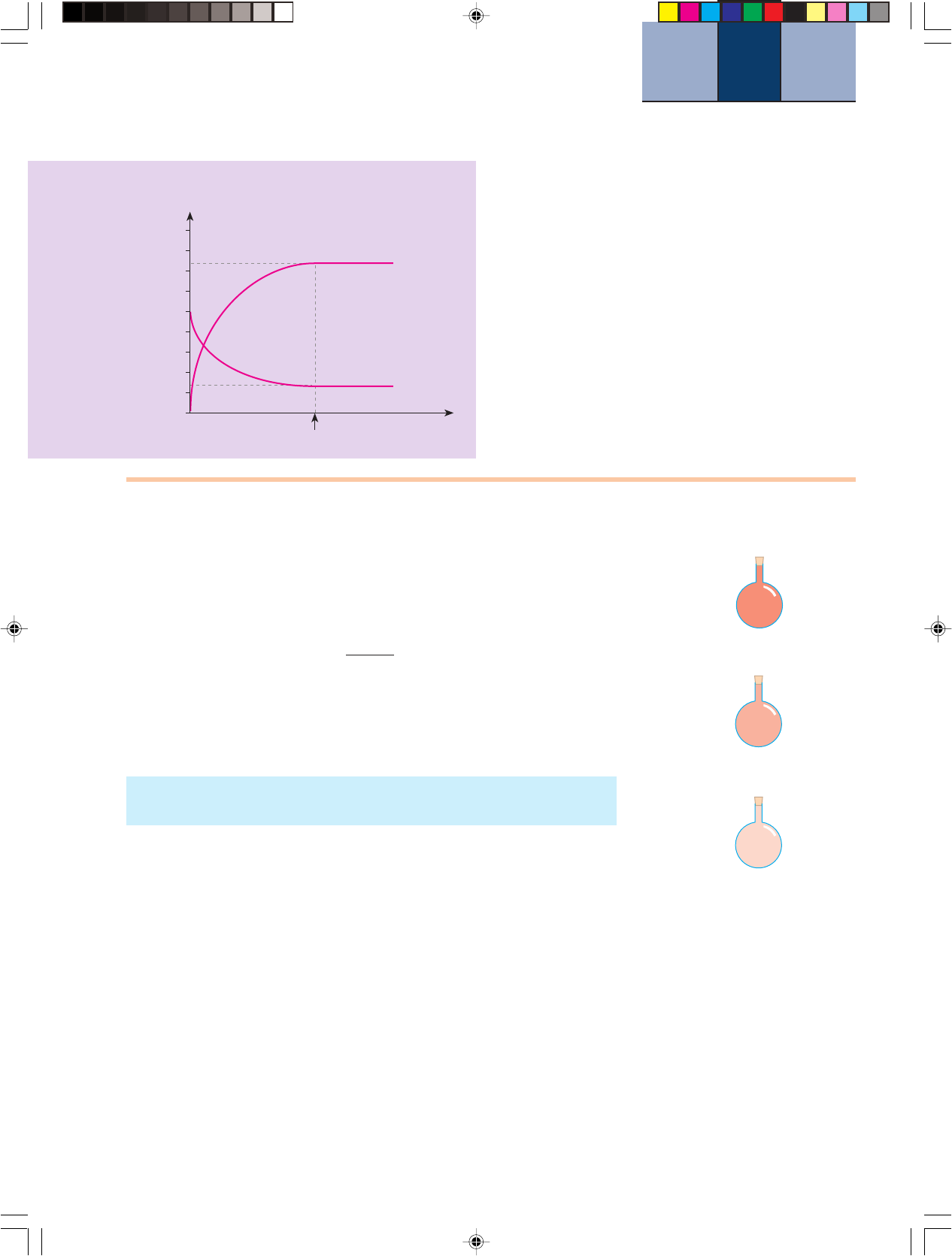 2.5. Decidindo se um sistema está em equilíbrio Considere os sistemas &, ' e (, esquematizados nas figuras ao lado. Em qual (quais) existe equilíbrio químico? Para responder vamos relembrar que a constante de equilíbrio para essa reação possui a se- guinte expressão: N2O4 (g) F 2 NO2 (g) [NO ] [N O ] K 0,36 (a 100 C)2 2 2 4 c& & ° No entanto essa expressão é válida apenas no equilíbrio, pois, ao de- monstrar à página 212 que [NO2] 2/[N2O4] permanece constante, partimos da hipótese de que as velocidades da reação direta e inversa eram iguais. Portanto: A expressão de Kc estabelece uma relação matemática entre os valo- res das concentrações, em mol/L, na situação de equilíbrio químico. Assim, para os três sistemas, vamos calcular o resultado de [NO2] 2/[N2O4]. Se esse valor for igual a 0,36, isso significa que a reação N2O4 F 2 NO2 está em equilíbrio. Caso [NO2] 2/[N2O4] seja diferente de 0,36, não há equilíbrio. • Sistema &: O cálculo de [NO2] 2/[N2O4] resulta em 0,60, que é dife- rente de 0,36. Portanto, nesse sistema, o processo não está em equi- líbrio. • Sistema ': O cálculo de [NO2] 2/[N2O4] resulta em 0,36, que é exata- mente o valor de Kc, nessa temperatura. Nesse sistema o processo está em equilíbrio. • Sistema (: O cálculo de [NO2] 2/[N2O4] resulta em 0,25, que é diferente de 0,36. Portanto, nesse sistema, o processo não está em equilíbrio. Assim, para verificar se um sistema está em equilíbrio químico, basta substituir os valores das concentrações na expressão da constante de equilíbrio; se o resultado numérico do cálculo for igual ao valor de Kc , na temperatura em questão, o sistema estará em equilíbrio. E se for diferen- te, não estará. 10. Ainda sobre o mesmo exercício, esboce um gráfico das con- centrações de N2O4 e NO2 em função do tempo. Resolução Perceba que o gráfico representa os valores da tabela. 11. Num recipiente de capacidade 2,0 L são colocados 8,0 mol de CO e 8,0 mol de Cl2 para tomarem parte no seguinte pro- cesso, a temperatura constante: CO(g) " Cl2 (g) F COCl2 (g) Sabendo que o grau de equilíbrio é 75%, calcule Kc na tempe- ratura do experimento. 12. Faça um gráfico de concentração, em mol/L, em função do tempo para os três participantes do processo descrito na questão anterior. 13. 64,0 g de HI gasoso sofrem decomposição a temperatura constante em recipiente fechado: 2 HI(g) F H2 (g) " I2 (g) Estabelecido o equilíbrio, verifica-se a presença de 12,8 g de HI no sistema. Pede-se: a) o grau de equilíbrio; b) o valor da constante de equilíbrio; c) um gráfico de quantidade, em mols, versus tempo para cada participante. Comentário: Consulte a tabela periódica para obter as mas- sas atômicas e, a partir delas, as massas molares. Concentração (mol/L) 0 Tempo 2,0 4,0 6,0 8,0 [N2O4] [NO2] 0 Equilíbrio é atingido & 100°C ' ( [N2O4] = 2,40 mol /L [NO2] = 1,20 mol /L [N2O4] = 2,60 mol /L [NO2] = 0,80 mol /L [N2O4] = 2,53 mol /L [NO2] = 0,96 mol /L N2O4 e NO2 N2O4 e NO2 N2O4 e NO2 100°C 100°C 217 R ep ro du çã o pr oi bi da .A rt .1 84 do C ód ig o P en al e Le i 9 .6 10 de 19 de fe ve re iro de 19 98 . Capitulo_08 6/22/05, 8:34217 218 R ep ro du çã o pr oi bi da .A rt .1 84 do C ód ig o P en al e Le i9 .6 10 de 19 de fe ve re iro de 19 98 . 14. (FCC-BA) A respeito da reação: A " B F C " 2 D, foram le- vantados os seguintes dados: Dos cinco experimentos realizados, quatro já atingiram o equilíbrio. Em qual dos experimentos o equilíbrio ainda não foi atingido? 15. Os modelos a seguir representam sistemas em que pode, ou não, haver o equilíbrio químico, a 1.000°C: CO(g) " H2O(g) F H2 (g) " CO2 (g) Kc & 4 (1.000°C) Em quais casos certamente o sistema não está em equilí- brio? Justifique. Legenda: = H = C = O & ' ( 16. A 150°C, o equilíbrio N2O4 (g) F 2 NO2 (g) apresenta Kc & 3,2. Nessa temperatura, foram feitas misturas de N2O4 e NO2, cada qual colocada em um frasco numerado. No exato momento em que essas misturas foram feitas, as concentrações de cada gás são as mostradas na tabela: Em qual(is) dessas quatro misturas, no momento em que foram feitas, pode-se afirmar que já existe o equilíbrio quí- mico N2O4 (g) F 2 NO2 (g)? Justifique. Comentário: Como a constante fornecida apresenta apenas uma casa depois da vírgula, ao efetuar seus cálculos arre- donde o valor obtido para uma casa depois da vírgula, a fim de fazer a comparação com 3,2 e a previsão pedida. 17. Nas misturas da questão anterior que ainda não estão em equilíbrio, o que se espera que aconteça, com o passar do tempo, com a concentração de: a) N2O4? b) NO2? 18. Coloca-se 1 mol de N2O4 em um frasco fechado e espera-se o sistema atingir o equilíbrio: N2O4 (g) F 2 NO2 (g). Em qual das temperaturas que aparecem na tabela 3, da pá- gina 214, o equilíbrio apresentará maior concentração de pro- duto? Por quê? Analise estes dados Motivação Concentração (mol # litro#1) Experimento A B C D I 0,50 4,00 1,00 1,00 II 4,00 2,00 1,00 2,00 III 4,00 3,00 2,00 2,00 IV 9,00 2,00 1,00 3,00 V 16,00 8,00 4,00 4,00 Frasco [N2O4] [NO2] 1 1,0 1,0 2 4,0 4,0 3 0,31 1,0 4 1,0 1,8 Início No equilíbrio (PN2O4 )i (PNO2 )i (PN2O4 )eq (PNO2 )eq (atm) (atm) (atm) (atm) 1,0 0,0 0,221 1,558 11 2,0 0,0 0,656 2,688 11 3,0 0,0 1,190 3,620 11 0,0 1,0 0,068 0,864 11 0,0 2,0 0,221 1,558 11 0,0 3,0 0,422 2,156 11 1,0 1,0 0,422 2,156 11 1,0 2,0 0,656 2,688 11 2,0 2,0 1,190 3,620 11 Tabela 5. Dados para o equilíbrio N2O4 (g) F 2 NO2 (g) , a 100°C (PNO2 ) 2 eq (PN2O4 )eq Questõespara fixação Resolva em seu caderno Tabela elaborada pelos autores. Capitulo_08 6/22/05, 8:34218
