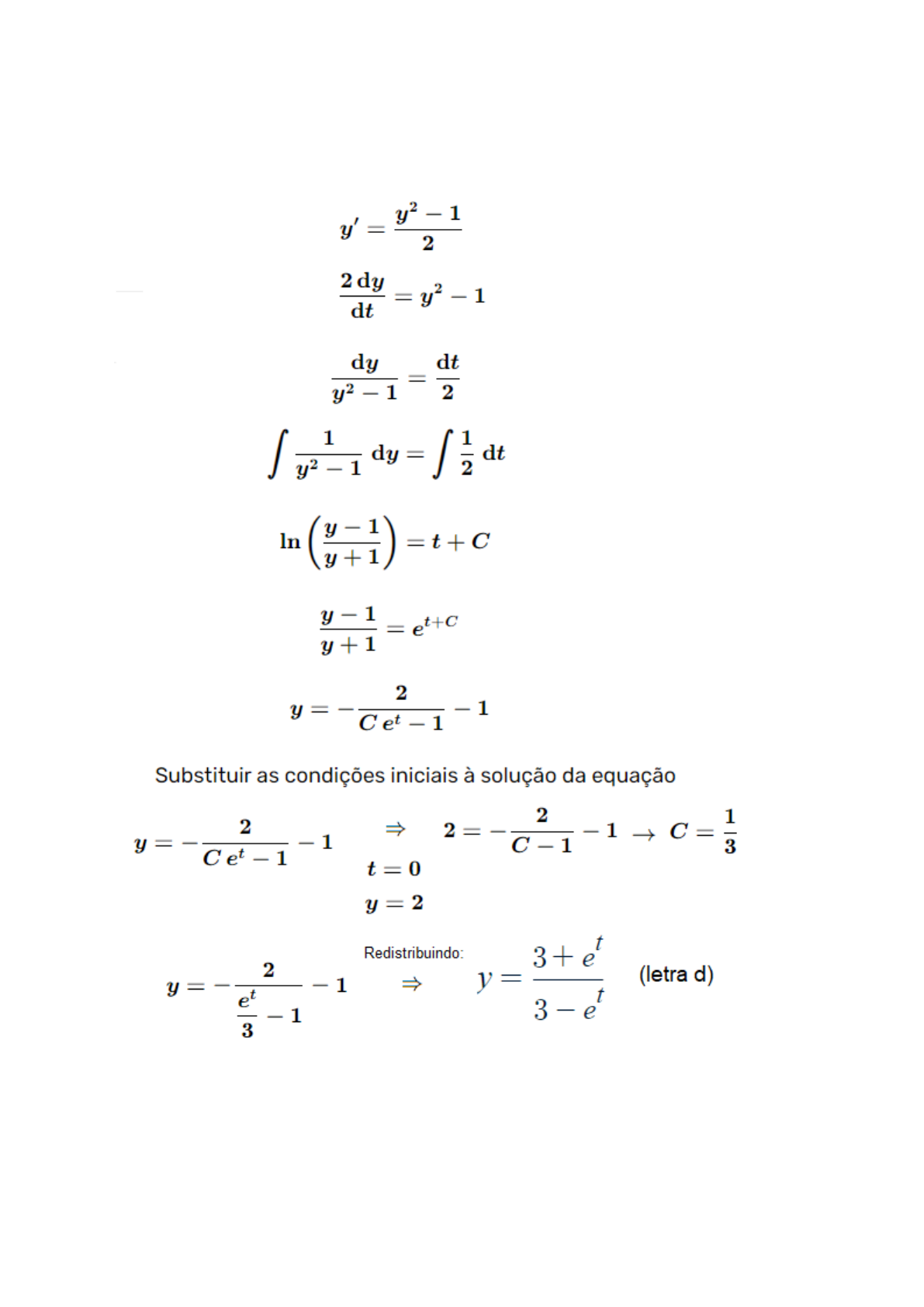 Lista de EDO 1) 2) 4) 6) 7) Letra B) I e II, pois podem ser escritas na forma de uma EDO linear: 10) 12) 13) 14) 15) Usando a tabela de transformada de Laplace, temos como resultado letra E.