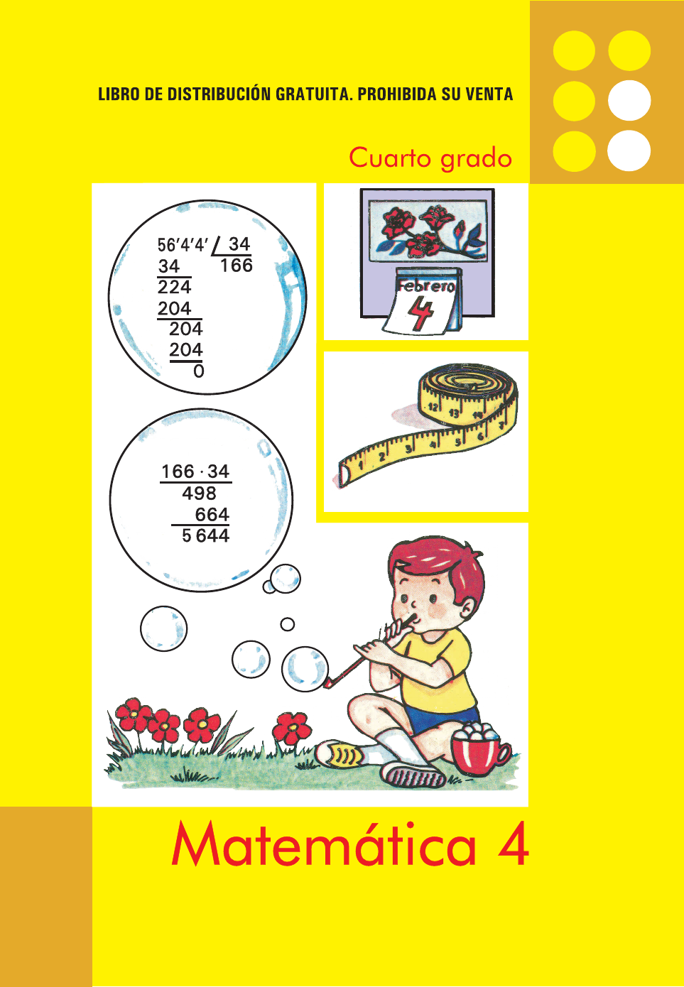 PR-03.qxp 31/10/2012 1:01 Página I PR-03.qxp 31/10/2012 1:01 Página II PR-03.qxp 31/10/2012 1:01 Página III Edición: Lic. Laura Herrera Caseiro Diseño de cubierta: Nilda Oliva Lloret Diseño: Bienvenida Díaz Rodríguez Ilustración: Martha Tresancos Espín Ofelia Rodríguez Prendes Corrección: Hilda Pallés Arango Emplane: María de los Ángeles Ramis Vázquez Realización: Idania González Sixto Francisco Pérez Duménigo © Oncena reimpresión, 2013 © Décima reimpresión, 2011 © Primera reimpresión, 1994 © Ministerio de Educación, Cuba, 1991 © Editorial Pueblo y Educación, 1991 ISBN 978-959-13-0069-0 EDITORIAL PUEBLO Y EDUCACIÓN Ave. 3ra. A No. 4601 entre 46 y 60, Playa, La Habana Cuba. CP 11300. epe@cenial.inf.cu PR-03.qxp 31/10/2012 1:01 Página IV PR-03.qxp 31/10/2012 8:03 Página 1 PR-03.qxp 31/10/2012 8:03 Página 2 PR-03.qxp 31/10/2012 8:03 Página 3 3 201 tres mil doscientos uno. PR-03.qxp 31/10/2012 8:03 Página 4 PR-03.qxp 31/10/2012 8:03 Página 5 398 401 2 005 2 001 PR-03.qxp 31/10/2012 3:09 Página 6 PR-03.qxp 31/10/2012 8:03 Página 7 102 103 104 Millar PR-03.qxp 31/10/2012 8:03 Página 8 MillarMillón 106 105 00 000 0 000 U C D U C D U 2 4 3 PR-03.qxp 30/10/2012 23:55 Página 9 PR-03.qxp 31/10/2012 8:04 Página 10 PR-03.qxp 31/10/2012 8:04 Página 11 PR-03.qxp 31/10/2012 8:04 Página 12 PR-03.qxp 31/10/2012 8:04 Página 13 PR-03.qxp 31/10/2012 8:04 Página 14 10 000 100 000 80 000 50 000 90 000 100 000 100 000 10 000 10 000 6 000 4 000 7 000 5 000 PR-03.qxp 30/10/2012 23:59 Página 15 PR-03.qxp 31/10/2012 1:11 Página 16 D U C D U 104 103 102 10 1 Millar 3 decenas de millar 3 5 2 7 3 5 2 4 7 3 5 2 4 7 decenas de millar. PR-03.qxp 31/10/2012 8:05 Página 17 centenas de millar 400 000 + 32 856 = 432 856 PR-03.qxp 31/10/2012 8:05 Página 18 dígitos. lugar posición. PR-03.qxp 31/10/2012 1:12 Página 19 PR-03.qxp 31/10/2012 8:05 Página 20 PR-03.qxp 31/10/2012 8:05 Página 21 8 343 = 8 000 + 300 + 40 + 3 583 = 5 · 100 + 8 · 10 + 3 · 1 9 348 = 9 · 103 + 3 · 102 + 4 · 10 + 8 · 1 PR-03.qxp 31/10/2012 8:05 Página 22 PR-03.qxp 31/10/2012 8:05 Página 23 PR-03.qxp 31/10/2012 8:06 Página 24 . . 325 > 32 87 < 92 839 > 499 3 950 < 3 290 4 682 > 315 504 < 3 642 PR-03.qxp 31/10/2012 4:08 Página 25 320; 6 015; 890; 22 300; 4 916; 530 320; 890; 530 320; 530; 890 22 3004 916; 6 015 6 015; 4 916 22 300 4 916; 6 015; PR-03.qxp 31/10/2012 8:06 Página 26 27 PR-03.qxp 31/10/2012 8:06 Página 27 PR-03.qxp 31/10/2012 8:06 Página 28 PR-03.qxp 31/10/2012 0:04 Página 29 PR-03.qxp 31/10/2012 8:06 Página 30 Redondeo de números hasta 10 000 . . . 23 87 423 5 687 20 20 80 90 20 30 80 90 PR-03.qxp 31/10/2012 0:04 Página 31 1 2 3 4 9 1 5 6 7 8 9 2 3 4 8 7 6 5 PR-03.qxp 31/10/2012 8:06 Página 32 4 872 4 870 4 900 5 000 PR-03.qxp 31/10/2012 1:13 Página 33 PR-03.qxp 31/10/2012 8:07 Página 34 PR-03.qxp 31/10/2012 8:07 Página 35 Cálculo con números hasta 1 000 000 Adición y sustracción cuatro lugares. PR-03.qxp 31/10/2012 8:07 Página 36 Multiplicación y división PR-03.qxp 31/10/2012 8:07 Página 37 PR-03.qxp 31/10/2012 8:08 Página 38 PR-03.qxp 31/10/2012 8:08 Página 39 contó y la orde- fiesta papalotes PR-03.qxp 31/10/2012 8:08 Página 40 PR-03.qxp 31/10/2012 8:08 Página 41 PR-03.qxp 31/10/2012 8:08 Página 42 PR-03.qxp 31/10/2012 8:08 Página 43 Los números naturales mayores que 1 000 000 Leemos y escribimos números hasta 1 000 000 106 (un millón). 107 (diez millones). 108 (cien millones). PR-03.qxp 31/10/2012 8:08 Página 44 Leemos números de muchos lugares PR-03.qxp 31/10/2012 8:08 Página 45 Cada número natural tiene un sucesor. No existe el mayor número natural. 0 (cero) es el menor número natural. Cada número natural diferente de cero, tiene un antecesor. . . . PR-03.qxp 31/10/2012 8:09 Página 46 PR-03.qxp 31/10/2012 8:09 Página 47 Millares de millón Millones Millares 1011 1010 109 108 107 106 105 104 103 102 10 1 r PR-03.qxp 31/10/2012 8:09 Página 48 Números romanos PR-03.qxp 31/10/2012 8:09 Página 49 PR-03.qxp 31/10/2012 8:09 Página 50 PR-03.qxp 31/10/2012 8:09 Página 51 PR-03.qxp 31/10/2012 8:09 Página 52 Unidades de longitud Magnitudes PR-03.qxp 31/10/2012 8:10 Página 53 1km = 1 000 m 1m = 10 dm = 100 cm = 1 000 mm Ya sabemos que: PR-03.qxp 31/10/2012 8:10 Página 54 • • • • • • 1 000 1 000 10 10 10 10 10 10 000 000 PR-03.qxp 31/10/2012 8:10 Página 55 Hay que multiplicar. multiplicamos por 100 bajamos dos 8 dm = 800 mm 30 dm = 3 m dividir. dividimos por 10. subimos un Hay que PR-03.qxp 31/10/2012 8:10 Página 56 3 km 21 m = 3 000 m + 21 m = 3 021 m Hay que multiplicar. PR-03.qxp 31/10/2012 8:10 Página 57 1 2 3 PR-03.qxp 31/10/2012 0:06 Página 58 PR-03.qxp 31/10/2012 8:10 Página 59 PR-03.qxp 31/10/2012 2:16 Página 60 PR-03.qxp 31/10/2012 3:13 Página 61 1 t = 1 000 kg 1 kg = 1 000 g Unidades de masa PR-03.qxp 31/10/2012 8:11 Página 62 1 g = 10 dg = 100 cg = 1 000 mg 1 000 1 000 1 000 • • • PR-03.qxp 31/10/2012 8:11 Página 63 • • • 10 10 10 10 10 10 10 10 10 multiplicas por 10. divides por 10. 000 000 000 se multiplica que multiplicar Hay 2 se divide. 1 g = 100 cg, t 64 7 g = 7 · 100 cg = 700 cg PR-03.qxp 31/10/2012 8:11 Página 64 Hay que dividir. 1 g = 10 dg, un 80 dg = 8 g (g) (cg) (dg) (g) multiplicamos por 100 subimos 1 bajamos 2 Hay que dividir. 1 g = 100 cg, divimos por 10. 600 cg = 6 g 5 g 600 cg = 5 g + 6 g = 11 g PR-03.qxp 31/10/2012 3:13 Página 65 PR-03.qxp 31/10/2012 8:11 Página 66 PR-03.qxp 31/10/2012 8:11 Página 67 PR-03.qxp 31/10/2012 8:11 Página 68 Otras unidades que ya conoces tiempo tiempo.segundos año, los meses, las semanas, los días, las horas, los minutos y los el 365 366 cuarta parte bisiesto. febrero cada cuatro años se agrega un día PR-03.qxp 31/10/2012 8:12 Página 69 dinero pesos y centavos $ 1 = 100 ¢ PR-03.qxp 31/10/2012 8:12 Página 70 PR-03.qxp 31/10/2012 8:12 Página 71 PR-03.qxp 31/10/2012 8:12 Página 72 Adición de números naturales La adición de números natur