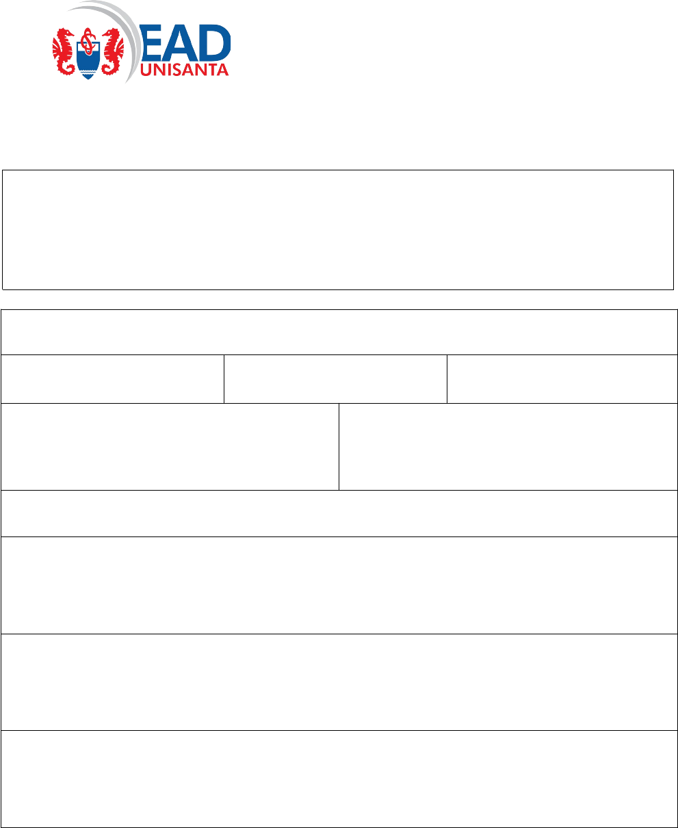 UNIVERSIDADE SANTA CECÍLIA Curso de Bacharelado em Biblioteconomia UNIVERSIDADE SANTA CECÍLIA Curso de Bacharelado em Biblioteconomia RELATÓRIO DE ESTUDOS CIENTÍFICO-CULTURAIS Atenção! O seu relatório precisa conter de 1800 a 2200 caracteres com espaços ou do contrário haverá desconto de nota. Relatório em menos de 1500 caracteres ou sem certificado/declaração da atividade será invalidado. Aluno: RA: Curso: Semestre: Atividade (curso, palestra, voluntariado, etc.): Carga Horária: Título da atividade: Nome do professor da atividade (ou instituição onde realizou): Objetivo (por que realizou/escolheu esta atividade?): Materiais (utilizou algum material, apostila ou recurso?): RELATÓRIO DE ESTUDOS CIENTÍFICO-CULTURAIS Como a atividade contribuiu para a sua formação acadêmica, profissional e/ou humana? (Quais eram as suas expectativas com essa atividade? Foram atendidas? Como você pode aplicar os conhecimentos adquiridos em sua prática? Quais os pontos positivos e negativos? Recomendaria esta atividade para outros estudantes?): Anexos: (Insira aqui fotos da atividade realizada, se houver): EaD UNISANTA Rua Cesário Mota, 08 - Bloco F, Sala F12 – Boqueirão – Santos/SP – CEP 11045-040 – Tel. (13) 3202-7159 EaD UNISANTA Rua Cesário Mota, 08 - Bloco F, Sala F12 – Boqueirão – Santos/SP – CEP 11045-040 – Tel. (13) 3202-7159