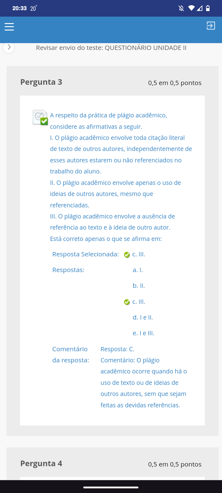 Dentre as condutas antiéticas na pesquisa está o plágio. Sobre ele é correto afirmar: Assinale a alternativa correta: Questão 2Resposta a. É a ...
