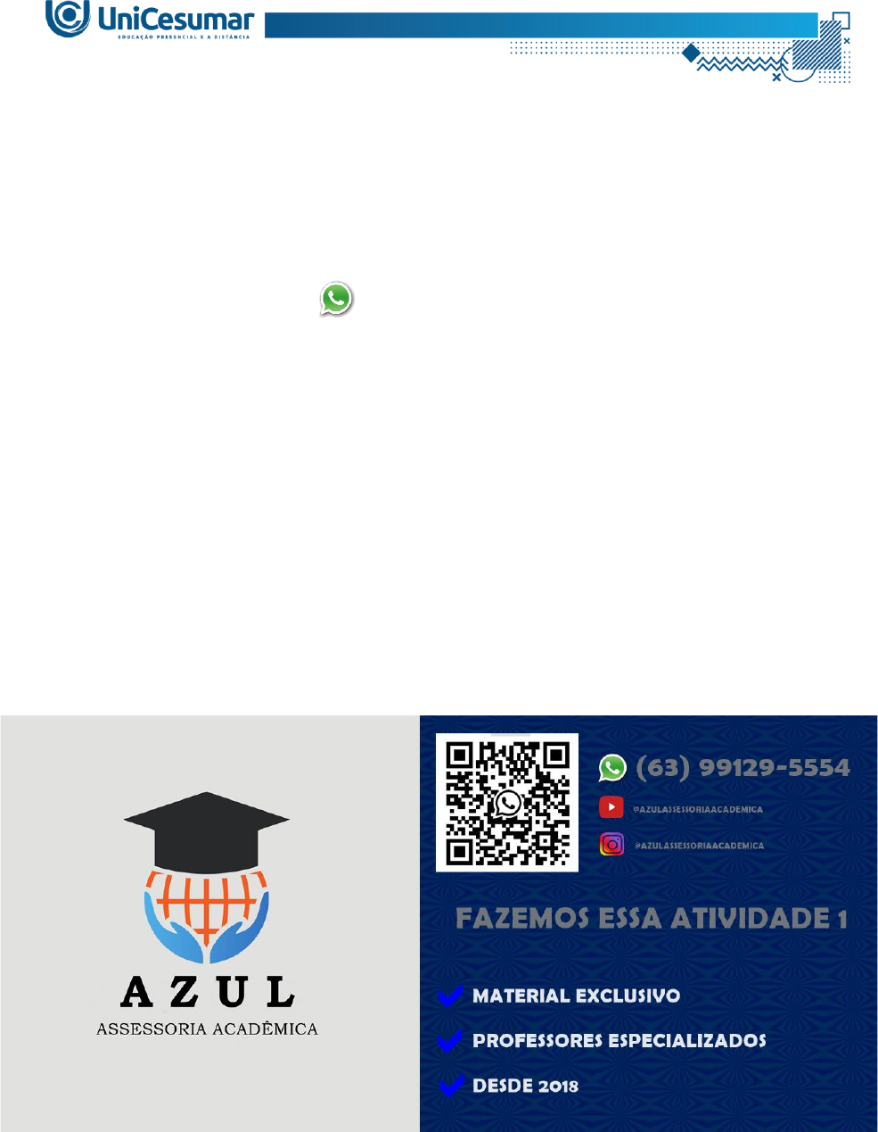 Olá, aluno(a)! Está com dificuldade ou sem tempo para elaborar essa atividade? Iremos te ajudar! Entre em contato (63) 99129-5554 ATIVIDADE 1 – LOG – EMPREENDEDORISMO - 51/2024 Muitos estudos já realizados, apontam que o Brasil possui uma das maiores culturas empreendedoras do mundo. Ou seja, temos uma grande capacidade de nos reinventarmos e buscamos fazer a diferença aonde estivermos. Isso se aplica para quem quer abrir seu próprio negócio e também para quem deseja construir carreira dentro de uma empresa. Fazendo um recorte específico para esse tipo de empreendedor que se destaca dentro da organização onde ele trabalha, Hisrish e Peters (2004) consideram que esse perfil também é conhecido como empreendedor corporativo ou também, um intraempreendedor MIYATAKE, Anderson Katsumi. MAZZEI, Bianca Burdini; PARDO, Paulo. Empreendedorismo. Maringá-Pr: 2015. Reimpresso em 2019 Com base no seu estudo até o momento sobre os diferentes tipos de empreendedorismo, descreva com suas palavras, quais são as principais características de uma pessoa considerada como Intraempreendedora. Complemente a sua resposta compartilhando uma experiência que você já viveu, onde identificou características do comportamento intraempreendedor. Caso não tenha uma experiência própria, compartilhe a experiência que observou ou relatos de pessoas próximas a você