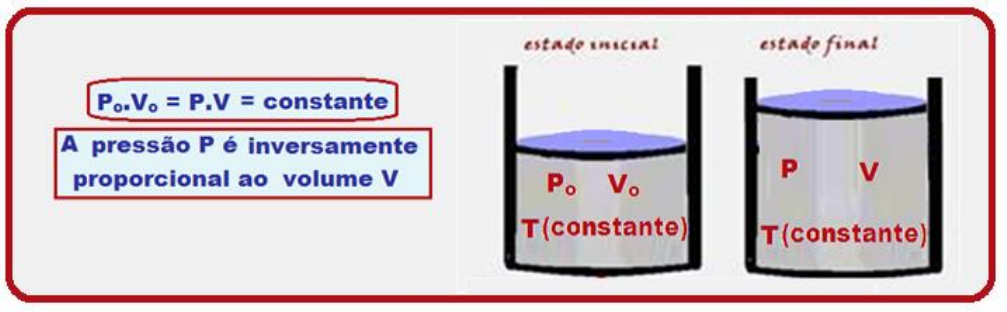 Tipos de transformações gasosas Tipos de transformações gasosas O estado de qualquer gás é caracterizado pelos valores de três grandezas que são o volume (V), a pressão (P) e a temperatura (T). São muito comuns as transformações em que ocorrem duas das variáveis de estado, mantendo-se uma constante. Pode-se ter, então: Transformação isotérmica Nela, durante todo o processo termodinâmico de um gás ideal, a temperatura permanece constante (isso=igual; thermos = temperatura). O cientista Robert Boyle comprovou que, quando a temperatura é constante, a pressão (P) exercida por certa massa gasosa é inversamente proporcional ao volume (V) por ela ocupado, ou P.V = constante, ou ainda, Po.Vo = P.V. Po e Vo representam a pressão e o volume num estado de equilíbrio inicial. P e V representam a pressão e o volume num estado de equilíbrio final. Isotermas Sendo P.V = constante = k P = e, se V tende a zero, P cresce indefinidamente e se V cresce indefinidamente P tende a zero. Se você representar graficamente P x V você obterá uma curva de nome isoterma q ue é um ramo de uma hipérbole eqüilátera. Cada ponto da curva (isoterma) A tem a mesma temperatura (TA); cada ponto da curva (isoterma) B tem a mesma temperatura (TB) e cada ponto da curva (isoterma) C tem a mesma temperatura (TC). Observe que TC > TB > TA, pois o produto PAVA > PBVB > PCVC e, assim quanto mais afastada dos eixos maior será o valor da temperatura da hipérbole representativa. Transformação isocórica, isométrica ou isovolumétrica Nessa transformação o volume é mantido constante (isso=igual; coros=volume). Os físicos Jacques Charles e Gay-Lussac descobriram experimentalmente que, numa transformação isocórica, a pressão (P) é diretamente proporcional à temperatura absoluta (T), ou seja: A expressão acima só é válida se considerarmos a temperatura absoluta, isto é, na escala kelvin. Se a temperatura for medida em graus Celsius, isso não se aplica. Na expressão P /To = P/T, conhecida como lei de Charles, Po e To representam a pressão e a temperatura absoluta do gás no estado inicial: P e T representam, respectivamente, a pressão e a temperatura absoluta do gás no estado final. Observe o gráfico abaixo onde você vê representada a lei de Charles (transformação isovolumétrica) que representa a pressão (P) e a temperatura T, medida em graus kelvin (K) para 3 gases 1, 2 e 3. Como a temperatura de um gás perfeito diminui à medida que a pressão também diminui, então deveria existir uma temperatura muito baixa na qual a pressão seria nula, obtida pelo prolongamento dos gráficos acima onde as retas representativas de cada gás convergem para um único ponto: -273,15 o C = 0 K, no qual a pressão exercida pelos gases torna-se nula. Na realidade, esse fenômeno não acontece, pois é impossível se anular a pressão exercida por um gás, pois, com um resfriamento suficiente, todos eles se liquefazem ou se solidificam. Transformação isobárica Ocorre à pressão constante (isso=igual; baros=pressão). O físico Jacques Charles observou que, para uma certa massa de gás perfeito, mantida apressão constante, o volume é diretamente proporcional à temperatura absoluta,ou seja: A relação acima é denominada lei de Charles e Gay-Lussac para transformações isobáricas e cujo gráfico V x T stá representado abaixo: Diagrama de Clapeyron para transformações isobáricas Equação de Clapeyron As três leis anteriores mostram como um gás perfeito se comporta quando mantemos uma variável constante e variamos as outras duas. A equação de Clapeyron ou equação de um gás ideal corresponde a uma síntese dessas três leis, que relacionam entre si pressão, temperatura e volume. Numa transformação isotérmica, pressão e volume são inversamente proporcionais e em uma transformação isométrica, isocórica ou isovolumétrica, pressão e temperatura são diretamente proporcionais. Pelas informações acima você pode concluir que a pressão é diretamente proporcional à temperatura e inversamente proporcional ao volume. Acontece que o número de moléculas (número de mols) influencia na pressão exercida pelo gás, ou seja, a pressão também depende diretamente da massa do gás (número de moléculas nele contidas). Considerando esses resultados, Paul Emile Clapeyron estabeleceu uma relação entre as variáveis de estado com a seguinte expressão matemática: Equação geral dos gases perfeitos À equação acima se dá o nome de lei geral dos gases perfeitos e você deve utiliza-la quando houver variação de pressão, volume e temperatura simultaneamente, mantendo-se constante a massa. O que você deve saber, informações e dicas Transformação Isotérmica Isotermas Transformação isocórica, isométrica ou isovolumétrica Transformação Isobárica Equação de Clapeyron ou Equação de um gás ideal Nas lições iniciais de um curso de mergulho com equipamento autônomo – cilindro de ar comprimido – os alunos são instruídos a voltarem lentamente à superfície, sem prender sua respiração em hipótese alguma, a fim de permitir que ocorra a gradativa descompressão (diminuição da pressão). O aprisionamento do ar nos pulmões pode ser fatal para o mergulhador durante a subida, pois, nesse caso, a transformação sofrida pelo ar nos pulmões é isotérmica, com aumento do volume do ar. Como o volume do cilindro que contém o gás se dilata muito pouco com a temperatura, pode-se dizer que se trata de uma transformação gasosa isométrica ou isovolumétrica (volume constante). Como o carro fica exposto ao sol, a temperatura do gás aumenta e conseqüentemente a pressão exercida pelo gás também aumenta, pois P/T = constante e P é diretamente proporcional a T, cujo gráfico PXT está representado acima. Um balão de aniversário, cheio de gás Hélio, solta-se da mão de uma criança, subindo até grandes altitudes e, devido a redução da pressão, seu v