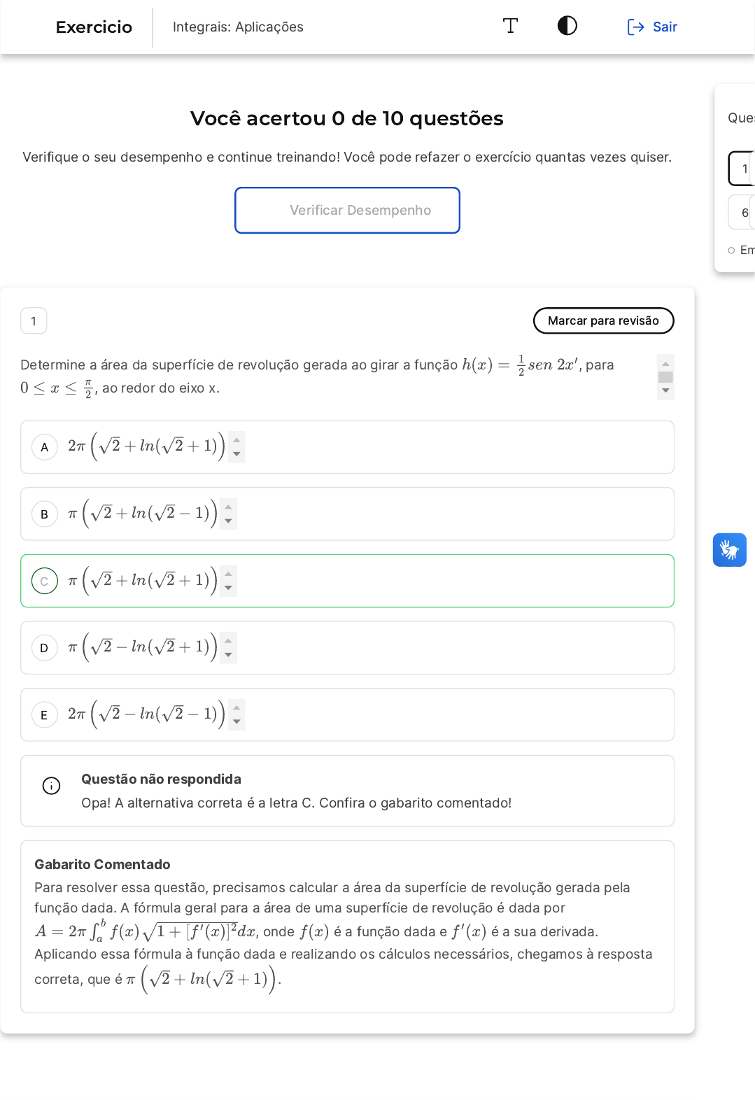 Verifique o seu desempenho e continue treinando! Você pode refazer o exercício quantas vezes quiser.