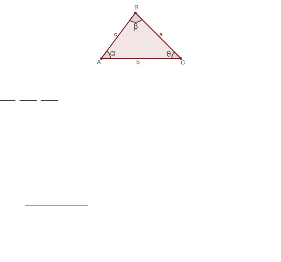 Num triângulo qualquer Lei dos Senos a = b = c senα senβ senθ Lei dos Cossenos a2 = b2 + c2 – 2·b·c·cosα b2 = a2 + c2 – 2·a·c·cosβ c2 = b2 + a2 – 2·b·a·cosθ Fórmula de Heron Área = Sendo: a, b e c = lados do triângulo p = semi-perímetro = Exercício: Em um levantamento topográfico, conforme o croqui apresentado abaixo, foram obtidos os seguintes valores: a) PQ = 200,00 m b) a partir do ponto P: BPA = 40º 58'; APQ = 38º 40' c) a partir do ponto Q: BQP = 29º 30'; AQP = 108º 20' Determinar o perímetro e a área do polígono ABPQ. Solução: Ângulo BPA = α = 40°58,0’ Ângulo APQ = β = 38°40,0’ Ângulo BQP = γ = 29°30,0’ Ângulo AQP = δ = 108°20,0’ φ = 180° - β – γ = 180° - 38°40,0’ - 29°30,0’ = 111°50,0’ σ = 180° - φ = 180° - 111°50,0’ = 68°10,0’ ε = 180° - α - σ = 180° - 40°58,0’ - 68°10,0’ = 70°52,0’ θ = δ - γ = 108°20,0’ - 29°30,0’ = 78°50,0’ ζ = 180° - σ - θ = 180° - 68°10,0’ - 78°50,0’ = 33°00,0’ Aplicando a Lei dos Senos no triângulo CPQ, temos que: = = sen 38°40,0’ x 200,00 = sen 111°50,0’ x CQ CQ = 134,61 m sen 29°30,0’ x 200,00 = sem 111°50,0’ x CP CP = 106,09 m Aplicando a Lei dos Senos no triângulo BCP, temos que: = = sen 40°58,0’ x 106,09 = sen 70°52,0’ x BC BC = 73,62 m sen 68°10,0’ x 106,09 = sem 70°52,0’ x BP BP = 104,24 m Aplicando a Lei dos Senos no triângulo ACQ, temos que: = = sen 78°50,0’ x 134,61 = sen 33°00,0’ x AC AC = 242,48 m sen 68°10,0’ x 134,61 = sen 33°00,0’ x AQ AQ = 229,43 m Aplicando a Lei dos Cossenos no triângulo ABC, temos que: AB² = BC² + AC² - 2 . BC . AC . cos φ AB² = 76,62² + 242,48² - 2 x 76,62 x 242,48 x cos 111°50,0’ AB² = 78.486,39 → AB = 280,15 m Perímetro do polígono ABPQ = AB + BP + PQ + AQ Perímetro do polígono ABPQ = 280,15 + 104,24 + 200,00 + 229,43 = 813,82 m Avaliação da Área – Heron Triângulo ABQ 2p = perímetro = AB + BQ + AQ = 280,15 + 208,23 + 229,43 = 717,81 m p = 358,91 m Área = Área = = 23.484,15 m² Triângulo BPQ 2p = perímetro = BP + PQ + BQ = 104,27 + 200,00 + 208,23 = 512,50 m p = 256,25 m Área = Área = = 10.256,46 m² Área do polígono ABPQ = 23.484,15 + 10.256,46 = 33.740,61 m² = 3,374 ha