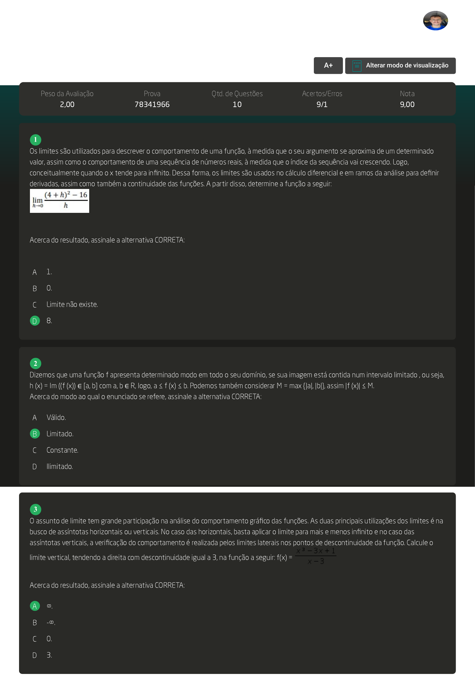 ( ) O limite da soma de funções é a potência dos limites dessas funções.