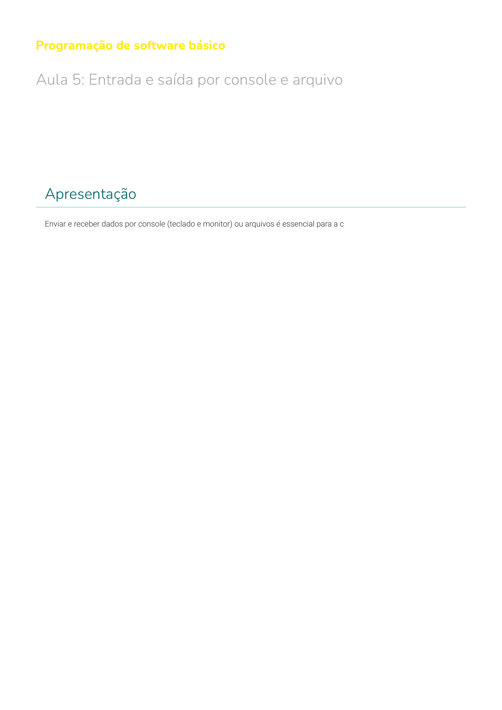 Nesta aula, abordaremos várias funções que permitirão utilizar diferentes modos de entrada e saída, um aprendizado