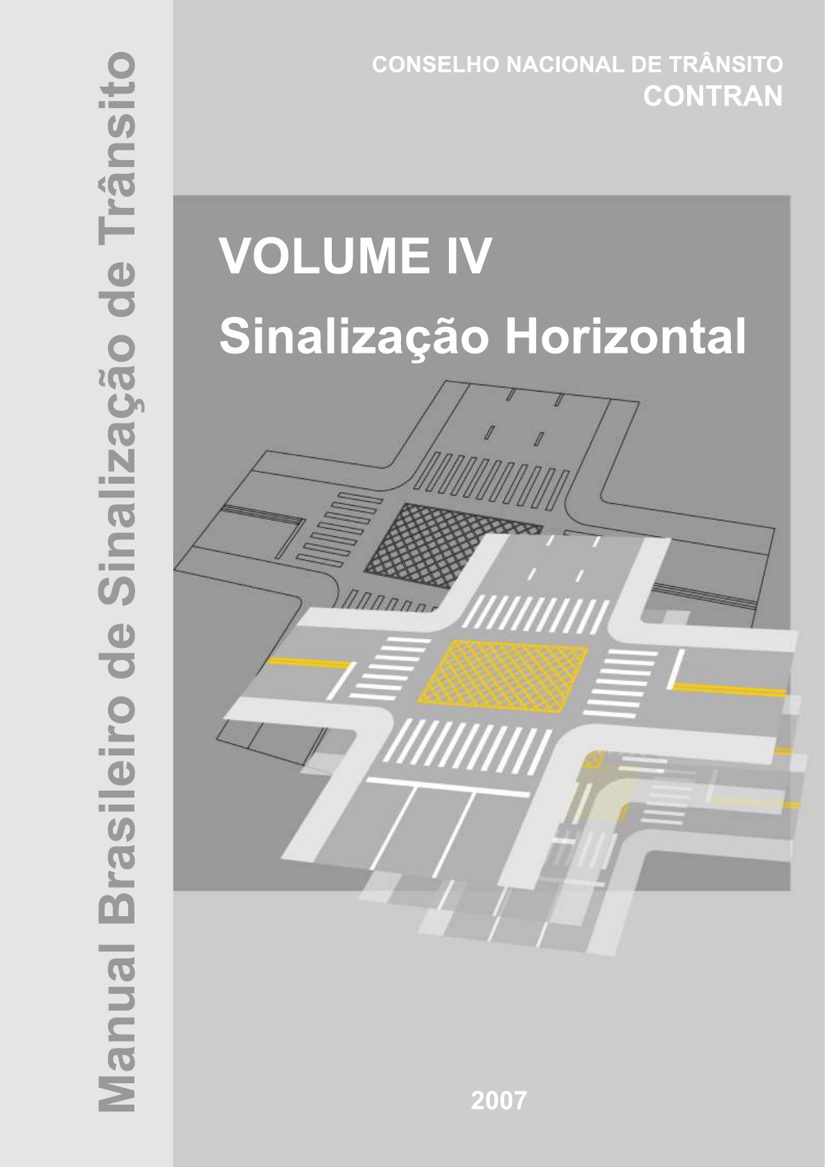Manual Brasileiro de Sinalização de Trânsito VOLUME IV Sinalização Horizontal CONSELHO NACIONAL DE TRÂNSITO CONTRAN 2007 Ministério das CidadesDENATRAN Conselho Nacional de Trânsito (Brasil) (CONTRAN). Sinalização horizontal / Contran-Denatran. 1ª edição – Brasília : Contran, 2007. 128 p. : il. (Manual Brasileiro de Sinalização de Trânsito ; 4) 1.Sinalização (Trânsito), legislação, Brasil 2.Trânsito, legislação, Brasil 3.Normas de trânsito, Brasil 4.Código de trânsito, Brasil I. Brasil. Departamento Nacional de Trânsito (DENATRAN) II. Título. C755s Copyright © 2007 – CONTRAN CDD 341.376 Presidente da República LUIZ INÁCIO LULA DA SILVA Ministro de Estado das Cidades MARCIO FORTES DE ALMEIDA Presidente do Conselho Nacional de Trânsito e Diretor do Departamento Nacional de Trânsito ALFREDO PERES DA SILVA Volume I – Sinalização Vertical de Regulamentação Volume II – Sinalização Vertical de Advertência Volume III – Sinalização Vertical de Indicação Volume IV – Sinalização Horizontal Volume V – Sinalização Semafórica Volume VI – Sinalização de Obras e Dispositivos Auxiliares MINISTÉRIO DAS CIDADES Ministro Marcio Fortes de Almeida CONSELHO NACIONAL DE TRÂNSITO MEMBROS DO CONTRAN Presidente Alfredo Peres da Silva Ministério da Cidades Luiz Carlos Bertotto Elcione Diniz Macedo Ministério da Ciência e Tecnologia Luiz Antonio Rodrigues Elias José Antonio Silvério Ministério da Defesa João Paulo Syllos Rui Cesar da Silveira Ministério da Educação Rodrigo Lamego de Teixeira Soares Carlos Alberto Ribeiro de Xavier Ministério do Meio Ambiente Ruy de Góes Leite de Barros Carlos Alberto Ferreira dos Santos Ministério da Saúde Valter Chaves Costa Deborah Carvalho Malta Ministério dos Transportes Edson Dias Gonçalves Waldemar Fini Junior EQUIPE TÉCNICA Câmara Temática de Engenharia de Tráfego, de Sinalização e da Via Gestão 2006/2007 Coordenador Sebastião Ricardo C. Martins ARTESP/SP Membros Accioly Galvão Filho DETRAN/PR Adriana Ribeiro Nogueira DETRAN/SP Bruno Batista de B. Martins CNT Carlos Henrique Pires Leandro AMC – Fortaleza/CE Emerson Dias Gonçalves BCTtran – Balneário Camboriú/SC Flávio Augusto Gomes ANTT Flávio Salvador Simões ARTESP Gil Firmino Guedes ABCR Givaldo Medeiros da Silva DPRF Ítalo Marques Filizola DENATRAN José Jairo de Souza CONFEA Licinio da Silva Portugal ANPET Marcelino Augusto Santos Rosa DNIT Marcelo Perrupato E Silva NTC Marco Antônio Bandeira Menezes ANTT Maria Alice Prudêncio Jacques ANPET Maria Beatriz Berti da Costa CNT Maria Selma Freitas Schwab DER/MG Mauro Vincenzo Mazzamati DENATRAN Neuto Gonçalves dos Reis NTC Omar de Castro Ribeiro Júnior ITS Paschoal Tristan Vargas Sobrinho DER/SP Paula Luciene Candeira CET/ Santos Pérsio Walter Bortolloto ABETRANS Sayonara Lopes de Souza BHTRANS – Belo Horizonte/MG Convidados Nancy Reis Schneider CET/SP Rosângela Battistella URBS – Curitiba/PR Apoio/DENATRAN Ana Paula Santos da Silva André Gonçalves Florencio Antônia Lúcia Guedes da Silva Helder Domingos do Nascimento Juliana Lopes Nunes APOIO TÉCNICO – GRUPO DE TRABALHO Coordenador Paschoal Tristan Vargas Sobrinho DER/SP Adriana Ribeiro Nogueira DETRAN/SP Carlos Costa CET/SP Edson Ferreira Costa Junior DER/SP Eliane da Fonseca DER/SP Fernando Satto Nunes de Moraes DER/SP Flávio Augusto Gomes ANTT Hélcio Luiz Anselmo DER/SP José Adir Zen URBS – Curitiba/PR José Homero S. C. Bonfim DNIT José Jairo de Souza CONFEA José Renato Guimarães CET/SP Luis Henrique Stodicck DEINFRA/SC Luiz Felippe Daud ARTESP Marcelo Emerson Ferreira Santos BHTRANS – Belo Horizonte/MG Marcelo Perrupato E Silva NTC Maria Selma Freitas Scwhab DER/MG Marília Mallard DER/MG Nancy Reis Schneider CET/SP Omar de Castro Ribeiro Júnior ITS Paula Luciene Candeira CET – Santos/SP Pérsio Walter Bortolloto ABETRANS Roque Eduardo dos Santos DER/SP Rosângela Battistella URBS – Curitiba/PR Sayonara Lopes de Souza BHTRANS – Belo Horizonte/MG Silene Pereira de Menezes ARTESP Silvana Di Bella Santos CET/SP Valéria Maria Sestini DER/SP Vania Pianca Moreno CET/SP Walmir Zuccheratte DER/MG APRESENTAÇÃO DA 1ª EDIÇÃO O Manual Brasileiro de Sinalização de Trânsito – Volume IV foi elaborado em consonância com o Código de Trânsito Brasileiro (CTB) e com as diretrizes da Política Nacional de Trânsito. Trata-se de um documento técnico que visa à uniformização e padronização da Sinalização Horizontal, configurando-se como ferramenta de trabalho importante para os técnicos que trabalham nos órgãos ou entidades de trânsito em todas as esferas. Este manual foi desenvolvido pela Câmara Temática de Engenharia de Tráfego, da Sinalização e da Via (Gestão – 2006/2007), órgão de assessoramento ao Contran composto por técnicos e especialistas de trânsito de todo o Brasil, aos quais agradecemos a inestimável colaboração e empenho na elaboração deste manual. Salientamos ainda, os esforços das demais Câmaras Temáticas e dos membros do Contran no sentido de regulamentar os artigos do CTB, trabalho imprescindível para promover a segurança no trânsito, colaborando para a melhoria na qualidade de vida no País. Esperamos que tal publicação faça com que os projetistas que atuam no Sistema Nacional de Trânsito sejam levados a pensar em todos aqueles que convivem nas vias públicas, especialmente os pedestres, ciclistas, motociclistas e condutores, em áreas urbanas ou rurais, com uma visão mais solidária, objetivando reduzir o índice e a severidade dos acidentes no trânsito. ALFREDO PERES DA SILVA Presidente do Contran RESOLUÇÃO Nº 236, DE 11 DE MAIO DE 2007 Aprova o Volume IV – Sinalização Horizontal, do Manual Brasileiro de Sinalização de Trânsito. O CONSELHO NACIONAL DE TRÂNSITO – CONTRAN, usando da competência que lhe confere o art. 12, inciso VIII, da Lei nº 9.503, de 23 de setembro de 1997, que instituiu o Código de Trânsito Brasi