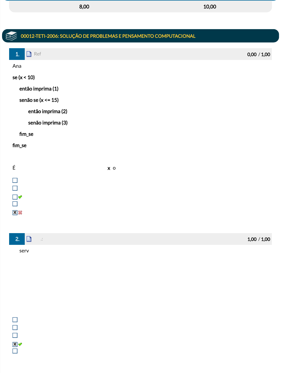 Avaliação: 8,00 pts Nota SIA: 10,00 pts