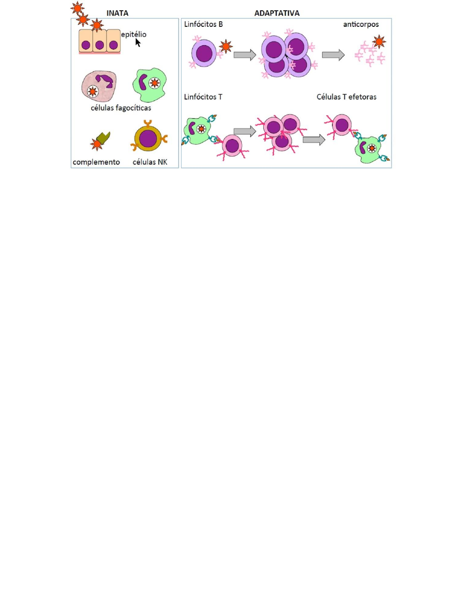 EXERCÍCIOS SOBRE SISTEMA IMUNOLÓGICO 1) Observe a figura Qual a diferença entre imunidade inata e adaptativa. ___________________________________________________________________ ___________________________________________________________________ ___________________________________________________________________ ___________________________________________________________________ ___________________________________________________________________ ___________________________________________________________________ 2) Quais as células do sistema imune responsáveis pela produção de anticorpos? A) Linfócitos B. B) Linfócitos T. C) Macrófagos. D) Eritrócitos. E) Segmentado 3- Assine (V) para verdadeiro e (F) para falso. Sobre o sistema imune: I- É um sistema complexo que envolve uma série de células e órgãos que funcionam, em conjunto, como uma grande barreira de proteção. II- Faz parte do sistema imune as células sanguíneas, leucócitos e plaquetas. Que a atuam na imunidade inata, caracteriza-se pela rápida resposta à agressão, independentemente de estímulo prévio, sendo a primeira linha de defesa do organismo. III- O sistema imune possui a função de garantir proteção ao nosso corpo, evitando que substâncias estranhas e patógenos afetem negativamente nossa saúde. IV- Se o organismo entrar em contato com qualquer agente infeccioso, ele desenvolverá linfócitos especiais, que são chamados de células da memória, capazes de reconhecer esse agente infeccioso. A) Somente a I e II B) Somente a I, III e IV C) Somente a II D) Todas estão corretas E) Todas estão erradas 4) Especificidade, diversidade de reconhecimento, memória, especialização de resposta, autolimitação e tolerância a componentes do próprio organismo são características de qual resposta imunológica? A) Resposta Inata. B) Resposta Imune. C) Resposta Primária. D) Resposta Adquirida. E) Resposta Estimulada.
