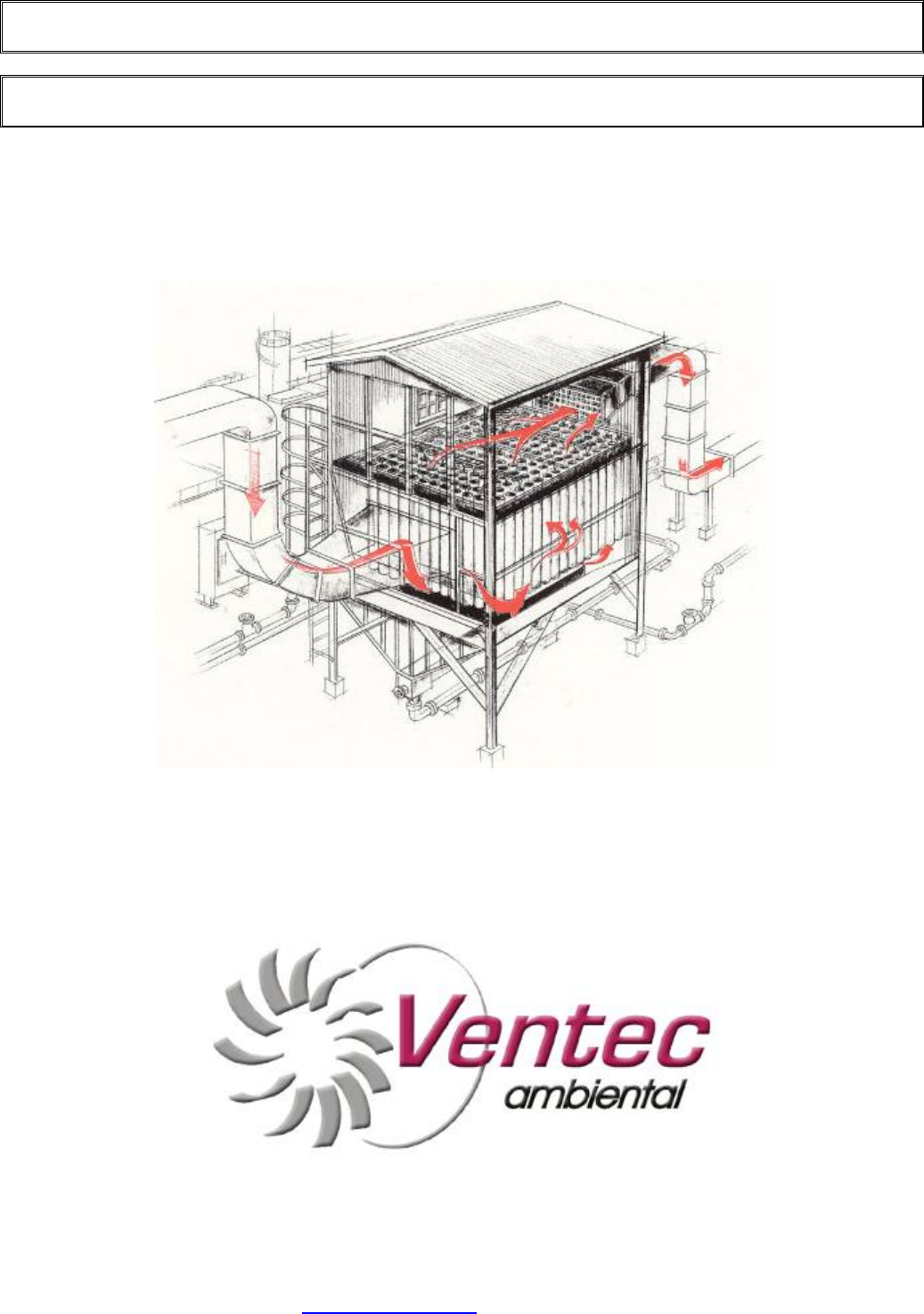 Manual Técnico de Instalação, Operação e Manutenção Filtro de Mangas VENTEC AMBIENTAL EQUIPAMENTOS E INSTALAÇÕES LTDA Rua André Adolfo Ferrari, nº 550 - Distrito Industrial Nova Era - Indaiatuba - São Paulo CEP: 13.347.395 - C.Postal: 2086 - Fone: (19) 3801-8800 / Fax: (19) 3935-6906 e-mail: ventec@ventec.com.br - site: www.ventec.com.br ISO 9001:2000 Filtro de Mangas Página: 2/14 Rev.: 03 – Data 25/11/2008 ISO 9001:2000 ÍNDICE 1 – INTRODUÇÃO ..................................................................................................................................................... 03 2 – CONCEITOS GERAIS ......................................................................................................................................... 03 3 – DESENHO DO EQUIPAMENTO 3.1 – Vista explodida do Filtro de Mangas .................................................................................................... 04 4 – DESCRIÇÃO DOS COMPONENTES 4.1 – Mangas Filtrantes ................................................................................................................................. 05 4.2 – Gaiolas .................................................................................................................................................. 05 4.3 – Venturis ................................................................................................................................................. 06 4.4 – Chapa Espelho ..................................................................................................................................... 06 4.5 – Solenóides ............................................................................................................................................ 06 4.6 – Válvulas de Diafragma .......................................................................................................................... 06 4.7 – Programador Seqüencial Eletrônico ..................................................................................................... 07 4.8 – Reservatório de Ar Comprimido ........................................................................................................... 07 4.09 – Tubos de Sopragem ........................................................................................................................... 07 4.10 – Moega ................................................................................................................................................. 07 5 – MONTAGEM 5.1 – Instalação das Mangas/Gaiolas............................................................................................................ 08 5.2 – Montagem do Sistema de Ar Comprimido ............................................................................................ 09 5.3 – Montagem/Programação do Programador Seqüencial Eletrônico ....................................................... 10 5.4 – Montagem da Vedação ......................................................................................................................... 10 6 – OPERAÇÃO 6.1 – Parte Interna da Carcaça ...................................................................................................................... 11 6.2 – Parte Interna do Plenum de Ar Comprimido ......................................................................................... 11 6.3 – Sistema de Limpeza das Mangas ........................................................................................................ 11 6.3 – Parte externa do Filtro ......................................................................................................................... 11 6.5 – Partida do Filtro de Mangas .................................................................................................................. 11 6.6 – Regulagem do Filtro de Mangas .......................................................................................................... 12 6.7 – Instruções para Parada do Filtro de Mangas ...................................................................................... 12 6.8 – Precauções ........................................................................................................................................... 12 7 – MANUTENÇÃO 7.1 – Carcaça ................................................................................................................................................. 13 7.3 – Mangas Filtrantes ................................................................................................................................. 13 7.4 – Guia para Resolução de Problemas ..................................................................................................... 13 7.4.1 - Alta Perda de Carga .............................................................................................................. 13 7.4.2 - Baixa Perda de Carga ........................................................................................................... 13 7.4.3 - Emissão de Pó visível na saída do Filtro de Mangas ............................................................ 14 7.4.4 - Emissão de Pó na saída do Filtro, após o pulso de limpeza do ar comprimido .................... 14 7.4.5 – Programador Seqüencial Eletrônico não funciona ............................................................... 14 7.4.6 - Queima com fusível do seqüenciador ou desarme do disjuntor quando ligado .................... 14 7.5 – Lista de Sobressalentes para 02 Anos de Operação ........................................................................... 14 Filtro de Mangas Página: 3/14 Rev.: 03 – Data 25/11/2008 ISO 9001:2000 1 – INTRODUÇÃO As recomendações constantes neste manual foram preparadas com base nos dados do projeto em questão e conhecimentos expe