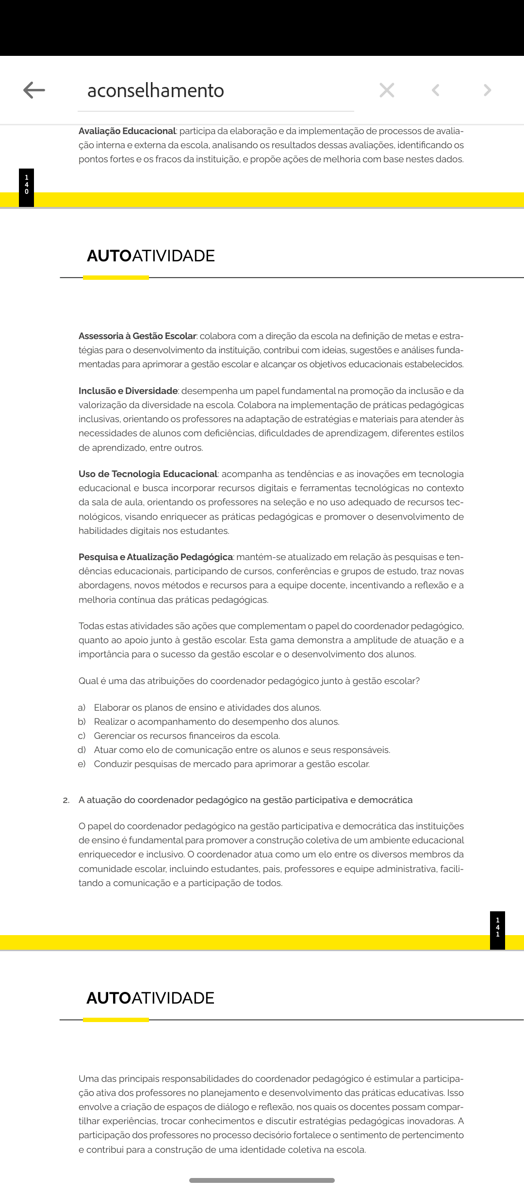 a) Elaborar os planos de ensino e atividades dos b) Realizar o acompanhamento do desempenho dos alunos. c) Gerenciar os recursos financeiros da escola. d) Atuar como elo de comunicação entre os alunos e seus responsáveis. e) Conduzir pesquisas de mercado para aprimorar a gestão escolar.