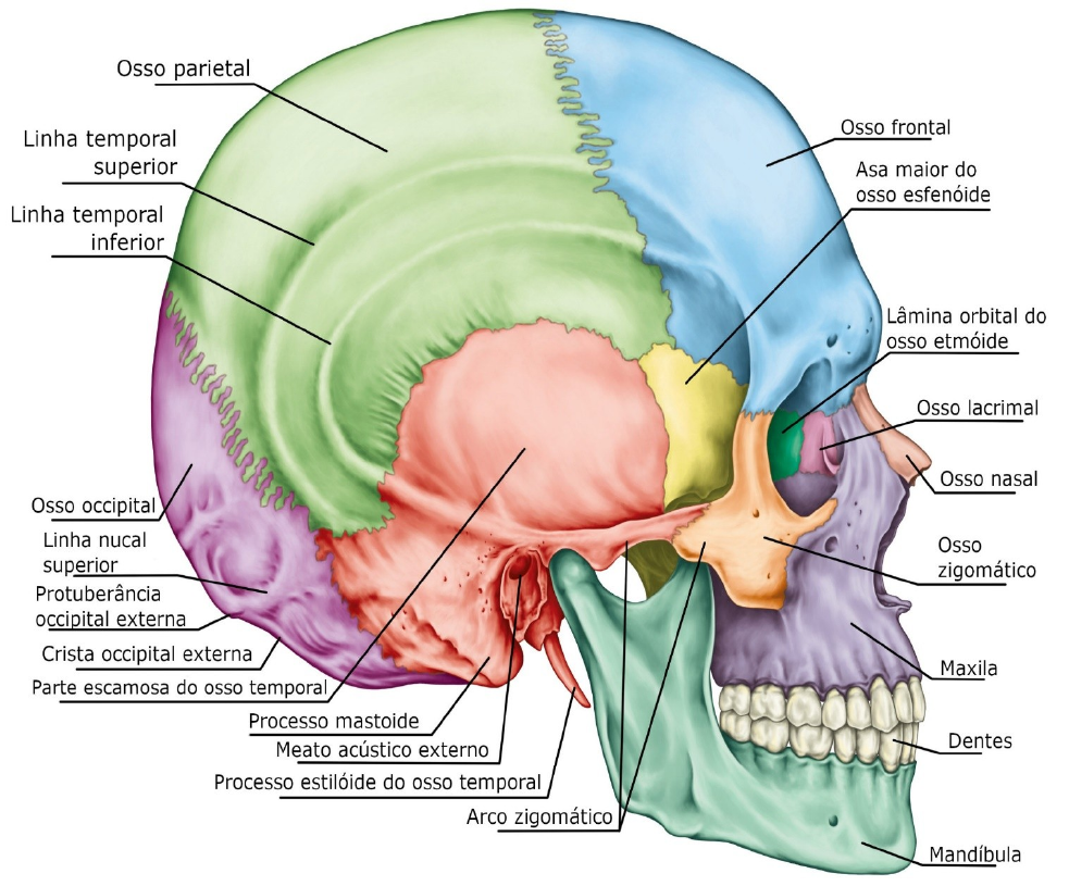 Ossos do crânio: Osso palatino É um osso par, constituído por duas lâminas que se conjugam num ângulo reto e a mais pequena das lâminas é inferior. Nesta lâmina o bordo articular mais espesso é interno e o bordo não articular é côncavo e posterior. Conexões: O palatino articula-se com o outro osso palatino, também com o maxilar superior, com o osso esfenóide, com o osso etmóide, com o corneto inferior e com o vómer. Pescoço: - osso hioide: localizado na porção anterior do pescoço. não se articula diretamente com outros ossos, e está conectado aos ossos vizinhos através de anexos musculares e ligamentares. Os músculos que se inserem na face superior desse osso são conhecidos como músculos supra-hióideos, enquanto aqueles que se inserem em sua face inferior são os músculos infra-hióideos. Vertebras cervicais - A cervical é a parte da coluna vertebral que ocupa a região do pescoço e se estende até a região do tórax. - Esta região é composta por 7 vértebras, sendo a primeira o atlas, a segunda o áxis e as demais C3 a C7 (esta última chamada também de proeminente). As vértebras cervicais tem como características: Faces articulares superiores e inferiores orientadas transversalmente (permitindo uma maior amplitude em movimentos de rotação); · Forames transversários; · Processo espinhoso bífido; · Corpo vertebral pequeno. Atlas · primeira vértebra cervical e recebe esse nome por sustentar. · não possui corpo vertebral. · Funciona como um apoio ao crânio, é a vértebra responsável por ser articular com o áxis e permitir os amplos movimentos que possuímos entre a cabeça e a coluna vertebral. Áxis - segunda vértebra cervical e tem esse nome por formar um eixo de rotação para a cabeça (crânio), através do atlas, ao redor do seu dente. - Sua característica mais marcante é o seu dente, que a distingue facilmente das demais vértebras. -Graças a esse tipo de articulação podemos fazer o movimento de rotação da cabeça. --vértebras atípicas (alotróficas: caracterizadas por apresentarem alterações do desenvolvimento) · São elas: atlas (C1), áxis (C2), e a sétima proeminente (C7). · Para a vértebra C7 o forame transverso poder estar presente ou não. --As vértebras típicas (isólogas e heterólogas: assemelham-se às vértebras esquemáticas) ou verdadeiras, são vértebras independentes, contém componentes estruturais que são comuns a todas as vértebras. · Todas as vértebras, de todas as regiões (exceto Atlas) possuem as seguintes estruturas: --Corpo da vértebra; ---Pedículo; --Lâmina; ----Processo transverso; ---Processo espinhoso; ---Facetas articulares superiores e inferiores; E forame vertebral. Ossos da cintura pélvica Ossos do pé Ossos do ouvido Ossos longos: Ex; clavícula, o úmero , a ulna, o rádio, os ossos metacarpais e metatarsais, as falanges, o fêmur, a fíbula , a tíbia Todo osso longo é formado por duas extremidades denominadas epífises e por uma porção central denominada diáfise ou corpo do osso. Ossos largos,plano ou laminar: Esse grupo é formado por: ossos do crânio, costelas, esterno, escápula. principal função : proteger os órgãos internos, como o cérebro, o coração e os órgãos pélvicos. Além disso, devido às suas formas planas, esses ossos fornecem grandes áreas para inserções musculares. Ossos curtos: O escafoide, O semilunar, O calcâneo, O tálus, O navicular Nesse tipo ósseo, uma fina camada externa de osso compacto cobre o osso trabecular e a medula óssea, criando uma forma que é mais ou menos cuboide. A principal função dos ossos curtos é fornecer estabilidade e algum grau de movimento. Ossos irregulares: exemplos : os ossos da coluna vertebral (vértebras) os ossos da pelve (ílio, ísquio e púbis) Nesse tipo ósseo, uma fina camada de osso compacto recobre uma massa constituída principalmente de osso esponjoso. A forma complexa desses ossos os permitem proteger estruturas internas. Por exemplo, os ossos irregulares da pelve protegem os órgãos dessa cavidade. Ossos sesamóides: são incorporados a tendões. Geralmente são pequenos e possuem formato oval. Exemplos: a patela no joelho, e o osso pisiforme do carpo. A principal função dos ossos sesamoides é proteger os tendões de estresse e desgaste excessivos, ao reduzirem o atrito no local. Ossos pneumáticos: apresentam características distintas dos demais grupos e, por isso, são classificados de maneira específica. Eles apresentam cavidades, chamadas de seios, e são revestidos de mucosas cheias de ar. Exemplos: Ossos que fazem parte do crânio, como maxilar e temporal. Vertebras : C1- atlas não vai ter corpo vertebral C2- áxis vai ter o processo odontoide C7-processo espinhoso longo e horizontal Diferença entre as vértebras: Cervical - menores , possuem forames transversais Torácica-medianas , não tem forames transversais , tem processo transveso Lombares - grande corpo vertebral Esqueleto axial: crânio, caixa toráxica e coluna vertebral Esqueleto apendicular: membros inferiores e superiores Ossos da mão: Caixa torácica: Menbros superiores: Membros inferiores: Articulações: --- são as uniões entre dois ou mais ossos ou partes rígidas do esqueleto e elas apresentam formas e funções distintas, sendo classificadas por essas duas características. ----- classificação funcional: considera a possibilidade de movimentos que a articulação pode realizar e é dividida em três tipos: · Sinartrose - é uma articulação imóvel, ou seja, não permite movimentos.(ex: Articulações fibrosas) · Anfiartrose, que é uma articulação ligeiramente móvel.( ex: articulações cartilaginosas) · Diartrose - é uma articulação móvel.(ex: articulações sinoviais) ----- classificação morfológica - considera o tecido que compõe a articulação e é dividida, também, em três classes: · Fibrosa- composta por fibras colágenas. · Cartilaginosas- composta por cartilagens. 