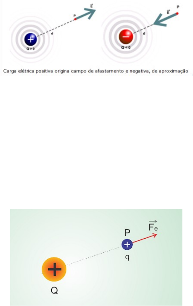 Os Fundamentos das Grandezas Elétricas A necessidade do ser humano de compreender o ambiente que o cerca e explicar os fenômenos naturais é a gênese da Física. Campo Elétrico (I) 1. Recordando o conceito de campo elétrico Uma carga elétrica puntiforme Q fixa, por exemplo positiva, (ou uma distribuição de cargas elétricas fixas) modifica a região do espaço que a envolve. Dizemos que a carga elétrica Q (ou a distribuição de cargas) origina, ao seu redor, um campo elétrico. Uma carga elétrica puntiforme q colocada num ponto P dessa região fica sob ação de uma força elétrica Fe. Esta força se deve à interação entre o campo elétrico e a carga elétrica q. A cada ponto P do campo elétrico, para medir a ação da carga Q ou das cargas que criam o campo, associa-se uma grandeza vetorial E denominada vetor campo elétrico. A força elétrica que age na carga elétrica q colocada em P é dada pelo produto do valor da carga q pelo vetor campo elétrico E associado ao ponto P. Se q>0, Fe tem o mesmo sentido de E. Se q<0, Fe tem sentido oposto ao de E. Fe e E têm sempre a mesma direção. No SI a unidade da intensidade de E (E = F/IqI) é newton/coulomb (N/C). Animação: Campo elétrico/Ação do campo Clique aqui 2. Características do vetor campo elétrico gerado por uma carga elétrica puntiforme Q fixa No campo elétrico de uma carga elétrica puntiforme fixa Q, o vetor campo elétrico num ponto P, situado a uma distância d da carga, tem intensidade E que depende do meio onde a carga se encontra, é diretamente proporcional ao valor absoluto da carga e inversamente proporcional ao quadrado da distância do ponto à carga. Considerando o meio o vácuo, temos: Se Q for positivo o vetor campo elétrico é de afastamento. Se Q for negativo, o vetor campo elétrico é de aproximação: 3. Campo elétrico gerado por várias cargas elétricas puntiformes No caso do campo gerado por duas ou mais cargas elétricas puntiformes, cada uma originará, num ponto P, um vetor campo elétrico. O vetor campo resultante será obtido por meio da adição vetorial dos diversos vetores campos individuais no ponto P. Observação: todas as considerações feitas são válidas para um campo elétrico no qual em cada ponto o vetor campo elétrico não varia com o tempo. É o chamado campo eletrostático. Animação: Campo elétrico resultante Clique aqui Exercícios básicos Exercício 1: Em um ponto P de um campo elétrico o vetor campo elétrico tem direção horizontal, sentido da esquerda para a direita e intensidade 4.105 N/C. Determine a direção, o sentido e a intensidade da força elétrica que age numa carga elétrica puntiforme q, colocada no ponto P. Considere os casos: a) q = +3 µC b) q = - 3 µC Resolução: clique aqui Exercício 2: Uma partícula de massa m e eletrizada com carga elétrica q é colocada num ponto P de um campo elétrico, onde o vetor campo elétrico E tem direção vertical, sentido de cima para baixo e intensidade E. Observa-se que a partícula fica em equilíbrio sob ação da força elétrica e do seu peso. Sendo g a aceleração da gravidade, qual a alternativa que fornece o valor de q? a) q = m.g.E b) q = E/m.g c) q = m.g/E d) q = -m.g/E e) q = -m.g.E Resolução: clique aqui Exercício 3: Seja E o vetor campo elétrico em P, gerado por uma carga elétrica Q e Fe a força eletrostática que age numa carga elétrica q colocada em P. Quais os sinais de Q e q nos casos indicados abaixo? Resolução: clique aqui Exercício 4: O vetor campo elétrico no ponto A, do campo elétrico gerado por uma carga elétrica puntiforme Q, tem intensidade 104 N/C. a) Qual é o sinal de Q? b) Qual é a intensidade do vetor campo elétrico no ponto B? Resolução: clique aqui Exercício 5: Determine a intensidade do vetor campo elétrico resultante no ponto P, nos casos indicados abaixo. Considere Q = 3 µC; d = 0,3 m; k0 = 9. 109 N.m2/C2 x Resolução: clique aqui Exercícios de Revisão Revisão/Ex 1: (MACKENZIE) Sobre uma carga elétrica de 2,0.10-6 C, colocada em certo ponto do espaço, age uma força de intensidade 0,80 N. Despreze as ações gravitacionais. A intensidade do campo elétrico nesse ponto é: a) 1,6.10-6 N/C b) 1,3.10-5 N/C c) 2,0.103 N/C d) 1,6.105 N/C e) 4,0.105 N/C Resolução: clique aqui Revisão/Ex 2: (UEMA) O módulo do vetor campo elétrico produzido por uma carga elétrica Q em um ponto “P” é igual a “E”. Dobrando-se a distância entre a carga e o ponto “P”, por meio do afastamento da carga e dobrando-se também o valor da carga, o módulo do vetor campo elétrico, nesse ponto, muda para: a) 8E b) E/4 c) 2E d) 4E e) E/2 Resolução: clique aqui Revisão/Ex 3: (Fatec-SP) Duas cargas elétricas, q1 = -4 µC e q2 = 4 µC são fixas nos vértices A e B de um triângulo equilátero ABC de lados 20 cm. Sendo a constante eletrostática do meio k = 9.109 N.m2/C2, o módulo do vetor campo elétrico gerado pelas duas cargas no vértice C vale, em N/C: a) 1,8.106 b) 9,0.105 c) 4,5.105 d) 9,0.104 e) zero04 Resolução: clique aqui Revisão/Ex 4: (FUVEST) O campo elétrico de uma carga puntiorme em repouso tem, nos pontos A e B, as direções e sentidos indicados pelas flechas na figura abaixo. O módulo do campo elétrico no ponto B vale 24 V/m. O módulo do campo elétrico no ponto P da figura vale, em volt/metro, a) 3 b) 4 c) 3√2 d) 6 e) 12 Resolução: clique aqui Revisão/Ex 5: (IJSO) No campo elétrico gerado por uma carga elétrica puntiforme Q, situada num ponto O, considere os pontos A e B, tal que O, A e B pertençam ao mesmo plano vertical. Em A o vetor campo elétrico EA tem direção horizontal e intensidade EA = 8,0.105 N/C. Uma partícula de massa m = 2,0.10-3 kg e carga elétrica q é colocada em B e fica em equilíbrio sob ação de seu peso e da força elétrica exercida por Q. Sendo g = 10 m/s2, pode-se afirmar que a carga q é igual a: a) 1,0.10-7 C b) -1,0.10-7 C c) 2,0.10-7 C d) -2,0.10-7 C e) 4,0.10-7 C image4.png image5