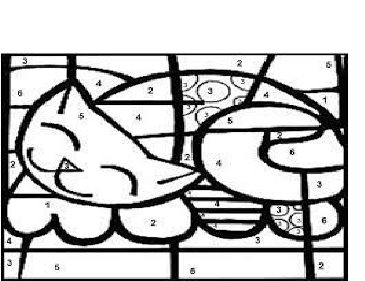 COLORA OS ESPAÇOS NUMERADOS COM AS CORES INDICADAS ABAIXO:4 – COR SECUNDÁRIA: AZUL + AMARELO 5 - COR PRIMÁRIA. DICA (SOL) 6 - COR SECUNDÁRIA: AZUL + VERMELHO 1 – COR PRIMÁRIA. DICA (CÉU) 2 – COR SECUNDÁRIA: AZUL + AMARELO 3 – COR PRIMÁRIA: DICA (AMOR) TITULO DA OBRA ORIGINAL: GATO ARTISTA: ROMERO BRITO image1.jpeg