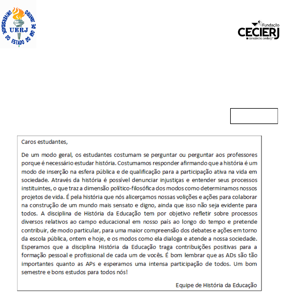 UNIVERSIDADE DO ESTADO DO RIO DE JANEIROlogo-cecierj-cederjPB.jpgLogotipo Descrição gerada automaticamente CENTRO DE EDUCAÇÃO E HUMANIDADES FACULDADE DE EDUCAÇÃO Curso de Licenciatura em Pedagogia – modalidade EAD Disciplina: História da Educação Coordenador: Maria de Lourdes da Silva Nome: Pérola Ferreira de Lima Polo: Nota = Teresópolis AD1 História da Educação 2024.1 Questão 1: Descreva a proposta pedagógico-didática dos missionários jesuítas, com especial atenção às diferenças entre a educação dos pobres e dos índios e a educação das elites coloniais. (1,0 p.) A proposta pedagógico-didática dos missionários jesuítas durante o período colonial na América Latina foi marcada por uma abordagem que visava não apenas a catequese, mas também a educação formal das populações locais, incluindo tanto os índios quanto os colonos e seus descendentes. No entanto, havia diferenças significativas na forma como essa educação era conduzida, dependendo do grupo social e étnico em questão. Para os índios, os jesuítas desenvolveram um método educacional conhecido como "educação reducional". Este sistema tinha como objetivo principal converter os índios ao cristianismo, ao mesmo tempo em que lhes proporcionava educação básica em língua, matemática e ofícios práticos. Os missionários acreditavam que, ao incorporar os nativos à cultura europeia, estariam promovendo sua "civilização". No entanto, essa educação estava intimamente ligada à ideia de submissão e controle dos povos nativos, muitas vezes resultando na perda de suas próprias tradições e identidade cultural. Por outro lado, a educação oferecida às elites coloniais seguia um modelo mais próximo do europeu, com foco em estudos humanistas, retórica, filosofia e teologia. Essa educação, ministrada em escolas e universidades dirigidas pelos jesuítas, visava formar líderes e administradores para a sociedade colonial, perpetuando assim a estrutura de poder estabelecida. As elites coloniais tinham acesso a um ensino mais avançado e refinado, voltado para prepará-las para assumir posições de destaque na administração civil e religiosa. Essas diferenças refletiam não apenas as demandas e expectativas sociais de cada grupo, mas também os interesses e objetivos específicos dos colonizadores. Enquanto a educação dos índios visava principalmente à sua conversão e submissão, a educação das elites coloniais era voltada para a manutenção e reprodução do sistema de dominação colonial. Fontes: Boxer, C. R. (1962). The Portuguese Seaborne Empire, 1415-1825. Hutchinson. Bethell, L. (Ed.). (1984). The Cambridge History of Latin America: Volume 1, Colonial Latin America. Cambridge University Press. “Nunca fomos catequizados. Fizemos foi Carnaval”. Em seu “Manifesto antropófago”, do qual foi retirado esse trecho, Oswald de Andrade defende que reprocessemos criticamente o legado cultural europeu, sem nos submetermos. Cite as práticas e táticas que as comunidades indígenas e quilombolas vêm desenvolvendo para questionar o pensamento colonial que ressoa no espaço-tempo das escolas, conforme a aula 2. (1,0 p.) As comunidades indígenas e quilombolas têm desenvolvido uma série de práticas e táticas para questionar o pensamento colonial que persiste no espaço-tempo das escolas. Algumas dessas estratégias incluem: Resgate e valorização das tradições e saberes ancestrais: Muitas comunidades têm buscado resgatar e valorizar suas línguas, costumes, práticas agrícolas, medicina tradicional e outras formas de conhecimento que foram suprimidas ou marginalizadas durante o período colonial. Isso é feito através de projetos de revitalização cultural, festivais, oficinas e ensino nas próprias comunidades. Educação intercultural e bilíngue: Muitas escolas indígenas e quilombolas têm adotado abordagens pedagógicas que integram os conhecimentos tradicionais com o currículo escolar formal. Isso inclui o ensino da língua materna e o reconhecimento da pluralidade de saberes como parte do processo educacional. Resistência à imposição de currículos e práticas eurocêntricas: As comunidades têm lutado contra a imposição de currículos e práticas educacionais que reproduzem estereótipos e visões eurocêntricas da história, cultura e sociedade. Isso pode envolver protestos, ocupações de escolas, campanhas de conscientização e pressão política por políticas educacionais mais inclusivas e respeitosas. Fortalecimento da autonomia e autodeterminação educacional: As comunidades têm buscado cada vez mais o controle sobre seus próprios sistemas educacionais, através da criação de escolas autônomas, conselhos escolares comunitários e parcerias com instituições de ensino superior e organizações da sociedade civil que compartilham de seus valores e objetivos. Essas práticas e táticas refletem uma resistência ativa e criativa contra o legado colonial na educação, buscando afirmar e fortalecer as identidades culturais e os direitos das comunidades indígenas e quilombolas. Ao rejeitarem a passividade e o assimilacionismo, essas comunidades estão construindo caminhos alternativos e mais justos para a educação em seus contextos específicos. Fonte: Aula 2 do curso "Educação para as Relações Étnico-Raciais" Questão 2: A expulsão dos jesuítas pelo Marquês de Pombal abriu caminho para o projeto educacional pombalino. O ensino organizado por Pombal, entre 1759 e 1822, teve seus fundamentos, ambições e também limites, ou seja, as distâncias entre as formulações legais e as reformas, na prática, conforme os textos “A escolarização no Brasil: cultura e história da educação”, da aula 1, e o texto “A construção da escola pública no Rio de Janeiro imperial”, da aula 3. Com base nisso, marque V para as sentenças verdadeiras e F para as falsas e justifique as falsas. (4,0 p.) 1. ( F ) A expulsão dos jesuít