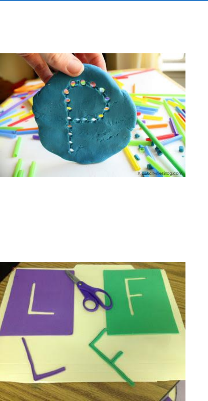 Atividades motoras para aprender a escrever as letras Ao ensinar uma criança processo de aprender a escrever as letras do alfabeto,você deve começar com as atividades motoras. Aqui estão algumas sugestões para atividades motoras para iniciar o processo da escrita - Escrever letras no creme de barbear - formar as letras através de colagem pedaços papel crepom em forma de bolinhas,cola colorida,cola com açúcar colorido ou areia colorida. - placas táteis para traçar as letras com o dedo. - moldes vazados de letra para colorir dentro - Formar letras de massinha http://johannaterapeutaocupacional.blogspot.com.br/2012/11/atividades-motoras-para-aprender.html http://1.bp.blogspot.com/-GGms6HCeTWE/UKkNqILI4kI/AAAAAAAAHwU/WZ--gxcPi9U/s1600/IMG_3851-001.jpg http://1.bp.blogspot.com/-hy_SlDDV660/UKkO8fzq_GI/AAAAAAAAHwc/sHhEFuqlqiQ/s1600/letra.jpg - Formar letras blocos de construção A mão dominante deve ser estabelecida e preensão adequada do lápis (pegada do lápis)e a criança deve ser capaz de copiar os traços seguintes antes de começar a aprender a escreveras letras Rabisco - 1 a 2 anos 2 a 3 anos -imita traços vertical e horizontal 3 a 4 anos - Imita um círculo e uma cruz 4 a 5 anos - Cópias um quadrado,triângulo 5 a 6 anos - cópia de letras e números Atividades motoras para aprender a escrever as letras parte 2 Atividade inicial de coordenação motora fina tracejados com marca texto amarelo http://johannaterapeutaocupacional.blogspot.com.br/2012/11/atividades-motoras-para-aprender_22.html http://3.bp.blogspot.com/-0DRsHqY9e_Y/UKkSLaNp7hI/AAAAAAAAHww/rWpuXa5QB7k/s1600/Screen+shot+2011-03-16+at+9.30.09+PM.png http://3.bp.blogspot.com/-vXGYPIvs6k0/UK6e3PKjkHI/AAAAAAAAHxw/YpureWsRtj8/s1600/letra+26.jpg Tracejados de letras com marca texto amarelo Atividade inicial coordenação motora ligar os pontos Liga pontos no sentido da escrita das letras Atividades motoras para aprender a escrever as letras parte 3 http://johannaterapeutaocupacional.blogspot.com.br/2012/11/atividades-motoras-para-aprender_23.html http://2.bp.blogspot.com/-jwirUuOX8CI/UK6e-KAg3AI/AAAAAAAAHx4/nX7k8Xq4SwU/s1600/letra+18.jpg http://4.bp.blogspot.com/-48IIRXVoLlY/UK6hLgCYAwI/AAAAAAAAHyQ/GdYV2wdm2kc/s1600/letra+15.jpg http://4.bp.blogspot.com/-TB5O8nYk_8k/UK6fE0KmaZI/AAAAAAAAHyA/mOOhZbOWW28/s1600/letra+19.jpg Colorir dentro da letra recortada Perfurar a massinha com canudinhos no contorno da letra Colagem de barbante ou lã no contorno das letras http://1.bp.blogspot.com/-K594QWyEGzg/UK9YlKlTCBI/AAAAAAAAHyk/GeCHfCu318g/s1600/letra+7.JPG http://4.bp.blogspot.com/-NEN2QatldLI/UK9YzMY7s3I/AAAAAAAAHys/EC8wVIEvsSI/s1600/letra+24.jpg http://4.bp.blogspot.com/-K3GsHkSVxEw/UK9Y8xHgU9I/AAAAAAAAHy0/V5MDAI44hgY/s1600/letra+5.jpg Brincadeiras como jogo de amarelinha ou pular em cima da letra no chão Atividades motoras para aprender a escrever as letras parte 4 Escrever letras ou números na caixa com sal e corante http://johannaterapeutaocupacional.blogspot.com.br/2012/11/atividades-motoras-para-aprender_27.html http://3.bp.blogspot.com/-g42ZuO5S498/UK9ZKvhY3yI/AAAAAAAAHy8/2zb6_teXuwc/s1600/letra+8.jpg http://2.bp.blogspot.com/-mweLvIP3XtE/ULULUv8kFPI/AAAAAAAAHzk/2OS0PaXb1RY/s1600/low_res_sand_tracing.jpg Tracejados linha vertical,horizontal e diagonal Atividades viso-motora Letras pontilhadas na cartela plastificada.Escreve e apague Postado por JOHANNA TERAPEUTA OCUPACIONAL http://3.bp.blogspot.com/-hsT0E0fV17I/ULULVT_nrvI/AAAAAAAAHzs/Sr2B7GPQj6U/s1600/IMG_0398.jpg http://2.bp.blogspot.com/-YceN-D4-mWU/ULULXIII-PI/AAAAAAAAHz0/UqCJQySd9yw/s1600/IMG_3494.jpg http://4.bp.blogspot.com/-S3LVsG4SsoA/ULULYOP0b5I/AAAAAAAAHz8/CiKWEASphY8/s1600/IMG_3492.jpg