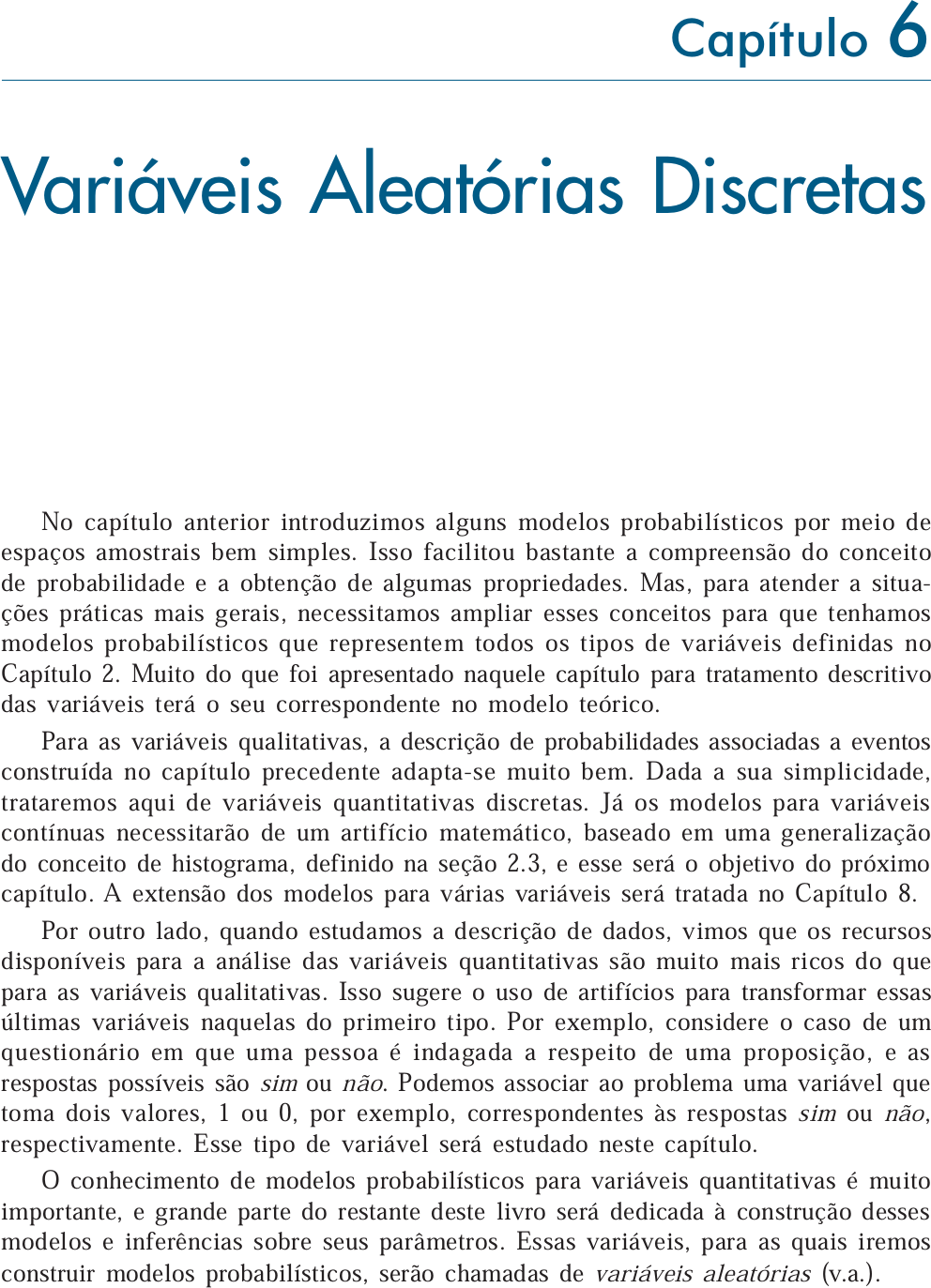 130 C A P Í T U L O 6 — V A R I Á V E I S A L E A T Ó R I A S D I S C R E T A S