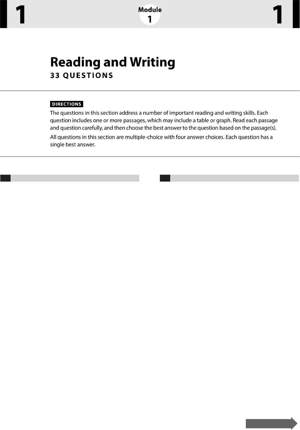 question includes one or more passages, which may include a table or graph. Read each passage