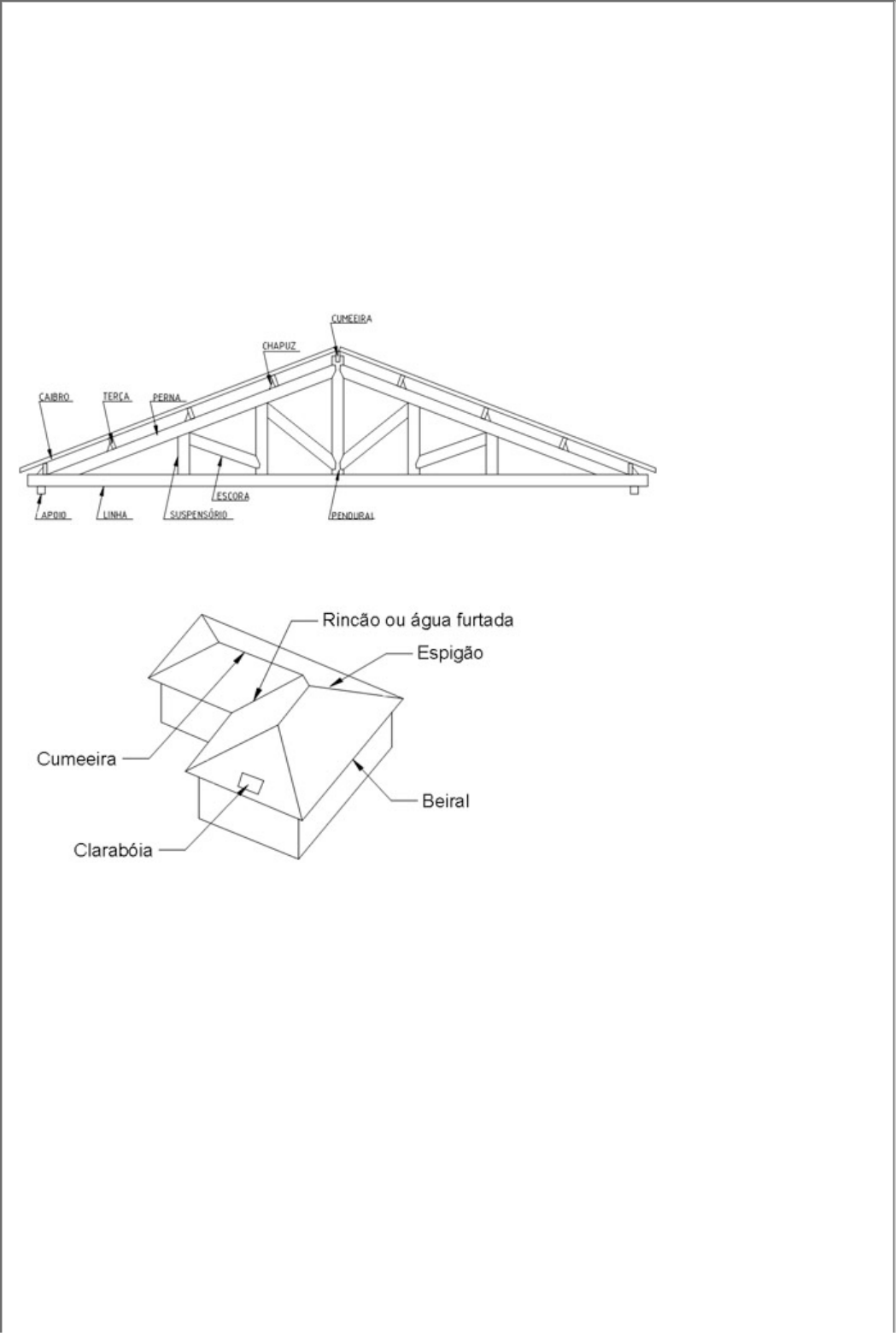 Módulo 4 – Telhado, plantas de implantação e situação. 4.1-Nomenclatura O telhado serve para cobrir e proteger a edificação. As telhas agrupadas formam as “águas” do telhado. As telhas são posicionadas sobre ripas, que por sua vez são fixadas em caibros. Os caibros, distantes geralmente meio metro são apoiados nas terças, que juntam as tesouras. A tesoura é uma estrutura de madeira cujas características variam conforme as dimensões do telhado. A figura abaixo ilustra os componentes mais comuns: As águas do telhado, conforme sua configuração, utilizam nomenclatura específica: O beiral serve para proteção e sombra, enquanto que a clarabóia facilita manutenção além de permitir ventilação e iluminação natural. O prolongamento dos cantos do telhado criam as cumeeiras; ou seja; as partes mais altas. Os cantos do telhado são ainda classificados em interno, denominado rincão ou água furtada e canto externo denominado espigão. 4.2 - Projeto de telhado com água furtada (procedimento genérico) 1-Desenho de segmentos a 45° em cada canto. 2-Prolongamento dos segmentos formando cumeeiras. 3-Extensão das cumeeiras. 4-A partir da menor cumeeira, prolongamento do canto mais próximo formando rincões ou espigões 5-Do ponto de encontro anterior criação de novo segmento de reta cujo ângulo, geralmente múltiplo de 45°, não é continuação dos segmentos anteriores. Os passos 4 e 5 se repetem até a finalização do telhado. as geometrias abaixo são exceções. 4.3 Planta de cobertura e implantação A planta de cobertura geralmente é conjugada com a implantação. São itens igualmente importantes no projeto de engenharia civil. A planta de cobertura não possui planos de corte e apresenta as águas do telhado com as especificações de telhas e a inclinação adotada. As paredes externas são desenhadas com linhas tracejadas. A implantação geralmente abrange a planta de cobertura e indica também a disposição da edificação no terreno. São cotados recuos, dimensões diversas e devem ser indicadas as características dos muros de divisa, área impermeável e ligação de água e luz. Toda planta precisa de título, número, escala e indicação do norte. 4.4 - Planta de situação A planta de situação é obrigatória para aprovação de projeto junto à prefeitura. Contém informações sobre a localização do lote dentro da quadra do loteamento. É importante também cotar as dimensões do terreno e sua distância em relação a alguma referência na quadra, geralmente um esquina. Como nos itens anteriores, precisa de título com escala além da indicação do norte. A figura abaixo ilustra o lote 4 da quadra 10: Exercício 1: Assinale a alternativa que preenche corretamente as lacunas. O assunto é: nomenclatura dos componentes da estrutura tesoura, que compõe telhado. I-A _________ fica sobre os apoios. II-As _________ são dispostas sobre as pernas. III-O chapuz serve para fixar as _______ . IV-As __________ e o suspensório dão sustentação para as ________. A) Linha, terças, terças, escoras, pernas. B) Linha, telhas, terças, escoras, cumeeiras. C) Linha, terças, pernas, bases, telhas. D) Base, terças, terças, escoras, pernas. E) Base, terças, terças, escoras, cumeeiras. Comentários: Essa disciplina não é ED ou você não o fez comentários Exercício 2: Assinale a alternativa que apresenta a associação correta dos termos do telhado: a-Canto interno ( ) Espigão b-Canto externo ( ) Cumeeira c-Abertura para iluminação ( ) Beiral d-Parte mais alta ( ) Rinção e-Proteção e sombra ( ) Claraboia A) a,d,e,b,c B) a,c,e,b,d C) b,c,e,a,d D) b,e,d,a,c E) b,d,e,a,c Comentários: Essa disciplina não é ED ou você não o fez comentários Exercício 3: Assinale a alternativa que apresenta a solução correta de telhado com áua furtada para a geometria abaixo: A) B) C) D) E) Comentários: Essa disciplina não é ED ou você não o fez comentários Exercício 4: Analise os projetos de telhado abaixo, denominados, na ordem A, B e C. Quais estão corretos? A) Somente A e C B) Somente B e C C) Somente C D) Nenhum E) Todos Comentários: Essa disciplina não é ED ou você não o fez comentários Exercício 5: Leia as sentenças abaixo a assinale a alternativa que apresenta as sentenças corretas: I-A planta de situação é obrigatória para aprovação de projeto junto à prefeitura. II- A planta de cobertura não possui planos de corte e apresenta as águas do telhado com as especificações de telhas e a inclinação adotada. III- Na planta de situação é importante cotar as dimensões do terreno e sua distância em relação a alguma referência na quadra. A) Somente I e II B) Somente I e III C) Somente II e III D) Todas E) Nenhuma Comentários: Essa disciplina não é ED ou você não o fez comentários Exercício 6: Indique a alternativa que apresenta a associação correta, na ordem: a-Planta de cobertura b-Planta de implantação c-Planta de situação ( )Indicação de área permeável ( )Número da quadra ( )Altura de muro ( )Percentual de inclinação ( )Norte A) b,c,b,a,c B) c,b,b,a,c C) b,a,b,b,c D) c,c,b,a,b E) b,c,b,b,b Comentários: Essa disciplina não é ED ou você não o fez comentários Exercício 7: Observe a configuração do telhado abaixo e assinale a alternativa correta. A) O número de cumeeiras é maior que o número de rincões. B) O número de espigões é o dobro do número de rincões. C) Existem mais rincões do que cumeeiras. D) O número de espigões é maior do que a soma do número de rincões com o número de cumeeiras. E) O número de cantos do telhado sempre indica a quantidade de rincões + espigões. Comentários: Essa disciplina não é ED ou você não o fez comentários Exercício 8: Leia as sentenças abaixo e assinale a alternativa que indica as corretas. I-A claraboia deve ser criada na água ligada à maior cumeeira. II-Os beirais servem para proteger as paredes externas e a laje. III-As 