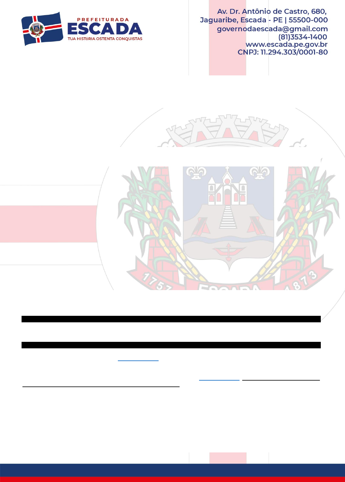 PREFEITURA MUNICIPAL DA ESCADA ESTADO DE PERNAMBUCO EDITAL DE CONCURSO PÚBLICO/SELEÇÃO PUBLICA N° 001/2023 CONCURSO PÚBLICO/SELEÇÃO PUBLICA PARA PREENCHIMENTO DE VAGAS DO PODER PÚBLICO MUNICIPAL. A Secretária do Fundo Municipal de Saúde do Município da Escada, Estado de Pernambuco, no uso de suas atribuições legais, TORNA PÚBLICA a abertura das inscrições e estabelece normas relativas à realização do CONCURSO PÚBLICO de Provas para o preenchimento de 38 (trinta e oito) vagas de cargos do Quadro de Pessoal, desta Secretaria Municipal, a ser realizado em duas etapas (prova objetiva e curso de formação inicial e continuado) e em conformidade com o art. 37, inciso II da Constituição Federal do Brasil, Lei Federal nº 13.595/2018, Lei Municipal e demais Legislações pertinentes à espécie, este Edital e, Editais de retificação. (quando for o caso). CAPÍTULO I 1.1. Este CONCURSO PÚBLICO destina-se ao preenchimento de vagas em Cargos Efetivos do Quadro permanente de pessoal desta Secretaria e será regido por este Edital, seus Anexos, e eventuais retificações caso existam, sua execução caberá ao IDHTEC – Instituto de Desenvolvimento Humano e Tecnológico, sob a fiscalização da Comissão Geral do Concurso, nomeados através da Portaria Nº 0093/2023, de 10 de janeiro de 2023 e pela Banca Examinadora de competência da Organizadora deste Concurso Público. 1.2. Toda referência a horário, será regida pelo horário oficial de Pernambuco. 1.3. Requisitos mínimos para investidura no Cargo: a) Ter sido aprovado e classificado em todas as etapas deste CONCURSO PÚBLICO, na forma estabelecida neste Edital, seus Anexos e em suas retificações; b) Ter nacionalidade brasileira e, no caso de nacionalidade estrangeira, estar amparado pela legislação brasileira; c) Ter idade mínima de 18 anos completos (na data da posse); d) Estar em gozo dos direitos políticos; e) Estar quite com as obrigações militares e eleitorais; f) Firmar declaração de não estar cumprindo sanção por inidoneidade, aplicada por qualquer órgão público ou entidade da esfera Federal, Estadual ou Municipal; g) Possuir a formação exigida para o cargo ao qual concorre, conforme discriminado no Anexo II deste Edital, no momento da posse; h) Todos os requisitos especificados neste subitem, alíneas "a" a "g”, deverão ser comprovados por meio da apresentação de documento original, juntamente com fotocópia, sendo eliminado do Concurso àquele que não os apresentar. CAPÍTULO II 2. DAS INSCRIÇÕES As inscrições ocorrerão exclusivamente no modo on-line, na forma descrita a seguir: (acaso o candidato necessite de ajuda para realizar sua inscrição, poderá obter ajuda em conformidade com o descrito no subitem 2.14 deste Edital) Inscrição Presencial. 2.1. INSCRIÇÃO VIA ON-LINE (INTERNET) 2.1.1. As inscrições serão realizadas exclusivamente nesta modalidade e estão abertas das 08:00 horas do dia 01 de abril às 23:59 do 30 de abril de 2023, no sitio da organizadora: www.idhtec.org.br, onde estão disponíveis o Edital e seus Anexos; Cadastro do Candidato e demais instrumentos; 2.1.2. Após ler atentamente as informações contidas no Edital e seus Anexos, o candidato deverá realizar a sua inscrição on-line, através da ferramenta “Inscrição On-line” disponível no sítio eletrônico da organizadora: www.idhtec.org.br, preencher o cadastro (com todas as informações solicitadas, escolher o cargo/área a qual deseja concorrer). Imprimir o Boleto Bancário (verifique se consta seu NOME e ENDEREÇO, impresso no mesmo). Pagar o Boleto Bancário em qualquer agencia dos correspondentes bancários ou nas agências bancárias, de acordo com a conveniência do candidato. 2.1.2.1. O Candidato poderá efetuar o pagamento do Boleto Bancário até o dia 02 de maio de 2023, no horário bancário oficial. 2.1.2.2. A confirmação de cada inscrição on-line ou presencial realizada ficará condicionada ao pagamento do respectivo Boleto Bancário da Taxa de Inscrição, ou, ainda, condicionada ao deferimento da respectiva Solicitação de Isenção da Taxa de Inscrição, nos moldes dos itens 2.5. e seguintes. 2.2 - O candidato só poderá se inscrever para uma das vagas disponíveis neste Concurso de que trata o presente edital, em conformidade com a sua conveniência. 2.3 - A inscrição no CONCURSO PÚBLICO implicará, desde logo, no conhecimento e aceitação pelo candidato de todas as condições estabelecidas neste Edital. http://www.idhtec.org.br/ http://www.idhtec.org.br/ 2.4. A taxa de inscrição não será devolvida ou transferida para outro candidato, salvo se o CONCURSO PÚBLICO for anulado. 2.4.1. Não será concedida isenção da taxa de inscrição, salvo, quando o Candidato atender aos requisitos contidos no Decreto Federal nº 11.016, de 29 de março de 2022, que deverá cumprir com as exigências abaixo: 2.5. SOLICITAÇÃO DE ISENÇÃO DA TAXA DE INSCRIÇÃO 2.5.1. Antes de proceder ao cumprimento das exigências para requerer a Isenção da Taxa de Inscrição, o Candidato deverá realizar sua Inscrição on-line ou presencial, obedecendo à forma descrita nos itens 2.1. e seguintes, preenchendo o cadastro (com todas as informações solicitadas, escolher o cargo ao qual deseja concorrer). Apenas após realizar esse procedimento, passe ao item 2.5.2. e demais subitens; 2.5.2. O candidato deverá preencher o Requerimento de Isenção da Taxa de Inscrição (vide link: “requerimentos, dispon ível no sitio www.idhtec.org.br), juntar os documentos necessários e enviar por e-mail identificado em formato PDF para: idhtec@idhtec.org.br; 2.5.3. Serão apreciadas as solicitações de isenção da taxa de inscrição os candidatos que: 2.5.3.1 Estiverem inscritos no Cadastro Único para os Programas Sociais do Governo Federal (CadÚnico) ou serem considerados membros de família de baixa renda, nas condições estabelecidas no art. 5º do Decreto Federal nº 11.016/202