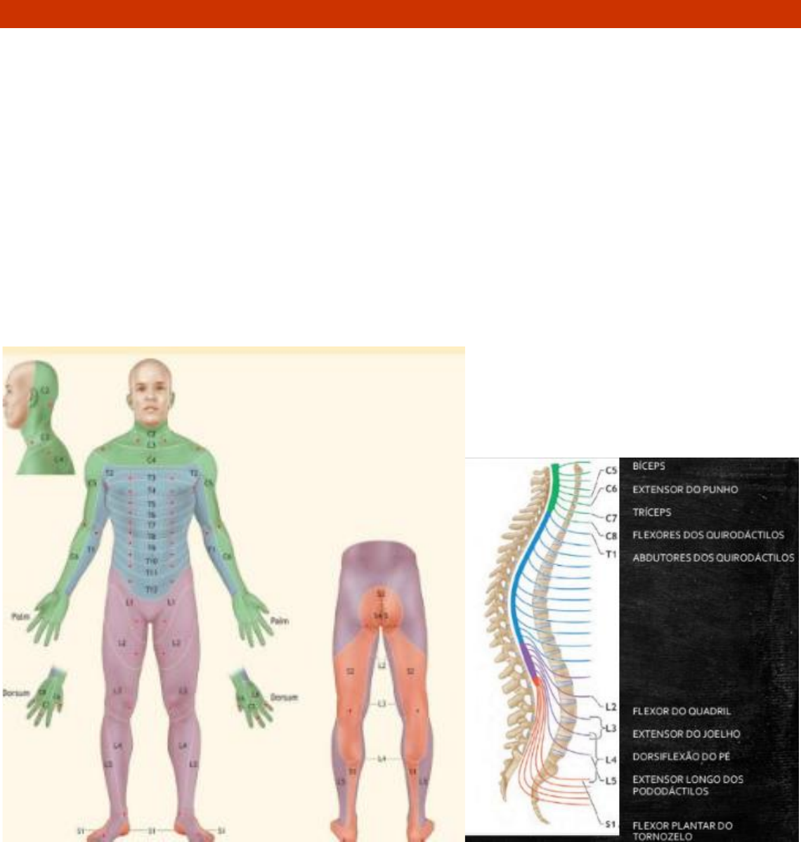 TRAUMA RAQUIMEDULAR • Devemos considerar lesão de coluna em pacientes com traumas múltiplos. • Até 10% dos doentes com fratura da coluna cervical tem uma segunda fratura na coluna vertebral não contígua. • 5% dos pacientes com lesão da coluna vertebral iniciam os sintomas neurológicos ou pioram após o atendimento → pode ser devido a isquemia ou progressão do edema da medula → mas podem ser devido a movimentação excessiva da coluna. DERMÁTOMOS • Área da pele inervada pelos axônios sensoriais dentro de uma raiz nervosa. MÉDULA ESPINHAL • Miótomos: cada raiz nervosa da medula que faz a movimentação dos grandes grupos musculares. • Origina-se da extremidade caudal da medula oblonga → no foram magno. Em adultos termina na altura de L1 como cone medular → abaixo desse nível está a cauda equina → relativamente mais resistente a lesões. OBS: As lesões abaixo de L1, tem uma repercussão menos grave. CLASSIFICAÇÕES DAS LESÕES • Nível ósseo: ocorreu dano ósseo. • Nivel neurológico: nível mais caudal da medula com função sensitiva e motora bilateral. • Nível sensitivo: nível mais caudal da medula com função sensitiva normal. • Nivel motor: grupo muscular mais baixo que possui grau de força de pelo menos 3. OBS: Qualquer função motora ou sensorial abaixo do nível da lesão constitui uma lesão incompleta → sensação (reconhecimento de posição), movimentos voluntários nos MMII, preservação sacral (sensibilidade), contração voluntária do esfíncter anal, flexão voluntária do dedo do pé. Reflexos sacrais como reflexo bulbocavernoso e contratilidade involuntária anal NÃO se qualificam como preservação sacral. O reflexo bulbocavernoso (toque retal + estímulo na glande/clitóris, quando faz esse estímulo o ânus contrai involuntariamente, ou seja, é um reflexo e não uma movimentação voluntária. Consideramos que o paciente possui preservação sacral se contrair o ânus voluntariamente. TRATOS DA MEDULA ESPINHAL • Dos tratos da medula espinhal, 03 podem ser testados clinicamente: Trato corticoespinhal lateral, Trato espino- talâmico e as colunas dorsais. São distribuídos aos pares e as lesões podem ser unilaterais ou bilaterais. • Trato corticoespinhal: via descendente, MOTORA, 90% decussação nas pirâmides – bulbo. Ou seja, se seccionar a medula a paralisia motora vai ser do mesmo lado da lesão pois o trato cruzou lá em cima. • Colunas dorsais: via ascendente, decussação na parte inferior do bulbo (fascículo grácil e cuneiforme). PROPRIOCEPÇÃO/POSIÇÃO, TATO EPICRÍTICO E SENSAÇÃO VIBRATÓRIA. Então se a pessoa tem uma lesão do lado direito, ela vai ter ausência de tato, vibração e propriocepção do mesmo lado por que as fibras só cruzam no bulbo. • Trato espinotalâmico: via ascendente, TEMPERATURA E DOR, decussação na parte cervical e lombar da medula. Ou seja, se o paciente tem uma lesão do lado esquerdo ele não sente temperatura e dor só que a direita. É o único que cruza na periferia. • Síndrome Central da Medula: desproporção entre a perda de força motora nas extremidades superiores (maior) que a perda de força nas extremidades inferiores (menor). Comum nas lesões da coluna em hiperextensão (comum nas pessoas de meia-idade com osteoartrite). Devido ao trato corticoespinhal lateral transmitir o estímulo das fibras motoras no centro para o MMSS e na periferia para o MMII → pode haver graus variáveis de perda sensorial → lesões por hiperextensão → história é de uma queda para frente que resulta em impacto facial. Acredita-se que seja decorrente de um comprometimento vascular no território da artéria espinhal anterior → essa artéria supre as porções centrais da medula → pode ocorrer com ou sem fratura ou luxação da coluna cervical → a recuperação da força muscular costuma seguir um padrão → 1° músculos dos membros inferiores → depois membros superiores e das mãos. • Síndrome de Brown-Sequard: hemissecção da medula. É comum no trauma penetrante. Ocorre comprometimento motor ipsilateral (trato corticoespinhal) e perda da sensibilidade postural/de posição ipsilateral (coluna dorsal) + perda contralateral da sensibilidade térmica e à dor (trato espinotalâmico). Paciente não sente vibração do mesmo lado que seccionou a medula e do lado oposto não sente dor e temperatura. • Síndrome anterior da medula: lesões das vias motoras e sensitivas da parte anterior da medula → causa PARAPLEGIA + PERDA BILATERAL DE SENSAÇÃO, DOR E TEMPERATURA. A sensibilidade da medula posterior/dorsal estão preservadas (propriocepção, vibração e sensação de pressão profunda). É o de pior prognóstico. CHOQUE NEUROGÊNICO • Repercussão hemodinâmica → perda do tônus vasomotor e da inervação simpática para o coração. • Lesão da medula cervical ou torácica alta (T6 ou acima) → comprometimento das vias simpáticas descendentes → perda do tônus vasomotor → vasodilatação dos vasos viscerais e periféricos → HIPOTENSÃO → perda de inervação simpática para o coração → BRADICARDIA ou pelo menos falta de resposta a hipovolemia com taquicardia → quando há suspeita desse choque ainda há que descartar fontes de sangramento. • Os efeitos do choque neurogênico não respondem bem a ressuscitação volêmica que é feita inicialmente. • Pode-se usar vasopressores com critério. (NORADRENALINA) • Pode-se usar ATROPINA (0,5 – 2mg por hora) para corrigir a bradicardia hemodinamicamente significativa. CHOQUE MEDULAR • Paciente com lesão medular aguda pode apresentar choque medular, isso é, após as primeiras horas do trauma na medula, essa edemacia, provoca alterações nas células de condução e paciente pode apresentar completa arreflexia da lesão para baixo. • Perda de força motora e de reflexos que ocorrem imediatamente após a lesão. Período de arreflexia, paralisia motora e perda da