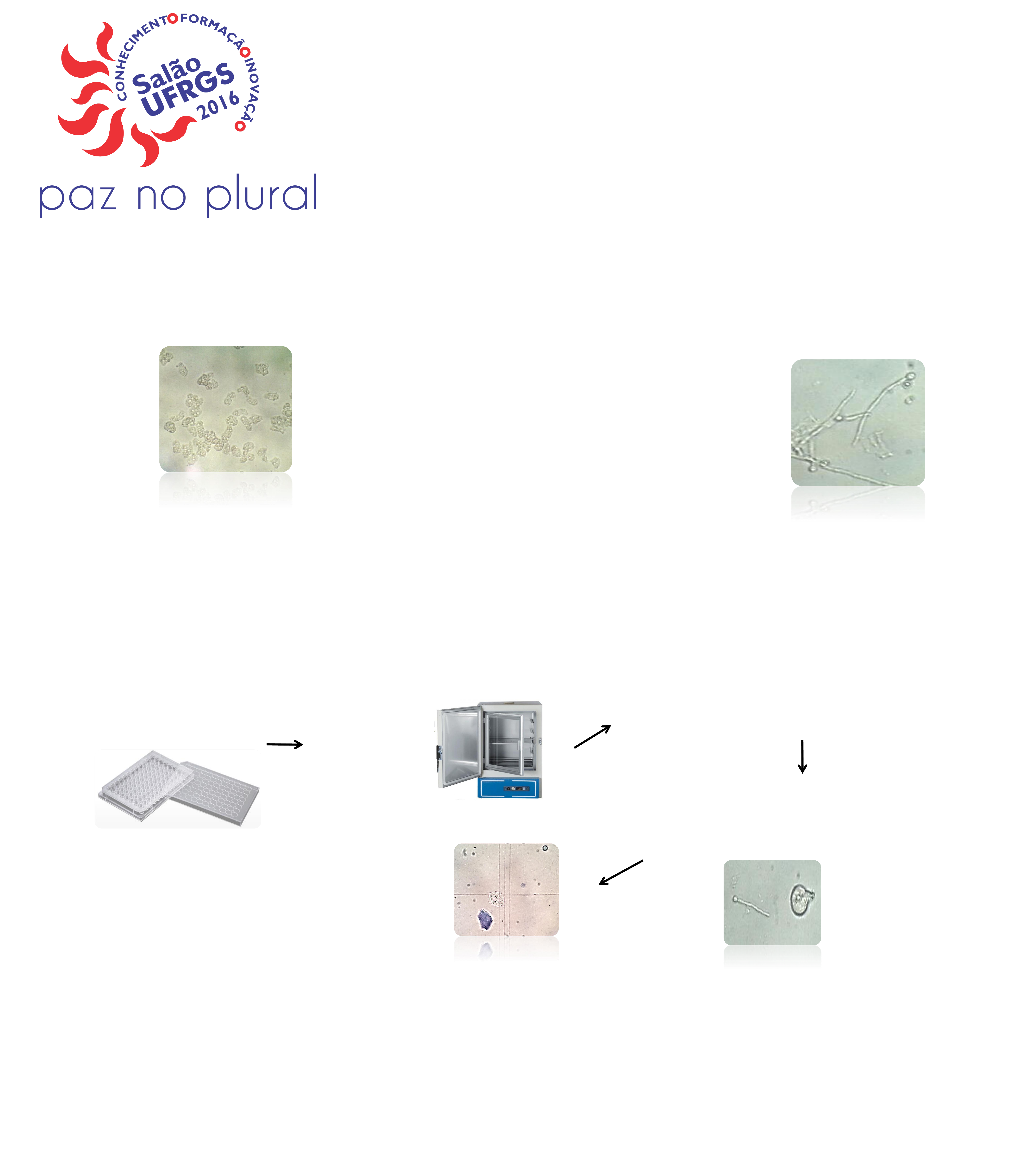 AVALIAÇÃO DO ÍNDICE DE FAGOCITOSE DE Acanthamoeba castellanii INTERAGINDO COM Fonsecaea pedrosoi. Amanda Carvalho Ribeiro 1; Maria Lúcia Scroferneker 2 1 Aluna de Iniciação Científica BIC-UFRGS 2 Departamento de Microbiologia, Imunologia e Parasitologia, ICBS, UFRGS APOIO: CAPES, CNPq, PROPESQ, FAPERGS Os protozoários do gênero Acanthamoeba constituem um grupo amplamente distribuído no ambiente (solo, água e ar) e algumas espécies podem ser patogênicas e/ou oportunistas Fonsecaea pedrosoi é o principal agente da cromoblastomicose que é uma infecção fúngica crônica dos tecidos cutâneo e subcutâneo. É um fungo melanizado, cuja infecção se dá através de sua implantação traumática. A Acanthamoeba spp. alimentam-se ativamente de diversos microrganismos, porém alguns deles evoluíram tornando-se resistentes, uma vez que não são internalizados, ou seja, são capazes de sobreviver, crescer e sair das amebas após internalização. Objetivo Materiais e Métodos Foram inoculados, 2x105 trofozoítos de A. castellanii em placa de 96 poços O índice de fagocitose foi determinado utilizando-se a cepa ambiental de Acanthamoeba castellanii Neff (ATCC 30010) e uma amostra clínica de Fonsecaea pedrosoi. O objetivo desse estudo foi avaliar a interação entre F. pedrosoi e A. castellanii, através de um modelo de cocultivo como fator modulador de características intrínsecas de ambos os microrganismos. Em seguida a placa foi incubada a 30°C por 2 horas para aderência das células Após as 2h, foi inoculado 1x105 esporos de F. pedrosoi, na mesma placa (proporção de 2:1) e incubados a 30ºC novamente O índice de fagocitose foi determinados após 3 e 24h de incubação através da contagem de amebas com esporos internalizados (como controle, cada microrganismo foi inoculado em PBS isoladamente) A viabilidade amebiana foi determinada através da contagem de amebas em câmara de Fuchs-Rosenthal utilizando-se o corante de exclusão azul de tripan 0,3%. O teste piloto demonstrou que a cepa ambiental de A. castelanii é capaz de fagocitar os esporos de F. pedrosoi. Desse modo, essa interação, pode permitir a transmissão do fungo para hospedeiros suscetíveis, além de poder aumentar a sua virulência. Resultados Preliminares e Conclusão Referências: 1 - NUNES, T.E.T; ROTT, M.B; FUENTEFRIA, M.A. INTERAÇÃO ENTRE ACANTHAMOEBA CASTELLANIIE FUSARIUM SOLANI: UM POSSÍVEL PROBLEMA NO CONTEXTO DA CERATITE. (Dissertação) de Mestrado Universidade Federal do Rio Grande do Sul, Instituto de Ciências Básicas da Saúde, Programa de Pós-graduação em Microbiologia Agrícola e do Ambiente, Porto Alegre, RS. 2014. 2 - Torres-Guerrero E, Isa-Isa R, Isa M, Arenas R. Clinics in Dermatology.2012; 30: 403–408. Introdução
