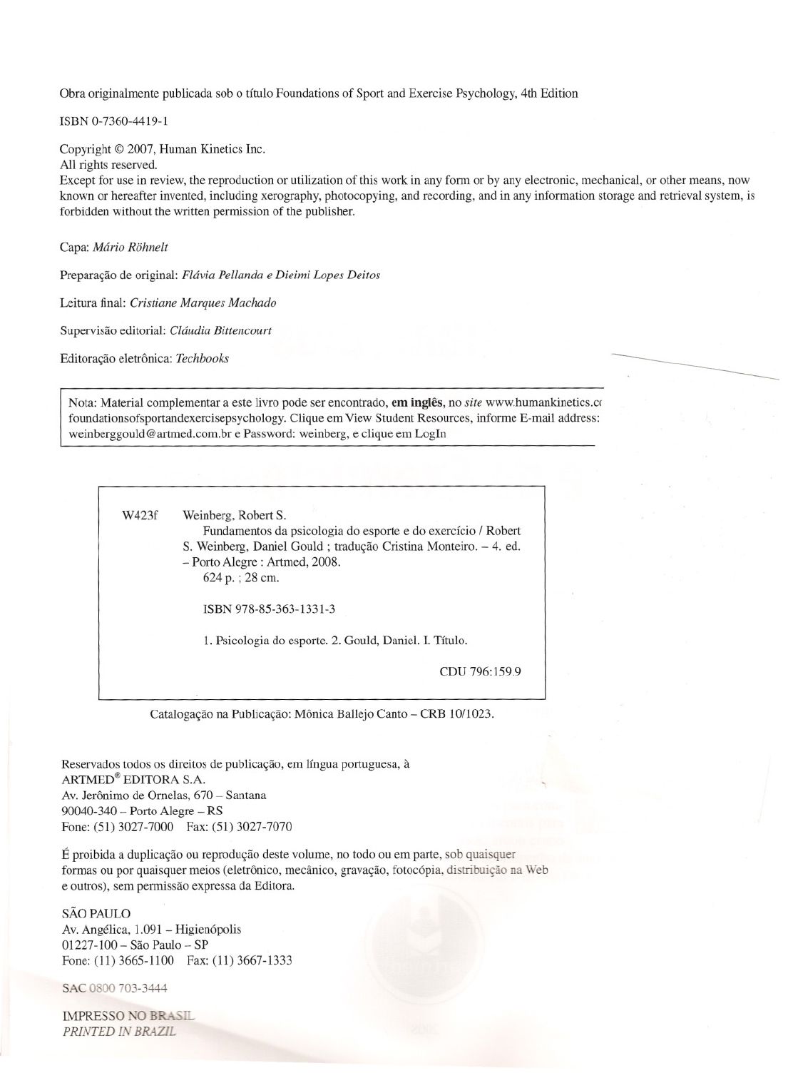 Obra originalmente publicada sob o título Foundations of Sport and Exercise Psychology, 4th Edition ISBN 0-7360-4419-1 Copyright © 2007, Human Kinetics Inc. All rights reserved. Except for use in review, the reproduction or utilization of this work in any form or by any electronic, mechanical, or other means, now known ar hereafter invented, induding xerography, photocopying, and recording, and in any infarmation storage and retrieval system, is farbidden without the written permission of the publisher. Capa: Mário Rohnelt Preparação de original: Flávia Pellanda e Dieimi Lopes Deitos Leitura final: Cristiane Marques Machado Supervisão editorial: Cláudia Bittencourt Editoração eletrônica: Techbooks Nota: Material complementar a este livro pode ser encontrado, em inglês, no site www.humankinetics.c( foundationsofsportandexercisepsychology. Clique em View Student Resources, informe E-mail address: weinberggould@artrned.com.brePassword: weinberg, e dique em LogIn W423f Weinberg, Robert S. Fundamentos da psicologia do esporte e do exercício / Robert S. Weinberg, Daniel Gould ; tradução Cristina Monteiro. - 4. ed. - Porto Alegre: Artmed, 2008. 624 p. ; 28 cm. ISBN 978-85-363-1331-3 1. Psicologia do esporte. 2. Gould, Daniel. r. Título. CDU 796:159.9 Catalogação na Publicação: Mônica Ballejo Canto - CRB 10/1023. Reservados todos os direitos de publicação, em língua portuguesa, à ARTMED® EDITORA S.A. Av. Jerônimo de Ornelas, 670 - Santana 90040-340 - Porto Alegre - RS Fone: (51) 3027-7000 Fax: (51) 3027-7070 É proibida a duplicação ou reprodução deste volume, no todo ou em parte, sob quaisquer formas ou por quaisquer meios (eletrônico, mecânico, gravação, fotocópia, distribui> ão na Web e outros), sem permissão expressa da Editora. SÃO PAULO Av. Angélica, 1.091 - Higienópolis 01227-100 - São Paulo - SP Fone: (11) 3665-1100 Fax: (11) 3667-1333 SAC O ()() 03-3444 IMPRESSO :\0 BR,s.e- PRl TED 111' BRAZIL 96 Robert S.Weinberg • Daniel Gould ]ason chega para rebater no final do último tempo com duas bolas fora e dois homens na base. Com uma re- batida, seu time vencerá o campeonato estadual; com uma bola fora, seu time perderá o maior jogo da temporada. Jason posiciona-se no lugar do batedor; seu coração está aos saltos, ele sente algo estranho no estômago e não con- segue manter a concentração. Pensa, então, no que uma vi- tória significará para seu time e no que as pessoas pensarão dele se não rebater. Cravando as travas da chuteira na terra, Jason aperta o bastão, faz uma pequena oração e aguarda o primeiro arremesso. Se você pratica esporte, provavelmente já enfrentou a grande ativação e ansiedade de situações como a de Jason. Os psicólogos do esporte e do exercício estudam as causas e os efeitos do estresse e da ansiedade no ambiente esportivo competitivo e em outras áreas de atividade física. Muitos profissionais da saúde estão interessados nos benefícios fisiológicos e psicológicos do exercício regular. O exercí- cio praticado regularmente diminuiu o nível de estresse? Pacientes com graves transtornos de ansiedade se benefi- ciarão de treinamento aeróbio intensivo e necessitarão de menos medicação? Para pessoas que tiveram uma péssima experiência na água, imagine como pode ser estressante aprender a nadar. Como os professores podem reduzir essa ansiedade? DEFININDO ATIVAÇÃO E ANSIEDADE Embora muitas pessoas usem os termos ativação, estresse e ansiedade indiferentemente, os psicólogos do esporte e do exercício consideram importante diferenciá-Ios. Eles usam definições precisas para os fenômenos que estudam para ter uma linguagem comum, reduzir confusões e diminuir a ne- cessidade de longas explicações. Baixa (coma) Figura 4.1 O continuum de ativação. ATIVAÇÃO Atívaçâo é uma combinação de atividades fisiológicas e psicológicas em uma pessoa e refere-se à intensidade das dimensões de motivação em determinado momento. A in- tensidade da ativação ocorre ao longo de um continuum (ver Fig. 4.1), variando de nem um pouco excitado (i. e., letar- gia) à completamente excitado (i. e., frenético; ver Gould, Greenleaf e Krane, 2002). Indivíduos altamente ativados são mental e fisicamente excitados; eles têm batimentos cardíacos, respiração e sudorese aumentados. A ativação não está automaticamente associada a eventos agradáveis ou desagradáveis. Você pode ficar altamente excitado ao sa- ber que ganhou 10 milhões de dólares. Poderia ficar igual- mente excitado ao saber da morte de uma pessoa querida. ~ Ativação é uma excitação fisiológica e psicológica geral, variando em um continuum de sono profun- do à intensa excitação. ANSIEDADE A ansiedade é um estado emocional negativo caracterizado por nervosismo, preocupação e apreensão e associado com ativação ou excitação do corpo. Logo, a ansiedade tem um componente de pensamento (p. ex., preocupação e apreen- são) chamado de ansiedade cognitiva. Apresenta também um componente de ansiedade somática, que é o grau de ativação física percebida. Além da diferenciação entre an- siedade cognitiva e somática, outra diferença importante a fazer é entre ansiedade-estado e ansiedade-traço. ~ A ansiedade é um estado emocional negativo no qual sentimentos de nervosismo, preocupação e apreensão estão associados com ativação ou exci- tação do corpo. Alta (frenesi) ANSIEDADE-ESTADO Às vezes nos referimos à ansiedade ao discutirmos um componente estável da personalidade; outras, usamos o termo para descrever um estado de humor variável. Ansie- dade·estado refere-se ao componente de humor em cons- tante variação. Ele é definido mais formalmente como um estado emocional "caracterizado por sentimentos subjetivos de apreensão e tensão, conscientemente percebidos, acom- panhados por ou associados com ativação ou excitação do sistema nervoso autônomo" (Spielberger, 1966, p. 17). Por exemplo, o