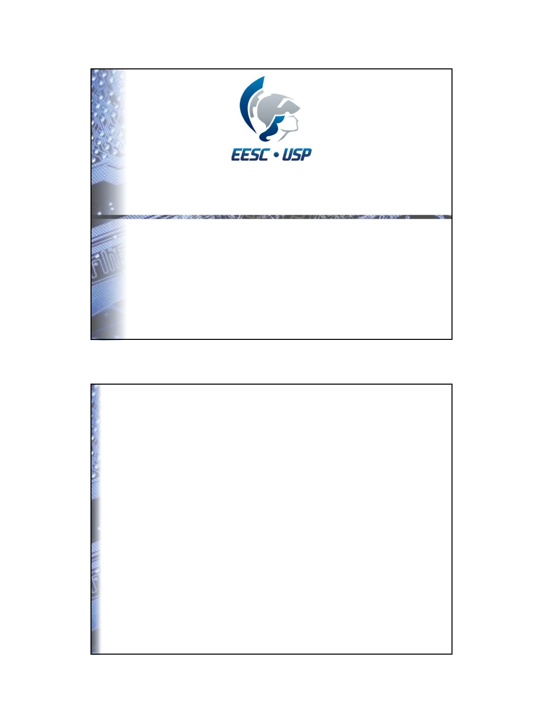 11/05/2021 1 SEL0301 – Circuitos Elétricos I Universidade de São Paulo Escola de Engenharia de São Carlos Departamento de Engenharia Elétrica e de Computação Prof. Rogério Andrade Flauzino terça-feira, 11 de maio de 2021 CAPÍTULO 2 CIRCUITOS COM ELEMENTOS ARMAZENADORES DE ENERGIA Universidade de São Paulo Escola de Engenharia de São Carlos Departamento de Engenharia Elétrica e de Computação Prof. Rogério Andrade Flauzino 11/05/2021 2 2.1. Introdução • O relacionamento tensão por corrente dos elementos de circuitos elétricos pode ser estabelecido da seguinte maneira: • Assim, quando da análise de circuitos com elementos armazenadores de energia ter-se-á um conjunto de equações diferenciais como resultado. 2.1. Introdução • Elementos de circuitos elétricos – Resistores Esquematicamente representados da seguinte forma: Representam a conversão de energia elétrica em outra forma de energia. Em resistores lineares a tensão é diretamente proporcional à corrente cuja constante de proporcionalidade é a resistência (Lei de Ohm). 𝑣 𝑡 𝑖 𝑡 𝑅 11/05/2021 3 2.1. Introdução • Elementos de circuitos elétricos – Capacitores • Ao se aplicar uma diferença de potência nas placas cargas se acumularam nas placas. • Essas cargas não em igual quantidade mas com características opostas (em uma placa as cargas serão positivas e na outra negativas) • Não há o armazenamento de cargas. • A quantidade de carga nas placas será proporcional à tensão aplicada. 2.1. Entes constituintes de um circuito elétrico • Elementos de circuitos elétricos – Capacitores • Derivando em 𝑡, tem-se: 𝑖 𝑡 𝑣 𝑡 • Os capacitores representam a capacidade do sistema de armazenar energia no campo elétrico. 11/05/2021 4 2.1. Introdução • Elementos de circuitos elétricos – Indutores • Ao se fazer circular uma corrente 𝑖 𝑡 pelo enrolamento do indutor tem-se o estabelecimento de um campo magnético pelo núcleo. • ∮ 𝐻𝑑𝑙 = 𝑁𝑖 𝑡 𝐻 = 𝑖 𝑡 • Portanto, 𝐵 = 𝜇𝐻 𝐵 = 𝑖 𝑡 • Assim, o fluxo magnético será: 𝜙 = ∫ 𝐵𝑑𝑠𝜙 𝑡 = 𝑖 𝑡 • Dessa forma a tensão 𝑣 𝑡 será: • 𝑣 𝑡 = = 2.1. Introdução • Elementos de circuitos elétricos – Indutores Esquematicamente os indutores são representados da seguinte forma: • Os indutores representam a capacidade do sistema de armazenar energia no campo magnético. 𝑖 𝑡 𝑣 𝑡 𝐿 11/05/2021 5 2.1. Introdução • Para solucionar o conjunto de equações diferenciais fruto da análise é necessário que se determine as condições de contorno (condições iniciais) do circuito. • Assim, inicialmente será apresentado quais são e como determinar as condições iniciais em circuitos com elementos armazenadores de energia. 2.2. Cálculo de Condições Iniciais em Circuitos com Elementos Armazenadores de Energia • Capacitor – Condição inicial O relacionamento tensão por corrente em um capacitor pode ser expresso da seguinte forma: • 𝑖 𝑡 = 𝐶 Pela definição de derivada, tem-se: • 𝑖 𝑡 = 𝐶 lim ∆ → ∆ ∆ • lim ∆ → 𝑖 𝑡 ∆𝑡 = 𝐶 lim ∆ → 𝑣 𝑡 + ∆𝑡 − 𝑣 𝑡 • 0 = 𝐶 lim ∆ → 𝑣 𝑡 + ∆𝑡 − 𝑣 𝑡 • lim ∆ → 𝑣 𝑡 + ∆𝑡 = 𝑣 𝑡 Ou seja, não há variação instantânea de tensão em um capacitor. 11/05/2021 6 2.2. Cálculo de Condições Iniciais em Circuitos com Elementos Armazenadores de Energia • Capacitor – Condição inicial Dado que lim ∆ → 𝑣 𝑡 + ∆𝑡 = 𝑣 𝑡 , ou seja, não há variação instantânea da tensão em um capacitor essa deve ser a grandeza a se conhecer como condição inicial. 2.2. Cálculo de Condições Iniciais em Circuitos com Elementos Armazenadores de Energia • Capacitor – Comportamento em regime permanente Em regime permanente de corrente contínua não há variação temporal das grandezas elétricas. Portanto: • 𝑖 𝑡 = 𝐶 • 𝑖 𝑡 = 0 Não há circulação de corrente por um capacitor em regime de corrente contínua, ou seja, o capacitor em regime permanente CC se comporta como um ramo aberto. 11/05/2021 7 2.2. Cálculo de Condições Iniciais em Circuitos com Elementos Armazenadores de Energia • No circuito à seguir, qual a tensão do capacitor em 𝑡 = 0? 2.2. Cálculo de Condições Iniciais em Circuitos com Elementos Armazenadores de Energia • Indutor – Condição inicial O relacionamento tensão por corrente em um indutor pode ser expresso da seguinte forma: • 𝑣 𝑡 = 𝐿 Pela definição de derivada, tem-se: • 𝑣 𝑡 = 𝐿 lim ∆ → ∆ ∆ • lim ∆ → 𝑣 𝑡 ∆𝑡 = 𝐿 lim ∆ → 𝑖 𝑡 + ∆𝑡 − 𝑖 𝑡 • 0 = 𝐿 lim ∆ → 𝑖 𝑡 + ∆𝑡 − 𝑖 𝑡 • lim ∆ → 𝑖 𝑡 + ∆𝑡 = 𝑖 𝑡 Ou seja, não há variação instantânea de corrente em um indutor. 11/05/2021 8 2.2. Cálculo de Condições Iniciais em Circuitos com Elementos Armazenadores de Energia • Indutor – Condição inicial Dado que lim ∆ → 𝑖 𝑡 + ∆𝑡 = 𝑖 𝑡 , ou seja, não há variação instantânea da corrente em um indutor essa deve ser a grandeza a se conhecer como condição inicial. 2.2. Cálculo de Condições Iniciais em Circuitos com Elementos Armazenadores de Energia • Indutor – Comportamento em regime permanente Em regime permanente de corrente contínua não há variação temporal das grandezas elétricas. Portanto: • 𝑣 𝑡 = 𝐿 • 𝑣 𝑡 = 0 Não há queda de tensão em um indutor em regime permanente de corrente contínua, ou seja, o indutor em regime permanente CC se comporta como um ramo curto-circuitado. 11/05/2021 9 4.2. Cálculo de Condições Iniciais em Circuitos com Elementos Armazenadores de Energia • No circuito à seguir, qual a corrente do indutor em 𝑡 = 0? 2.3. Circuitos de Primeira Ordem Circuitos RC com fonte de alimentação • Vam