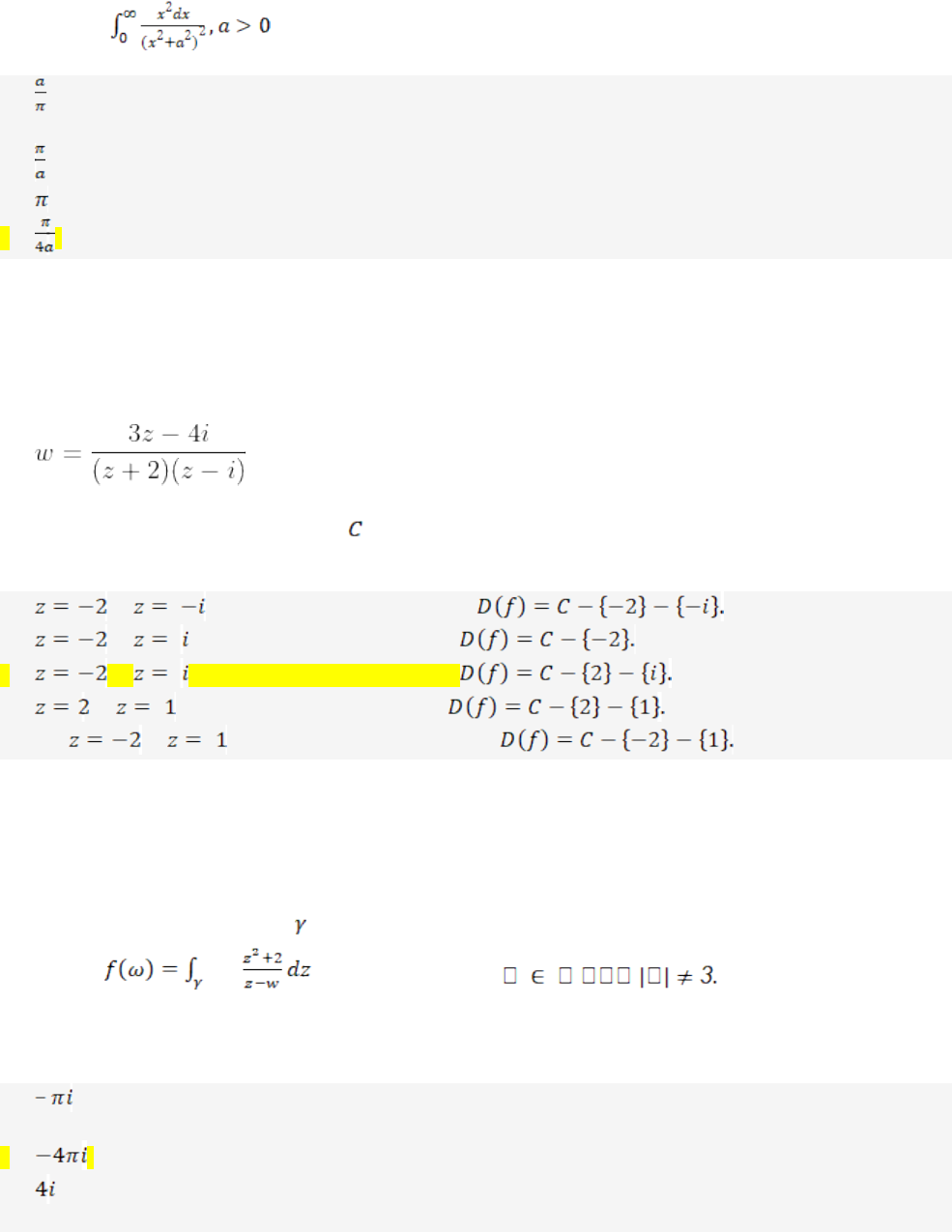 CALCULO AVANÇADO COM NUMEROS COMPLEXOS ATIVIDADE 5 – PROVA N2 1. No âmbito matemático, entende-se que o teorema dos resíduos é de suma importância em análise complexa, por se tratar de um método de cálculo de integrais de funções analíticas ao longo de caminhos fechados simples que generaliza a fórmula de Cauchy. Considerando essas informações e conteúdo estudado sobre resíduo, calcule a integral .. · . · 2. · . · . · . 2. Ao trabalharmos com as funções, temos que considerar a importância de não somente determinarmos a sua lei de formação, mas também o seu domínio e condição de existência. Com as funções analíticas não poderia ser diferente. Então, podemos afirmar que a função é válida para todos os pontos de , sendo: · e . Seu domínio é, portanto, · e . Seu domínio é, portanto, · e . Seu domínio é, portanto, · e . Seu domínio é, portanto, d) e . Seu domínio é, portanto, 3. A integral de uma função de duas variáveis no plano também pode ser chamada de integral múltipla. O cálculo de uma integral pode ser dado por meio de função de variáveis reais, assim como de variáveis complexas. Neste último caso, abordaremos uma integração complexa. Considere um dado círculo , cujo centro esteja na origem e seu raio seja 3. A partir da função , definida para todo Assim, e considerando o conteúdo estudado, determine f(2i). · . · 0. · . · . · i. 4. Cada conteúdo que aprendemos no campo da Matemática, funciona como uma “ferramenta” para solucionarmos os problemas. São nossos aliados como recursos essenciais, para facilitar o processo e oferecer resultados mais precisos. Uma dessas ferramentas é a transformada de Laplace, que possui muitas aplicações na engenharia, sendo capaz de transformar uma função, por exemplo, em outra. Considerando essas informações e conteúdo estudado sobre transformação inversa de Laplace, calcule y - 5y = 0, sendo y(0) = 2. · . · s - 5. · e. · . · . 5. No âmbito da matemática aplicada, uma transformação ou transformada de Laplace consegue converter uma equação diferencial em uma equação algébrica, o que é muito conveniente na resolução de algumas situações problemas. Considerando essas informações e conteúdo estudado sobre transformação de Laplace, calcule y’ - y = 0, sendo y = y(t) em que y(0) = 1. · . · . · . · 1. · t. 6. Uma função é uma operação que transformará pontos de um plano complexo em outros pontos. As funções de variáveis complexas, assim como os números complexos, também podem ser compostas por uma parte real e uma parte imaginária. Considerando essas informações e conteúdo estudado, determine uma função f, em que a parte real seja dada por: · · · · · 7. No âmbito do cálculo avançado com números complexos, podemos dizer que as integrais que não obedecem às propriedades como o domínio da integração finito e que a imagem do integrando seja finita nesse domínio, são denominadas de integral imprópria. Considerando essas informações e conteúdo estudado sobre integral imprópria, determine o valor de . · . · . · . · . · . 8. No cálculo avançado, entende-se que o estudo de uma sequência inclui a verificação de sua classificação quanto a sua convergência. Uma sequência convergente tende a um limite e sua representação poderá ser dada por um gráfico. Considerando essas informações e conteúdo estudado sobre convergência e divergência, podemos afirmar que a sequência é: ~A resposta está correta! Para todo . Se , então , sendo a sequência divergente. · divergente, pois seu limite é dado por · divergente, pois seu limite é dado por · convergente, pois seu limite é dado por . · convergente, pois seu limite é dado por · indefinido, pois seu limite é dado por . 9. Os números complexos surgiram a partir da necessidade de resultados em casos em que não havia solução no campo dos números reais, e sua aplicação se estendeu às funções de variáveis complexas. O estudo de uma função de variável complexa nos permite determinar a parte real e a parte imaginária de uma função. Denominando a parte real por u e a parte imaginária v, determine da função · · · · · 10. O estudo das sequências em Cálculo avançado é necessário, pois sua aplicação na solução de situações que envolvem as séries é muito utilizada em problemas da ciência e engenharia, destacando a praticidade do conhecimento de seus teoremas. Considerando essas informações e conteúdo estudado sobre limites de sequências, encontre · 1. · . · 0. · 3. · . image6.gif image7.gif image8.gif image9.gif image10.gif image11.gif image12.gif image13.gif image14.gif image15.gif image16.gif image17.gif image18.gif image19.gif image20.gif image21.gif image22.gif image23.gif image24.gif image25.gif image26.gif image27.gif image28.gif image29.gif image30.jpeg image31.jpeg image32.jpeg image33.jpeg image34.jpeg image35.jpeg image36.gif image37.gif image38.gif image39.gif image40.gif image41.gif image42.gif image43.gif image44.gif image45.gif image1.gif image46.gif image47.gif image48.gif image49.gif image50.jpeg image51.jpeg image52.jpeg image53.jpeg image54.jpeg image55.jpeg image2.gif image56.gif image3.gif image4.gif image5.gif