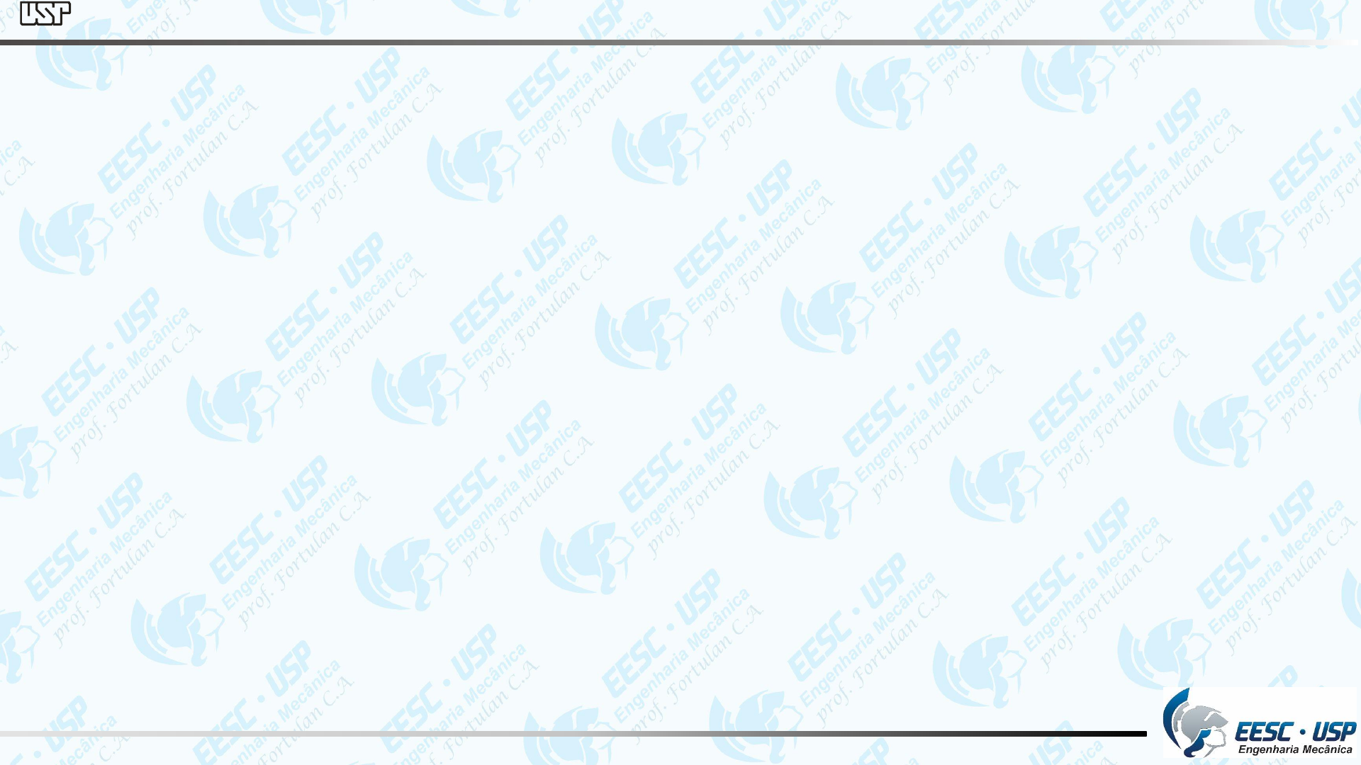São Carlos Elementos de Máquina (SEM 0241) – FORTULAN CA (2023) LISTA DE EXERCÍCIOS ELEMENTOS DE MÁQUINAS (SEM 0241) Lista de exercícios – Aula 04 – Eixos pré-dimensionamento estático Professor: Carlos Alberto Fortulan Notas de Aulas v.2023 São Carlos Elementos de Máquina (SEM 0241) – FORTULAN CA (2023) LISTA DE EXERCÍCIOS Passos para dimensionamento estático de eixos: a) Elaboração de um modelo gráfico com as forças atuantes; b) Determinação das reações de apoio e desenho dos Diagramas MNQ; c) Esboço do eixo para planejamento, aqui se observa: o comprimento; escalonamentos; apoios de: rolamentos, engrenagem, polias; rasgos de anéis elásticos; d) Determinação do Momento Equivalente (Meq) para as seções de interesse; e) Pré-dimensionamento das seções pelos seu momentos equivalentes, iniciando pela seção de maior momento equivalente, a demais: a) Analiticamente; b) Planejamento: o escalonamento de diâmetro é necessário para posicionamento; montagem; fabricação e manutenção; por algumas destas razões muitas vezes o diâmetro será maior do que necessitaria devido às tensões atuantes. Então, é comum que nas variações diametrais de apoio se tenha d1/d2 de 1,2 a 1,4, para rolamentos e engrenagens respectivamente. f) Elaborar esboço com as pré dimensões. São Carlos Elementos de Máquina (SEM 0241) – FORTULAN CA (2023) LISTA DE EXERCÍCIOS Ex. 4.1 – Pré dimensione estaticamente a seção submetida à tensão máxima de um eixo de aço ABNT 1040 temperado e revenido a 650ºC que está apoiado em mancais A e D. Duas polias são unidas a ele por interferência, tendo a polia B 4,0 in e a polia C 8,0 in. Trace os diagramas Mf, Q e Mt e trace o círculo de Mohr correspondente ao ponto mais crítico, e determine as tensões principais e as direções em que elas atuam e as desenhe no círculo de Mohr Verifique os coeficientes de segurança segundo os critérios de resistência de Von Misses, Tresca e Normal. Fonte: Adaptado de SHIGLEY, JE, Projeto de engenharia mecânica, Ed. Bookman, 7ed, 2005 . P148. Utilize N=2,5 São Carlos Elementos de Máquina (SEM 0241) – FORTULAN CA (2023) LISTA DE EXERCÍCIOS b) Determinação das forças, das reações de apoio e desenho dos Diagramas MNQ; x Ray 600 Rdy y x Raz 10 Rdz z 1200 10 10 1010 10 Mf(lbf.in) Q (lbf) 200 400 𝐹𝐴 = 0 → 𝑅𝑎𝑦 − 600 + 𝑅𝑑𝑦=0 𝑀𝐴 = 0 → 600.20 − 𝑅𝑑𝑦 . 30 = 0 → 𝑅𝑑𝑦 = 400𝑙𝑏𝑓 𝑅𝑎𝑦 = 200 𝐿𝑏𝑓 400.10=40002000 1600Mt(lbf.in) 8000 4000 a) Elaboração de um modelo gráfico com as forças atuantes; São Carlos Elementos de Máquina (SEM 0241) – FORTULAN CA (2023) LISTA DE EXERCÍCIOS 𝑀𝑓𝑟𝐵 = 𝑀𝑓𝑦 2 +𝑀𝑓𝑧 2 = 20002 + 80002 = 8246 𝐿𝑏𝑓. 𝑖𝑛 𝑀𝑓𝑟𝐶 = 40002 + 40002 = 5656 𝐿𝑏𝑓. 𝑖𝑛 d) Determinação do Momento Equivalente (Meq); 𝑑 = 2,17. 3 𝑁. 𝑀𝑒𝑞 𝜎𝑦 = 2,17. 3 2,5. 8361 63000 = 1,5" 𝑀𝑒𝑞 = 𝑀𝑓𝑟 2 + 3 4 𝑀𝑡 2 = 82462 + 3 4 16002 = 8361 𝐿𝑏𝑓. 𝑖𝑛 O momento máximo de flexão está no ponto B, a direita e) Pré-dimensionamento da seção crítica: (Maior momento equivalente) b c c d c) Esboço do eixo para planejamento, aqui se observa: o comprimento; escalonamentos; apoios de: rolamentos, engrenagem, polias; rasgos de anéis elásticos; São Carlos Elementos de Máquina (SEM 0241) – FORTULAN CA (2023) LISTA DE EXERCÍCIOS 𝜎𝑥 = 𝑀𝑓𝑟 𝑊𝑓 = 8246 𝜋. 𝑑3 32 = 8246.32 𝜋. 1,53 = 24.887 𝑃𝑆𝐼 𝜏𝑥𝜁 = 𝑀𝑡 𝑊𝑓 = 1600 𝜋. 𝑑3 16 = 1600.16 𝜋. 1,53 = −2414 𝑃𝑆𝐼 Mt 𝜎1 𝜎𝐼𝐼 𝜏𝑚𝑎𝑥 𝜎𝐼,𝐼𝐼 = 𝜎𝑓 2 ± 𝜎𝑓 2 2 + 𝜏2 = 24887 2 ± 12675 → +25119/−232𝑃𝑆𝐼 𝜏𝑚𝑎𝑥 = 𝜎𝑓 2 2 + 𝜏2 = 24887 2 2 + 24142 = 12675 𝑃𝑆𝐼 𝑡𝑔 2𝛼 = 2. 𝜏 𝜎𝑓 = 2. (−2414) 24887 = 2𝛼 = −11º; 𝛼 = −5,5º 𝜎𝑉 = 𝜎𝑓 2 + 3. 𝜏2 = 24887 2 + 3.24142 = 25236 𝑃𝑆𝐼 → 𝑁 = 2,496 N=2,508 𝜎𝑇 = 𝜎𝑓 2 + 3. 𝜏2 = 24887 2 + 4.24142 = 25.351 𝑃𝑆𝐼 → 𝑁 = 2,485 f) Tensões e direções principais no ponto de máxima tensão na seção de máximo momento equivalente b 𝜎1 𝜎𝐼𝐼 São Carlos Elementos de Máquina (SEM 0241) – FORTULAN CA (2023) LISTA DE EXERCÍCIOS K K K K Tensão normal Tresca I II Energia de distorção São Carlos Elementos de Máquina (SEM 0241) – FORTULAN CA (2023) LISTA DE EXERCÍCIOS E. 10 Ex. 4.2- O eixo representado na figura, está apoiado em mancais nas extremidades (bloqueio em A) e carrega uma engrenagem cilíndrica helicoidal que no seu diâmetro primitivo (200mm) está submetidas aos esforços e direções mostradas com reação de torque em A. Trace os diagramas M, N e Q. Faça um esboço do eixo e aplicando um aço AISI 1030, temperado e revenido a 540ºC pré-dimensione o eixo à partir da seção que contém o maior momento equivalente. Para o diâmetro adotado, determine o ponto de máximo as tensão principal atuante e sua direção. Fonte: Adaptado de SHIGLEY JE, Projeto de engenharia mecânica, Ed. Bookman, 7ed, p562, 2005. Alunos São Carlos Elementos de Máquina (SEM 0241) – FORTULAN CA (2023) LISTA DE EXERCÍCIOS Fonte: POPOV EP. Introdução à mecânica dos sólidos. Trad. Amorelli MOC. Ed. Edgard Blücher, 1978. p.345 (adaptado) Ex. 4.3– Pré Dimensione o eixo abaixo, pela seção mais de maior momento equivalente para coeficiente de segurança igual a 2. Em cada roda são consumidos 10CV. Material SAE 1040 Revenido 650ºC. 1 CV = 0,9863 HP São Carlos Elementos de Máquina (SEM 0241) – FORTULAN CA (2023) LISTA DE EXERCÍCIOS 𝑀𝑓𝑟𝐵(𝑑𝑖𝑟𝑒𝑖𝑡𝑎) = 𝑀𝑓𝑦 2 +𝑀𝑓𝑧 2 = 6712 + 4832 = 1084 𝑁.𝑚 𝑀𝑓𝑟𝐶(𝑑𝑖𝑟𝑒𝑖𝑡𝑎) = 3352 + 9872 = 1042 𝑁.𝑚 d) Determinação do Momento Equivalente (Meq); 𝑀𝑒𝑞𝐵(𝑑𝑖