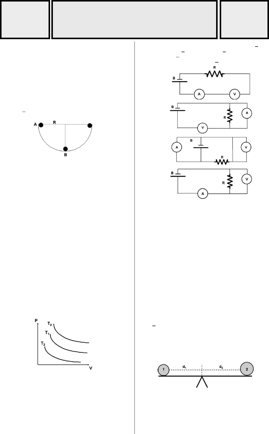 AFA – 98 – TELEGRAM: @CANALTROVAO PROFESSOR RAFAEL TROVÃO 1. A estrela mais próxima está a 4,5 anos-luz da Terra. O ano-luz é a distância que a luz percorre, no vácuo, em um ano. Sendo assim, ao observarmos a abóbada celeste, estamos vendo o: a) futuro. b) infinito. c) passado. d) presente. 2. Uma esfera de raio muito pequeno movimenta-se em uma concha esférica de raio 1,8 m , como na figura abaixo. Desprezando-se o atrito e considerando 2g 10 m/s= , pode-se afirmar que a velocidade, em m/s, da esfera no ponto B e o trabalho, em joules, da força normal valem, respectivamente: a) 3 e 0 b) 3 e 10 c) 6 e 0 d) 6 e 5 3. Considere um cometa se aproximando do Sol. Desprezando-se a sua perda de massa, pode-se afirmar que, em relação ao Sol, sua energia: a) cinética diminui. b) cinética aumenta. c) mecânica diminui. d) mecânica aumenta. 4. Uma esfera maciça e homogênea, de densidade 32,0 g/cm , flutua em um líquido, mantendo 20% de seu volume acima do nível do líquido. A densidade do líquido, em 3g/cm , é: a) 1,50 b) 2,0 c) 2,5 d) 3,0 5. Qual a carga, em coulomb, de uma partícula de 32,0 10 kg− de massa para que permaneça estacionária, quando colocada em um campo elétrico vertical, de módulo 50 N/C ? (considerar 2g 10 m/s= ) a) 42 10− b) 41 10−− c) 42 10− d) 44 10− 6. O gráfico abaixo representa três isotermas de um mesmo sistema gasoso, nas temperaturas 1T , 2T e 3T . Pode-se então afirmar que a) 1 2 3T T T= = b) 2 1 3T T T c) 2 1 3T T T d) 1 2 3T T T 7. Em uma região de campo elétrico uniforme, de intensidade 32 10 N/C , a diferença de potencial, em volts, entre dois pontos, situados sobre uma linha de força do campo elétrico e separados por uma distância de 50 cm , é: a) 310 b) 510 c) 34 10 d) 42,5 10− 8. Em um laboratório, encontramos uma bateria B, um amperímetro A, um voltímetro V e um resistor de resistência R. Qual é o circuito que permite determinar, experimentalmente, o valor de R? a) b) c) d) 9. Um objeto é lançado obliquamente ao ar com ângulo de lançamento . Sabendo-se que o alcance máximo foi 122,5 m , qual sua velocidade inicial de lançamento, em m / s ? (considerar 2g 10 m/s= ) a) 10 b) 12,5 c) 35 d) 49,5 10. Em uma experiência realizada na Lua, uma pedra de 200 g é lançada verticalmente para cima e, no mesmo instante, outra pedra idêntica é abandonada de uma altura de 40 m . Sabendo-se que as duas pedras colidem a 20 m de altura e que a aceleração da gravidade na Lua é 2g 1,6 m/s= , a velocidade com que foi lançada a primeira pedra, em m / s , é: a) 2 b) 4 c) 6 d) 8 11. Duas partículas partem da mesma posição, no mesmo instante, e descrevem a mesma trajetória circular de raio R. Supondo que elas girem no mesmo sentido a 0,25 rps e 0,2 rps , após quantos segundos estarão juntas novamente na posição de partida? a) 5 b) 10 c) 15 d) 20 12. O sistema abaixo encontra-se em equilíbrio. Sabe-se que 1d 5,0 cm= , 2d 4,0 cm= , (1) e (2) são esferas de raios 1,0 cm e 1,2 cm , respectivamente, e que 3 1g 2,0 g/cm= é a densidade da esfera (2). Nessas condições, a densidade de (1) vale, em 3g/cm , aproximadamente, a) 1,0 b) 2,0 c) 3,0 d) 4,0 13. Um automóvel entra em uma curva de 30o de inclinação, com velocidade 30 m/s. O raio da curva, em metros, para que não haja escorregamento, é: (considerar 2g 10 m/s= ) a) 9 3 b) ( ) 1 90 3 − c) 90 3 d) 900 3 14. O gráfico da posição em função do tempo para um objeto, que se move em trajetória retilínea, é dado na figura abaixo. A velocidade inicial, em m / s , e a aceleração, em 2m / s , são, respectivamente, a) 6 e 2 b) 6 e 3 c) 9 e 3 d) 9 e 6 15. Um paralelepípedo de massa 750 kg , com arestas de medida 0,5 m , 1,0 m e 1,5 m , está apoiado em uma superfície horizontal. A pressão, em 2N/ m , exercida por ele na superfície, pode ser igual a: a) 7500 b) 10000 c) 12500 d) 16500 16. Uma bola de 0,40 kg , movimentando-se horizontalmente com velocidade 14 m/s , é rebatida com uma força média de 1000 N . Supondo-se que a colisão tenha durado 27 ms , a velocidade final da bola, em m / s , é: a) 14,0 b) 32,5 c) 53,5 d) 81,5 17. Um astronauta, em órbita, a 1600 km da superfície terrestre, está sujeito a uma aceleração da gravidade igual: (Considerar o raio da Terra igual a 6400 km ) a) a zero. b) ao valor na superfície terrestre. c) a 0,04 vezes o valor na superfície terrestre. d) a 0,64 vezes o valor na superfície terrestre. 18. Misturando-se volumes iguais de dois líquidos de densidades 30,4 g/cm e 30,8 g/cm , a densidade da mistura, em 3g/cm , supostamente homogênea, é: a) 0,4 b) 0,6 c) 0,8 d) 1,2 19. A pressão no interior de um líquido homogêneo em equilíbrio varia com a profundidade, de acordo com o gráfico abaixo. A densidade do líquido, em 3kg/m , é: (considerar 2g 10 m/s= ) a) 31 10 b) 32 10 c) 33 10 d) 34 10 20. Mergulham-se dois termômetros na água: um graduado na escala Celsius e outro na Fahrenheit. Depois do equilíbrio térmico, nota--se que a diferença entre as leituras nos dois termômetros é 172. Então, a temperatura da água em graus Celsius e Fahrenheit, respectivamente, é: a) 32 e 204 b) 32 e 236 c) 175 e 347 d) 175 e 257 21. Um recipiente cuja capacidade volumétrica a zero grau Celsius é 33000 cm , está completamente cheio de um líquido. O conjunto foi aquecido de o0 C a o100 C , ocorrendo um transbordamento de 324 cm . O coeficiente de dilatação aparente desse líquido, em o 1C− , é: a) 58 10− b) 38 10− c) 28 10− d) 18 10− 22. Um cubo de gelo com massa 100g e temperatura o10 C− é colocado em um recipiente contendo 200 mL de um líquido a o100 C . Supondo-se que não há perda de calor para o meio ambiente, qual o valor final aproximado da temperatura, em oC , do sistema? (Considerar calor específico em ocal / g C do gelo 0,5= , da água = 1 e do líquido = 2, calor latente de fusão do gelo 80 cal / g= e densidade do líquido 31,5 g/cm= ). a) 43 b) 53 c) 3 d) 73 23. No diagrama pres