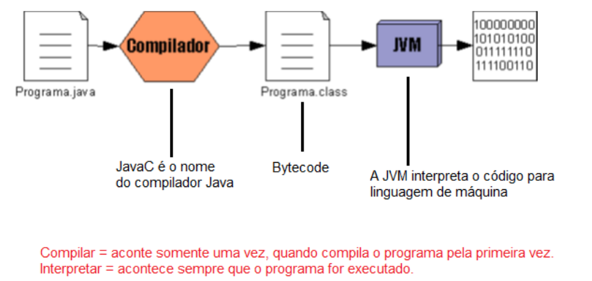 · O desenvolvedor escreve o código em Java, o computador não entende esse código. Para ele entender, é preciso compilar o código fonte.