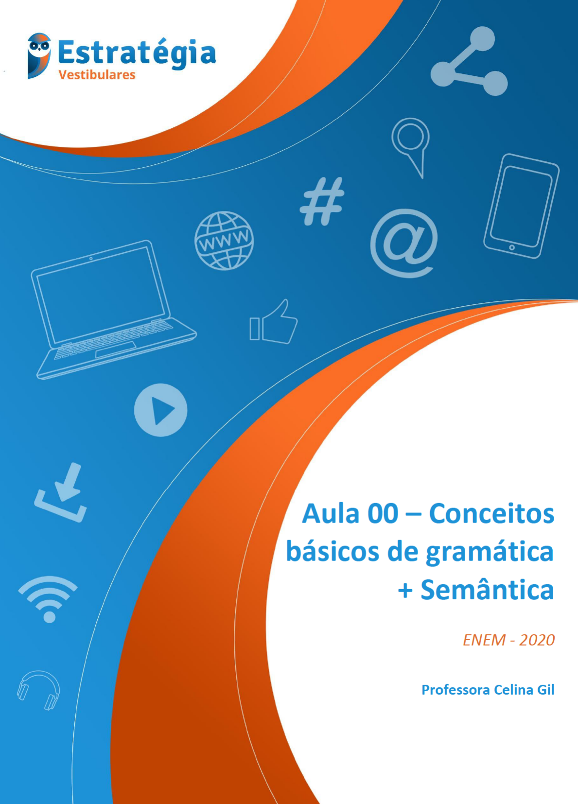Prof. Celina Gil Aula 00 – ENEM 2020 2 90 Aula 00 – Conceitos básicos + Semântica www.estrategiavestibulares.com.br SUMÁRIO Apresentação ............................................................................................................... 3 Quem somos nós? .................................................................................................................. 3 Metodologia ........................................................................................................................... 4 Como é a cobrança? ............................................................................................................... 5 Cronograma de aulas ............................................................................................................. 6 1 – Termos básicos do português ................................................................................. 6 2 –Texto e Contexto ..................................................................................................... 7 3 – Semântica ............................................................................................................ 11 3.1 – Sinônimos e Antônimos ............................................................................................... 12 3.2 – Homônimos e Parônimos ............................................................................................ 13 3.3 – Hiperônimos/Hipônimos ............................................................................................. 21 4 – Questões .............................................................................................................. 22 Já caiu no ENEM ................................................................................................................... 22 Outros vestibulares .............................................................................................................. 29 Gabarito ............................................................................................................................... 50 Questões comentadas .......................................................................................................... 51 5 – Referências Bibliográficas .................................................................................... 89 6 – Considerações Finais ............................................................................................ 90 Prof. Celina Gil Aula 00 – ENEM 2020 3 90 Aula 00 – Conceitos básicos + Semântica www.estrategiavestibulares.com.br APRESENTAÇÃO Caro aluno, Seja muito bem-vindo a nosso curso de Gramática e Interpretação de texto para ENEM! Espero que possamos juntos trabalhar pela sua aprovação! Sabemos que o ENEM é o maior vestibular do país atualmente. Ele pode ser a porta de entrada para o seu sonho do curso superior. A interpretação é fundamental para o ENEM! Constitui a maior parte da prova e pode ajudar você a resolver questões das outras disciplinas também! Antes de começar nossa primeira aula, é importante que você tenha algumas informações: ➢ Quem sou eu. ➢ Qual a nossa metodologia no Estratégia Vestibulares. ➢ Como os assuntos de Gramática e Interpretação de texto tem aparecido nesse vestibular nos últimos 10 anos. ➢ Como encontrar nosso cronograma de aulas. Vamos lá? QUEM SOMOS NÓS? Olá! Meu nome é Celina Gil e fui a responsável por esse material que você está vendo. Em 2019, eu completo 10 anos de USP. Ingressei na USP em 2009, no curso de Letras, onde me formei em Português e Latim. Foi também na Universidade de São Paulo eu fiz meu mestrado e, hoje em dia, faço meu doutorado, ambos em História do Teatro. Ou seja, pode contar comigo tanto para gramática e redação quanto para literatura. Também sou formada em Cinema, pela FAAP. Por isso, muitas vezes ao longo dos meus materiais você pode encontrar dicas de filmes, games e séries ajudar deixar o estudo mais divertido. Já dei aula para crianças, mas me especializei em trabalhar com jovens e adolescentes, principalmente em cursos preparatórios para provas e vestibulares. Montei esse curso de modo que você possa ter contato com a teoria e sua aplicação prática. A maioria dos exercícios que você encontra aqui veio de provas Do ENEM e outros grandes vestibulares semelhantes. Espero que ajude você a passar por esse momento tão importante. Apesar de ser a responsável pelo material escrito, este curso será compartilhado com a Professora Janaína Arruda. Você verá a Professora Janaína nas videoaulas no nosso canal. Prof. Celina Gil Aula 00 – ENEM 2020 7 90 Aula 00 – Conceitos básicos + Semântica www.estrategiavestibulares.com.br A norma culta é o termo usado para se referir ao conjunto de padrões linguísticos que mais se aproximam dos usos considerados corretos pela gramática. Ainda que a ideia do que é correto ou não em linguagem se altere muitas vezes – tanto em função de novos acordos ortográficos quanto pelas mudanças naturais da língua – a norma culta é o modo d escrever mais próximo daquilo que a gramática ditar na época. Sua prova deve ser escrita na norma culta, pois ela deve ser o mais clara possível: a gramática é um conjunto de regras compreendido por todos. 2 –TEXTO E CONTEXTO Passemos brevemente pelo conceito de texto. Devemos pensar no texto sempre como uma costura, um todo coeso e costurado. Segundo Barthes (2015): Texto quer dizer Tecido; mas enquanto até aqui esse tecido foi sempre tomado por um produto, por um véu todo acabado, por trás do qual se mantém, mais ou menos oculto, o sentido (a verdade), nós acentuamos agora, no tecido, a ideia gerativa de que o texto se faz, se trabalha através de um entrelaçamento perpétuo; perdido neste tecido – nessa textura – o sujeito se desfaz nele, qual uma aranha que se dissolvesse ela mesma nas secreções construtivas de sua teia. (p. 74) O texto, 