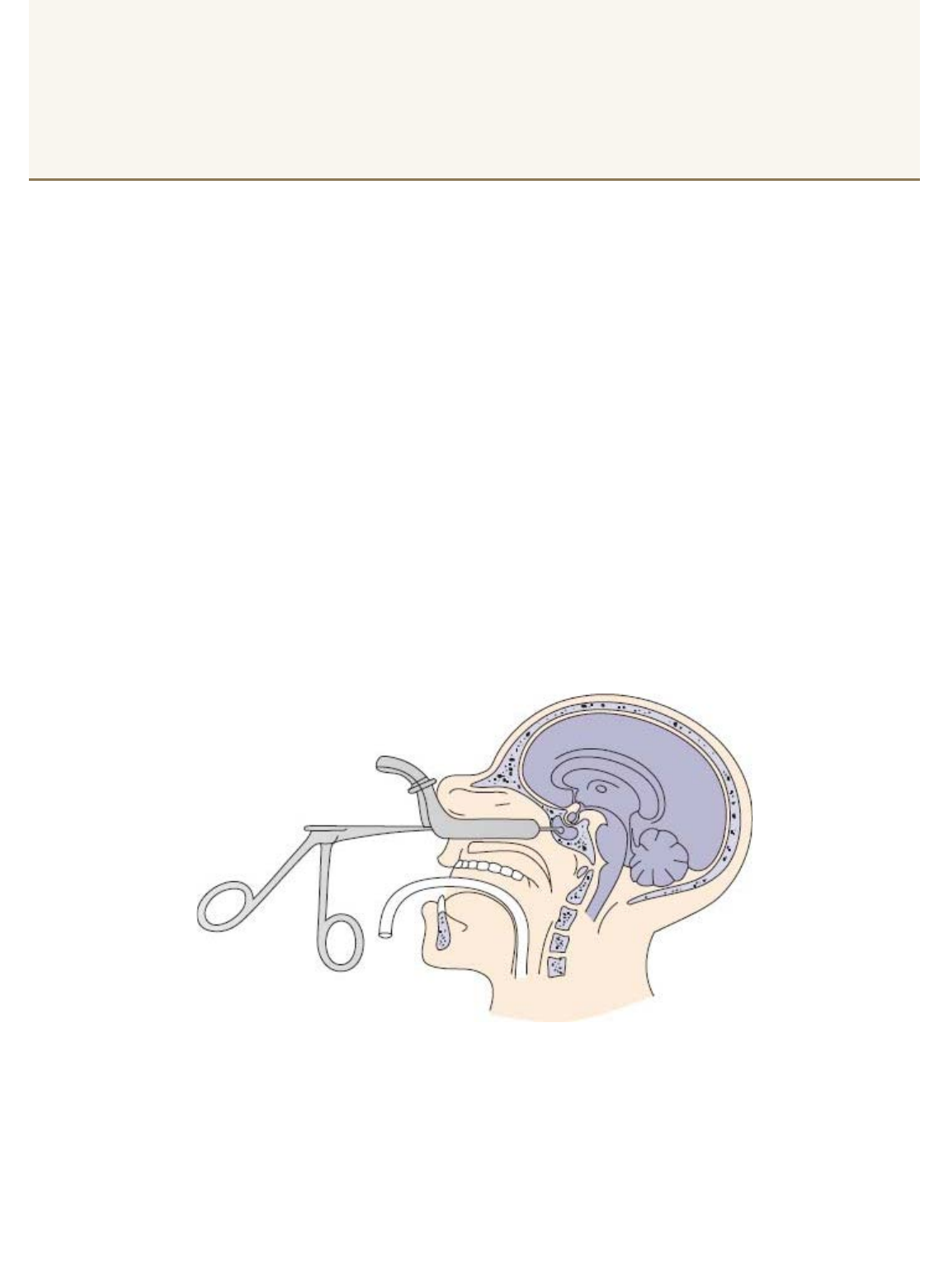 • • • • ACTH-independente Adenoma adrenal Carcinoma adrenal Hiperplasia adrenal micronodular pigmentada Hiperplasia adrenal macronodular Para a grande maioria dos pacientes com DC, a adenomectomia seletiva por via transesfenoidal continua sendo o tratamento de escolha.1,7 Apenas raramente, a abordagem transcraniana se faz necessária.2 Nos casos de doença persistente ou recorrente após a cirurgia transesfenoidal (CTE), radiocirurgia estereotáxica em dose única ou fracionada pode ser usada.8 No entanto, os efeitos terapêuticos da radiação podem demorar 3 a 5 anos para ser obtidos.1,7,9 Em casos graves e refratários, adrenalectomia bilateral, de preferência por via laparoscópica, é realizada, mas há riscos significativos relacionados com hipocortisolemia permanente, insuficiência adrenal e risco de síndrome de Nelson.1,3 Assim, a terapia medicamentosa tem sido cada vez mais considerada no algoritmo do tratamento.8,10–14 Cirurgia hipofisária O tratamento de escolha para a DC é a remoção do tumor hipofisário por via transesfenoidal (Figura 42.1), que possibilita a reversão clínica (Figuras 42.2 e 42.3) e laboratorial do hipercortisolismo na maioria dos casos. A maior parte dos corticotropinomas é pequena, apresentando diâmetro médio de 4 a 5 mm; na maioria das séries, apenas 10% são macroadenomas (≥ 10 mm).3,4 Sua localização é, muitas vezes, difícil, e os resultados cirúrgicos são bastante heterogêneos. Por esse motivo, recomenda-se que o paciente seja operado, preferencialmente, por um cirurgião experiente nessa técnica.3,15 Em pacientes cujo exame de imagem tenha apresentado resultado negativo, o cateterismo do seio petroso inferior pode ser útil na localização do lado em que se encontra o adenoma. Pode ocorrer, porém, uma falsa lateralização em cerca de 30% dos casos, e o cirurgião deve estar atento para os raros casos de adenoma intracavernoso, realizando sempre a exploração meticulosa da sela túrcica antes de remover qualquer tecido hipofisário.1–3,15 Figura 42.1 A cirurgia transesfenoidal é o tratamento de escolha para a doença de Cushing, com taxas de sucesso médias variando de 82% (micro) a 62% (macroadenomas). (Adaptada de Pivonello et al., 2015.)2 file:///C|/Users/AnaMilk/Desktop/Vilar/Endocrinologia%20Cl%EDnica,%20Sexta%20edi%E7%E3o%20(201).html#bib1 file:///C|/Users/AnaMilk/Desktop/Vilar/Endocrinologia%20Cl%EDnica,%20Sexta%20edi%E7%E3o%20(201).html#bib7 file:///C|/Users/AnaMilk/Desktop/Vilar/Endocrinologia%20Cl%EDnica,%20Sexta%20edi%E7%E3o%20(201).html#bib2 file:///C|/Users/AnaMilk/Desktop/Vilar/Endocrinologia%20Cl%EDnica,%20Sexta%20edi%E7%E3o%20(201).html#bib8 file:///C|/Users/AnaMilk/Desktop/Vilar/Endocrinologia%20Cl%EDnica,%20Sexta%20edi%E7%E3o%20(201).html#bib1 file:///C|/Users/AnaMilk/Desktop/Vilar/Endocrinologia%20Cl%EDnica,%20Sexta%20edi%E7%E3o%20(201).html#bib7 file:///C|/Users/AnaMilk/Desktop/Vilar/Endocrinologia%20Cl%EDnica,%20Sexta%20edi%E7%E3o%20(201).html#bib9 file:///C|/Users/AnaMilk/Desktop/Vilar/Endocrinologia%20Cl%EDnica,%20Sexta%20edi%E7%E3o%20(201).html#bib1 file:///C|/Users/AnaMilk/Desktop/Vilar/Endocrinologia%20Cl%EDnica,%20Sexta%20edi%E7%E3o%20(201).html#bib3 file:///C|/Users/AnaMilk/Desktop/Vilar/Endocrinologia%20Cl%EDnica,%20Sexta%20edi%E7%E3o%20(201).html#bib8 file:///C|/Users/AnaMilk/Desktop/Vilar/Endocrinologia%20Cl%EDnica,%20Sexta%20edi%E7%E3o%20(201).html#bib10 file:///C|/Users/AnaMilk/Desktop/Vilar/Endocrinologia%20Cl%EDnica,%20Sexta%20edi%E7%E3o%20(201).html#bib14 file:///C|/Users/AnaMilk/Desktop/Text/chapter42.html#ch42fig1 file:///C|/Users/AnaMilk/Desktop/Text/chapter42.html#ch42fig2 file:///C|/Users/AnaMilk/Desktop/Text/chapter42.html#ch42fig3 file:///C|/Users/AnaMilk/Desktop/Vilar/Endocrinologia%20Cl%EDnica,%20Sexta%20edi%E7%E3o%20(201).html#bib3 file:///C|/Users/AnaMilk/Desktop/Vilar/Endocrinologia%20Cl%EDnica,%20Sexta%20edi%E7%E3o%20(201).html#bib4 file:///C|/Users/AnaMilk/Desktop/Vilar/Endocrinologia%20Cl%EDnica,%20Sexta%20edi%E7%E3o%20(201).html#bib3 file:///C|/Users/AnaMilk/Desktop/Vilar/Endocrinologia%20Cl%EDnica,%20Sexta%20edi%E7%E3o%20(201).html#bib15 file:///C|/Users/AnaMilk/Desktop/Vilar/Endocrinologia%20Cl%EDnica,%20Sexta%20edi%E7%E3o%20(201).html#bib1 file:///C|/Users/AnaMilk/Desktop/Vilar/Endocrinologia%20Cl%EDnica,%20Sexta%20edi%E7%E3o%20(201).html#bib3 file:///C|/Users/AnaMilk/Desktop/Vilar/Endocrinologia%20Cl%EDnica,%20Sexta%20edi%E7%E3o%20(201).html#bib15 file:///C|/Users/AnaMilk/Desktop/Vilar/Endocrinologia%20Cl%EDnica,%20Sexta%20edi%E7%E3o%20(201).html#bib2 Endocrinologia Clinica - Vilar 6 edicao