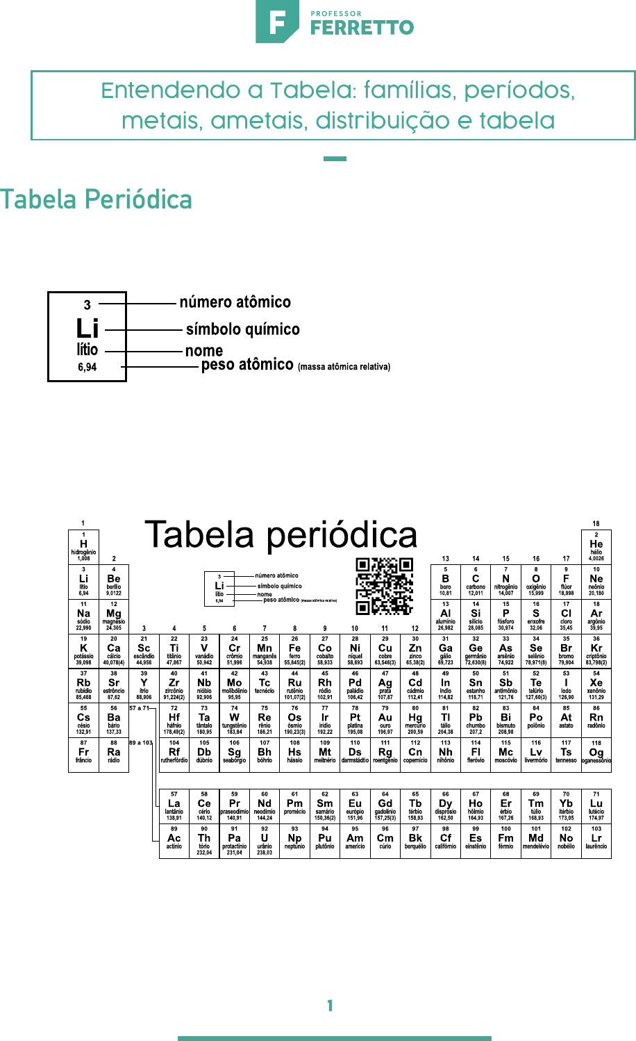 1 Tabela Periódica Entendendo a Tabela: famílias, períodos, metais, ametais, distribuição e tabela 2 Famílias e períodos Og 118 Cu 29 Ni 28 Co 27 Fe 26 Mn 25 Cr 24 V 23 Ti 22 Sc 21 Ca 20 Mg 12 Be 4 K 19 Na 11 Li 3 H 1 Kr 36 Br 35 Se 34 As 33 Ge 32 Ga 31 Al 13 Si 14 P 15 S 16 Cl 17 Ar 18 B 5 C 6 N 7 O 8 F 9 Ne 10 He 2 Zn 30 Rb 37 Cs 55 Fr 87 Sr 38 Ba 56 Ra 88 Y 39 Zr 40 Hf 72 Ta 73 W 74 Re 75 Os 76 Ir 77 Pt 78 Au 79 Hg 80 Tl 81 Pb 82 Bi 83 Po 84 At 85 Rn 86 Rf 104 Db 105 Sg 106 Bh 107 Hs 108 Mt 109 Ds 110 Rg 111 Cn 112 Nh 113 Fl 114 Mc 115 Lv 116 Ts 117 Nb 41 Mo 42 Tc 43 Ru 44 Rh 45 Pd 46 Ag 47 Cd 48 In 49 Sn 50 Sb 51 Te 52 I 53 Xe 54 La 57 Ac 89 Ce 58 Th 90 Pr 59 Pa 91 Nd 60 U 92 Pm 61 Np 93 Sm 62 Pu 94 Eu 63 Am 95 Gd 64 Cm 96 Tb 65 Bk 97 Dy 66 Cf 98 Ho 67 Es 99 Er 68 Fm 100 Tm 69 Md 101 Yb 70 No 102 Lu 71 Lr 103 Tabela periódica1 2 3 4 5 6 7 8 9 10 11 12 13 14 15 16 17 18 www.tabelaperiodica.org Licença de uso Creative Commons By-NC- ersão baseada em IUP 57 a 71 89 a 103 Li 3 número atômico símbolo químico 1s 2 2s 2 2p 6 3s 2 3p 6 3d 10 4s 2 4p 6 4d 10 4f 14 5s 2 5p 6 5d 10 5f 14 6s 2 6p 6 6d 10 7s 2 7p 6 Og 118 Cu 29 Ni 28 Co 27 Fe 26 Mn 25 Cr 24 V 23 Ti 22 Sc 21 Ca 20 Mg 12 Be 4 K 19 Na 11 Li 3 H 1 Kr 36 Br 35 Se 34 As 33 Ge 32 Ga 31 Al 13 Si 14 P 15 S 16 Cl 17 Ar 18 B 5 C 6 N 7 O 8 F 9 Ne 10 He 2 Zn 30 Rb 37 Cs 55 Fr 87 Sr 38 Ba 56 Ra 88 Y 39 Zr 40 Hf 72 Ta 73 W 74 Re 75 Os 76 Ir 77 Pt 78 Au 79 Hg 80 Tl 81 Pb 82 Bi 83 Po 84 At 85 Rn 86 Rf 104 Db 105 Sg 106 Bh 107 Hs 108 Mt 109 Ds 110 Rg 111 Cn 112 Nh 113 Fl 114 Mc 115 Lv 116 Ts 117 Nb 41 Mo 42 Tc 43 Ru 44 Rh 45 Pd 46 Ag 47 Cd 48 In 49 Sn 50 Sb 51 Te 52 I 53 Xe 54 La 57 Ac 89 Ce 58 Th 90 Pr 59 Pa 91 Nd 60 U 92 Pm 61 Np 93 Sm 62 Pu 94 Eu 63 Am 95 Gd 64 Cm 96 Tb 65 Bk 97 Dy 66 Cf 98 Ho 67 Es 99 Er 68 Fm 100 Tm 69 Md 101 Yb 70 No 102 Lu 71 Lr 103 Tabela periódica1 2 3 4 5 6 7 8 9 10 11 12 13 14 15 16 17 18 www.tabelaperiodica.org Licença de uso Creative Commons By-NC- ersão baseada em IUP 57 a 71 89 a 103 Li 3 número atômico símbolo químico 3 Exercício 1 (Enem) Na mitologia grega, Nióbia era a filha de Tântalo, dois personagens conhecidos pelo sofrimento. O elemento químico de número atômico (Z) igual a 41 tem propriedades químicas e físicas tão parecidas com as do elemento de número atômico 73 que chegaram a ser confundidos. Por isso, em homenagem a esses dois personagens da mitologia grega, foi conferido a esses elementos os nomes de nióbio ( Z=41) e tântalo (Z=73 ). Esses dois elementos químicos adquiriram grande importância econômica na metalurgia, na produção de supercondutores e em outras aplicações na indústria de ponta, exatamente pelas propriedades químicas e físicas comuns aos dois. A importância econômica e tecnológica desses elementos, pela similaridade de suas propriedades químicas e físicas, deve-se a a) terem elétrons no subnível b) serem elementos de transição interna. c) pertencerem ao mesmo grupo na tabela periódica. d) terem seus elétrons mais externos nos níveis e respectivamente. e) estarem localizados na família dos alcalinos terrosos e alcalinos, respectivamente. Exercício 2 (Ifce) Os diferentes elementos químicos conhecidos na atualidade foram organizados num quadro que levou anos para ser construído, chamado de tabela periódica dos elementos químicos. Nela os elementos estão posicionados obedecendo uma ordem crescente de seus números atômicos, sendo dispostos em filas horizontais (períodos) e em colunas verticais (grupos). Baseado na sua distribuição eletrônica é possível localizar qualquer elemento na tabela, determinando seu grupo e seu período. O item que indica a localização correta na tabela periódica do átomo de zinco ( Z=30) é a) 5º período e coluna 11. b) 3º período e coluna 13. c) 4º período e coluna 12. d) 4º período e coluna 15. e) 5º período e coluna 12. 4 Metais, semi-metais e ametais