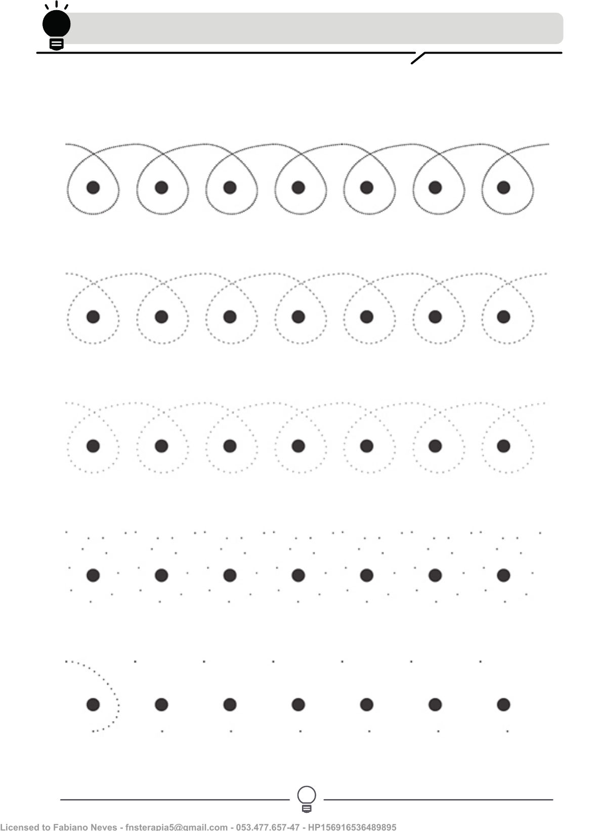 Trace as linhas Trace as linhas pontilhadas com um lápis. As setas ajudam você com isso. Licensed to Fabiano Neves - fnsterapia5@gmail.com - 053.477.657-47 - HP156916536489895