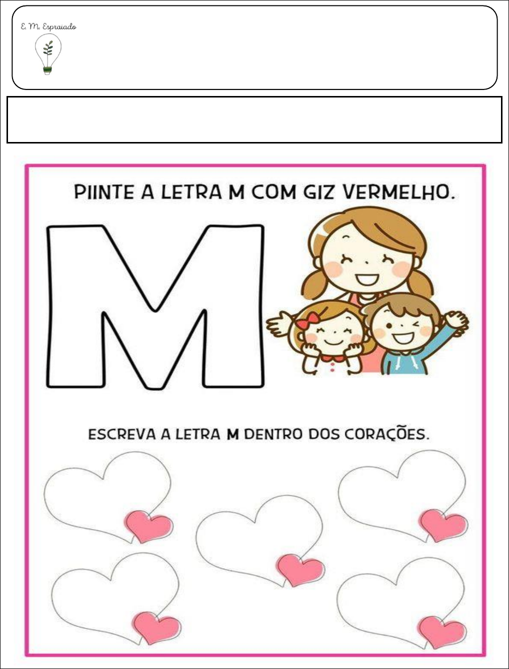 Escola Municipal Espraiado Profª: Gabrielle Data: __/__/2024 Turma: Pré II NOME: MULHER