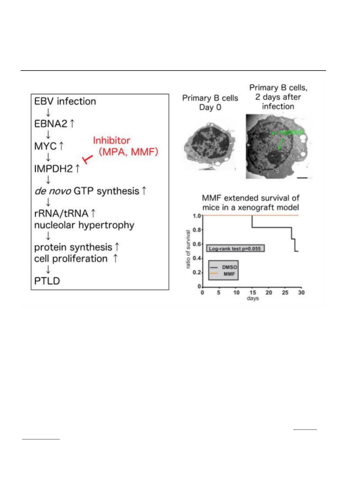 1/3 Como o vírus Epstein-Barr transforma as células Novo estudo mostra como o vírus Epstein-Barr transforma as células B As células B ou linfócitos B são uma parte importante do sistema imunológico do corpo. Quando as células B saudáveis são infectadas com o vírus Epstein-Barr (EBV), elas passam por transformação do crescimento, um processo que imortaliza as células B, levando à sua proliferação descontrolada. A indução de células B imortalizadas é o primeiro passo no desenvolvimento do distúrbio linfoproliferativo pós-transplante (PTLD), que pode evoluir para linfoma e outros distúrbios linfoproliferativos. Uma característica fundamental da transformação do crescimento de células B é o aumento das células e núcleos. No entanto, a grande questão permanece – quais são os mecanismos moleculares exatos que regulam a transformação do crescimento de células B induzidas pelo EBV? Um estudo recente de pesquisadores japoneses, publicado on-line no Microbiology Spectrum em 6 de julho de 2023, já forneceu a resposta. Usando células B primárias de doadores saudáveis em vez de linhas celulares, a equipe descobriu a maquinaria genética responsável por induzir a transformação do crescimento após a infecção pelo EBV. Explicando a lógica por trás do estudo, o investigador principal https://journals.asm.org/doi/10.1128/spectrum.00440-23 2/3 Prof. Takayuki Murata comentou: “As insights da pesquisa do EBV que usam linhas celulares têm sido limitadas, porque as linhas celulares já estão em um estado imortalizado. Para superar esse obstáculo, usamos células B primárias de doadores saudáveis e depois as infectamos com EBV. Isso nos permitiu monitorar a transformação de crescimento passo a passo das células B e analisar os mecanismos envolvidos”. O primeiro passo envolveu a observação cuidadosa de células B primárias infectadas com EBV do tipo selvagem usando microscopia eletrônica e imunomarcação. Já dois dias após a infecção, a morfologia das células B apresentou alterações significativas. Observou-se um alargamento do nucleolo (uma região dentro do núcleo que produz ribossomos, maquinaria produtora de proteínas da célula), juntamente com um aumento no número de nucléolos. Curiosamente, o aumento nucleolar foi seguido por um alargamento de ambos os núcleos e as células. Para entender as alterações transcricionais ocorridas nas células B infectadas, foi realizado o sequenciamento de RNA. “Entre os genes que apresentaram níveis de expressão significativamente alterados, um chamado IMPDH2 se destacou, pois já havia sido associado a alterações morfológicas semelhantes no glioblastoma (outro tipo de câncer). Análises cuidadosas mostraram que os níveis do IMPDH2 atingiram o pico dois dias após a infecção – coincidindo com o momento do aumento do nucleolar. Isso sugeriu que estávamos no caminho certo”, explicou o Dr. Atsuko Sugimoto, da Escola de Medicina da Universidade de Saúde de Fujita, que também fazia parte da equipe de pesquisa. Curiosamente, alterações como a indução do IMPDH2 e o aumento do nucleolar puderam ser observadas quando as células B primárias foram ativadas usando sinais inflamatórios, mesmo na ausência de infecção por EBV. Finalmente, a inibição do IMPDH2 usando RNAs silenciadores e o medicamento ácido micofenólico (MPA) impediu a transformação do crescimento de células B primárias após a infecção pelo EBV, produzindo núcleolíolos, núcleos e células menores. Isso confirmou que a indução IMPDH2 desempenhou um papel fundamental na transformação do crescimento de células B infectadas por EBV. O próximo passo envolveu a compreensão de como o EBV ativa a expressão Três genes virais-chave – EBNA2 e LMP1 – foram testados por causa de seu papel conhecido na transformação de células B induzidas pelo EBV. Curiosamente, quando a falta de EBV EBNA2 foi usada para infecção, a indução após infecção primária pelo EBV foi bloqueada. Este efeito não foi observado com nocaute LMP1. “ Isso demonstrou muito claramente que o EBV induz a expressão IMPDH2 via EBNA2- - Aoprei-lo, amecanismos dependentes. Além disso, o fator de transcrição celular MYC também esteve envolvido na indução do IMPDH2”, esclareceu o Dr. O Sugimoto. Com várias peças-chave de evidência em seu prato, os pesquisadores finalmente se proponham a encontrar a peça final do quebra-cabeça. Para destacar o significado clínico de seus achados, eles examinaram se o medicamento micofenolato de mofetil (MMF) poderia impedir a transformação de células B e PTLD. - O professor. Murata elaborou: “Como o MPA, que testamos na primeira parte do nosso estudo, o MMF é um inibidor do IMPDH2. Mais importante ainda, o MMF já é um imunossupressor clinicamente aprovado. É por isso que foi útil testar se poderia ser aplicado para a prevenção clínica da PTLD. Como esperado, a administração de MMF em um modelo pré-clínico de xenoenxerto de camundongo levou a uma melhor sobrevivência e redução da esplenomegalia (alargamento do baço, 3/3 indicando redução da proliferação de células B). Estas observações confirmaram que o uso de MMF pode inibir o desenvolvimento de PTLD. Este estudo é o primeiro a demonstrar que a ativação e a hipertrofia nucleolar são essenciais para a transformação da célula B induzida pelo EBV e que a inibição do IMPDH2 pode suprimir a PTLD. Isso poderia levar à adoção do MMF como agente para a prevenção da PTLD EBV positiva, proporcionando alívio significativo aos pacientes transplantados.